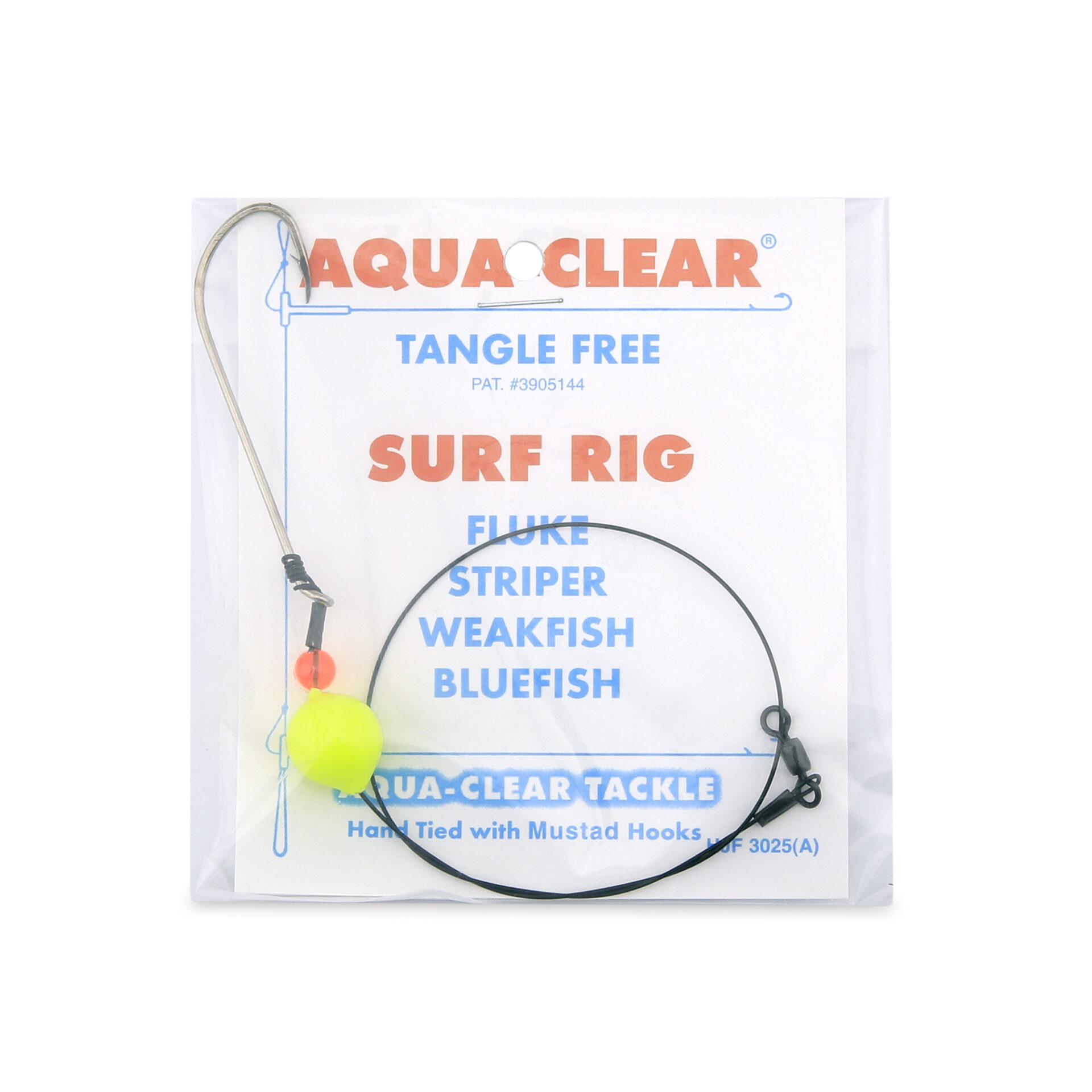 Aqua-Clear, Bluefish Wire Surf Rig, Bluefish / Striped Bass / Drum Fish, 3/0 XL Hook, 45 lb / 20.4 kg Surflon Black Wire, Chartreuse Float