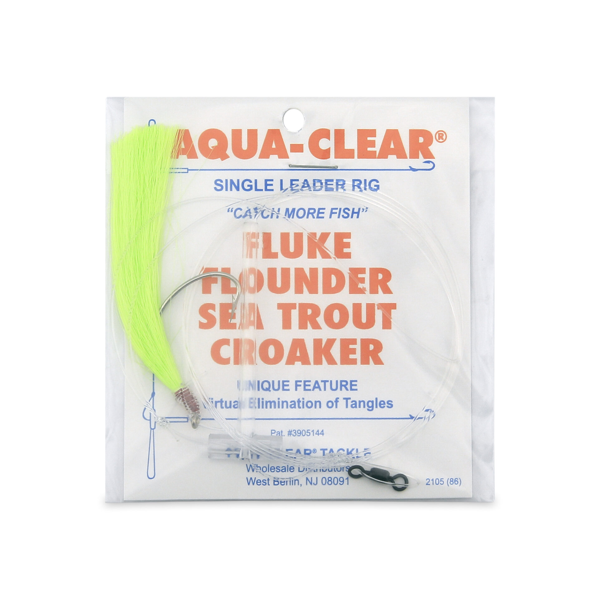 Aqua-Clear, Hair Teaser Rig, Flounder / Fluke / Sea Trout / Weakfish / Croaker, 3/0 Nickel Wide Gap Hook, AFW Swivel, 40 lb / 18.1 kg Grand Slam Mono, T-Standoff, Chrtrse HairAqua-Clear, Hair Teaser Rig, Flounder / Fluke / Sea Trout / Weakfish / Croaker, 3/0 Nickel Wide Gap Hook, AFW Swivel, 40 lb / 18.1 kg Grand Slam Mono, T-Standoff, Chrtrse Hair