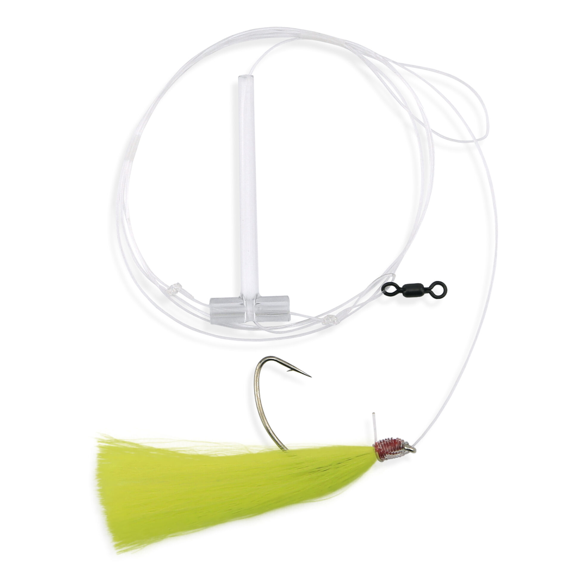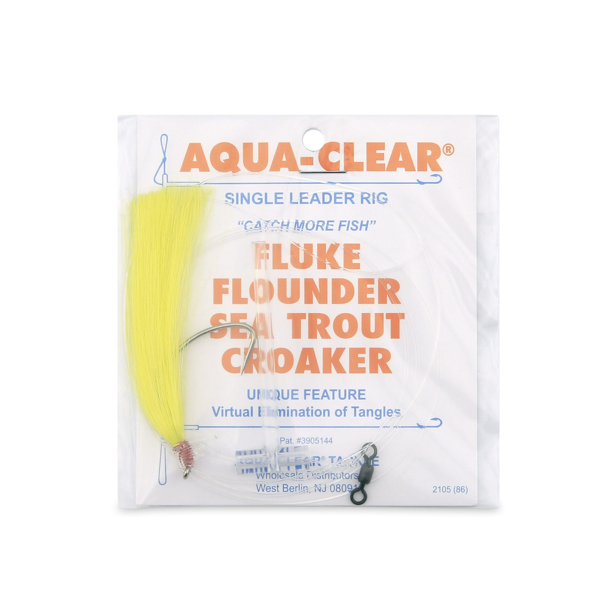 Aqua-Clear, Hair Teaser Rig, Flounder / Fluke / Sea Trout / Weakfish / Croaker, 3/0 Nickel Wide Gap Hook, AFW Swivel, 40 lb / 18.1 kg Grand Slam Mono, T-Standoff, Yellow HairAvailability: In stock