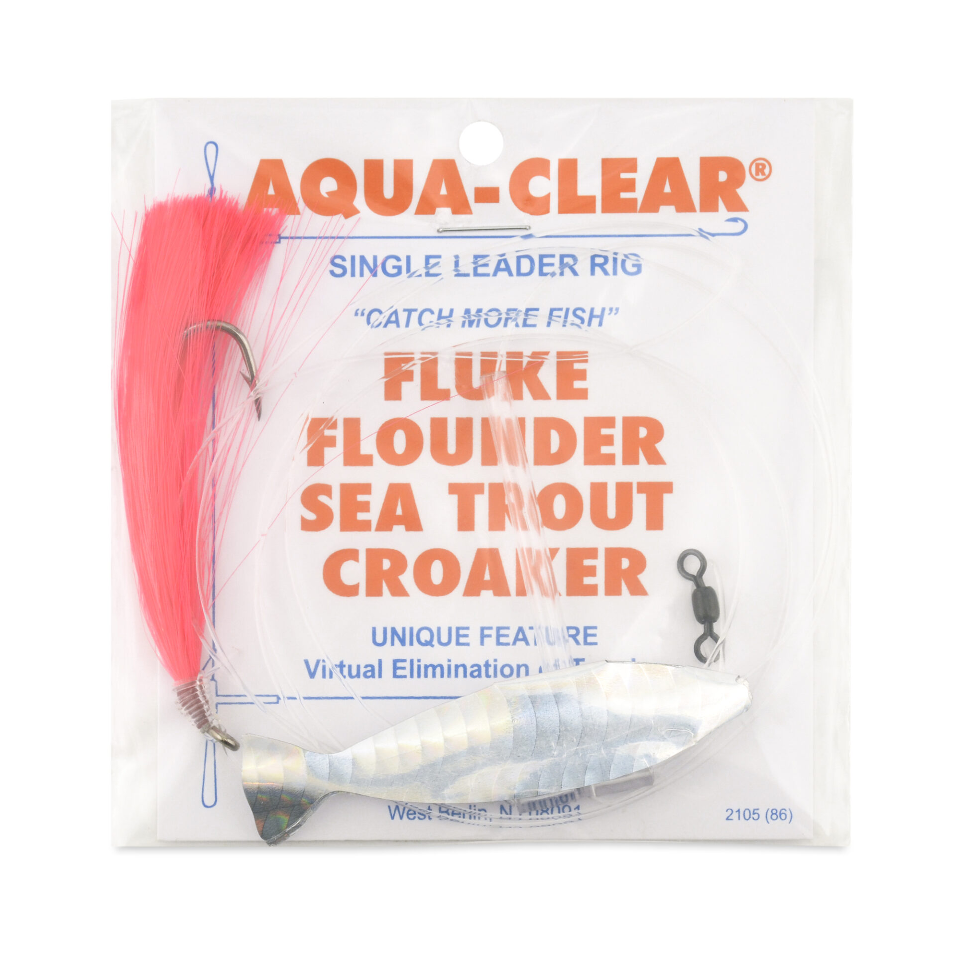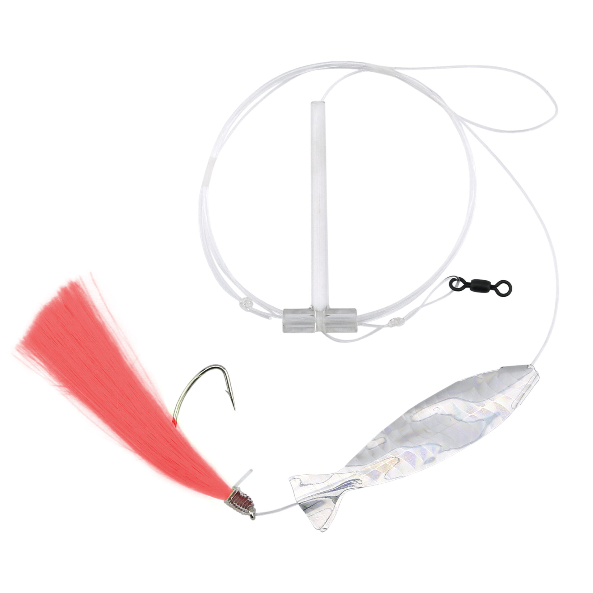 Aqua-Clear, Hair Teaser Rig, Flounder/Fluke/Sea Trout/Weakfish/Croaker, 3/0 Nickel Wide Gap Hook, AFW Swivel, 40 lb/18.1 kg GS Mono, T-Standoff, Pink Hair, Silver Holo MinnowAqua-Clear, Hair Teaser Rig, Flounder/Fluke/Sea Trout/Weakfish/Croaker, 3/0 Nickel Wide Gap Hook, AFW Swivel, 40 lb/18.1 kg GS Mono, T-Standoff, Pink Hair, Silver Holo Minnow