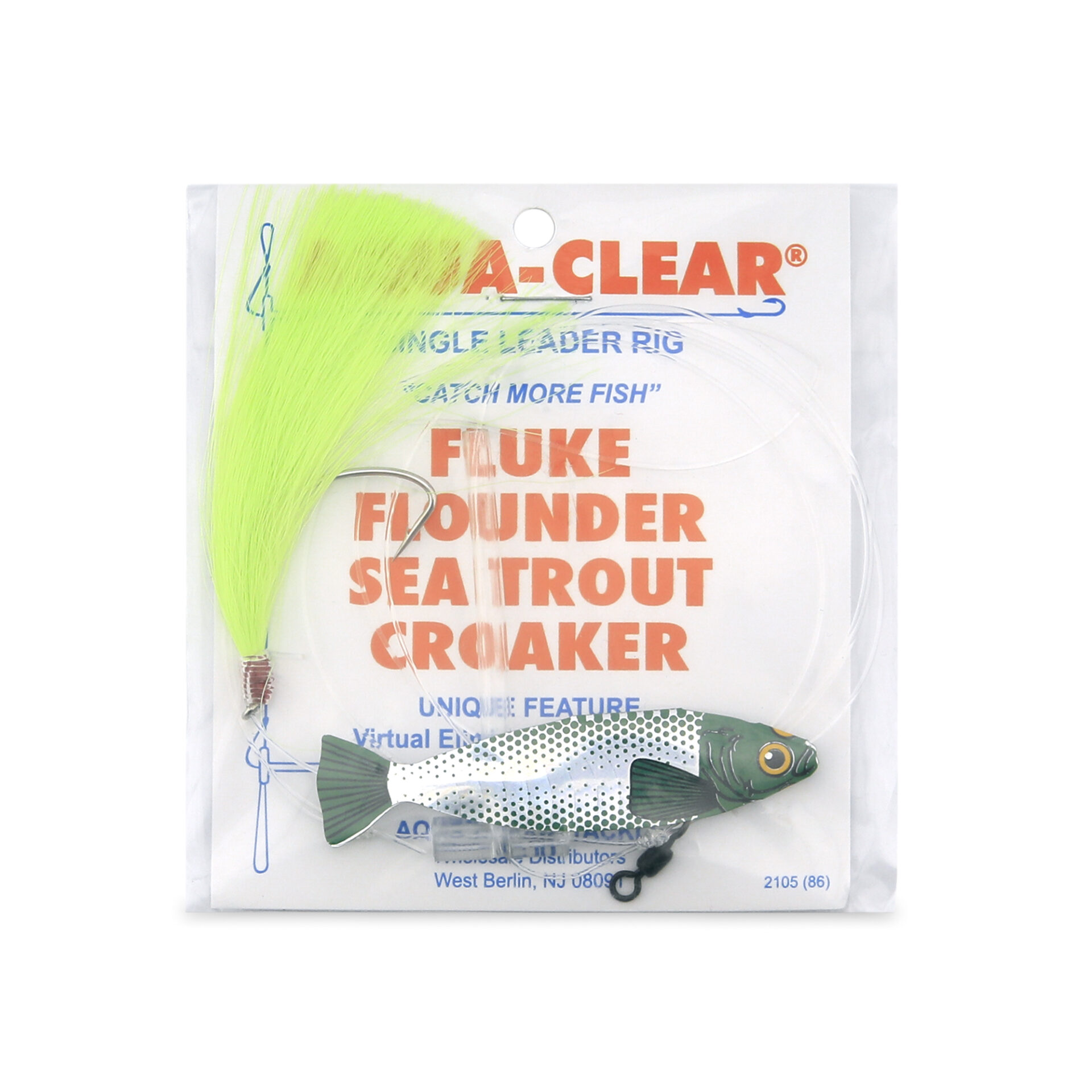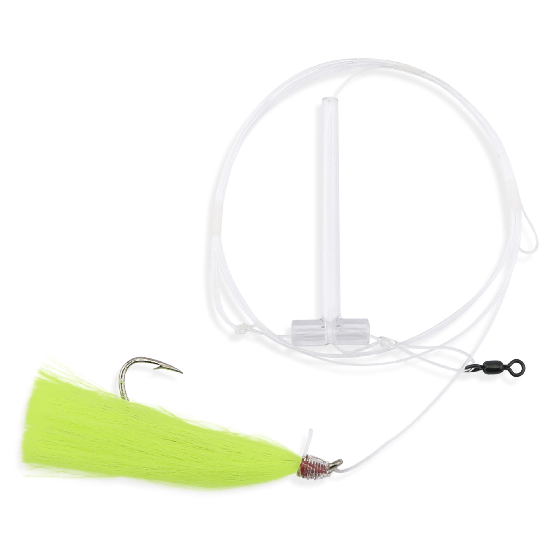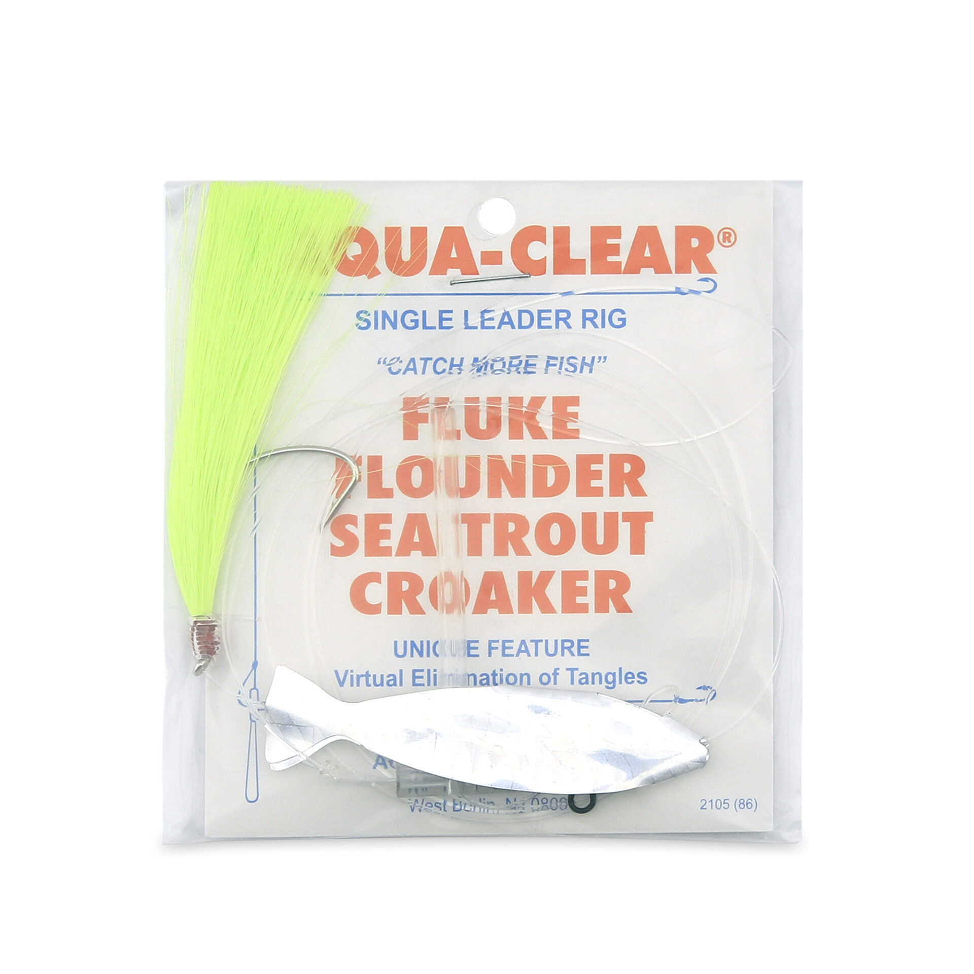 Aqua-Clear, Hair Teaser Rig, Flounder / Fluke / Sea Trout / Weakfish / Croaker, 3/0 XL Nickel Hook, AFW Swivel, 40 lb / 18.1 kg Grand Slam Mono, T-Standoff, Chartreuse HairAvailability: In stock