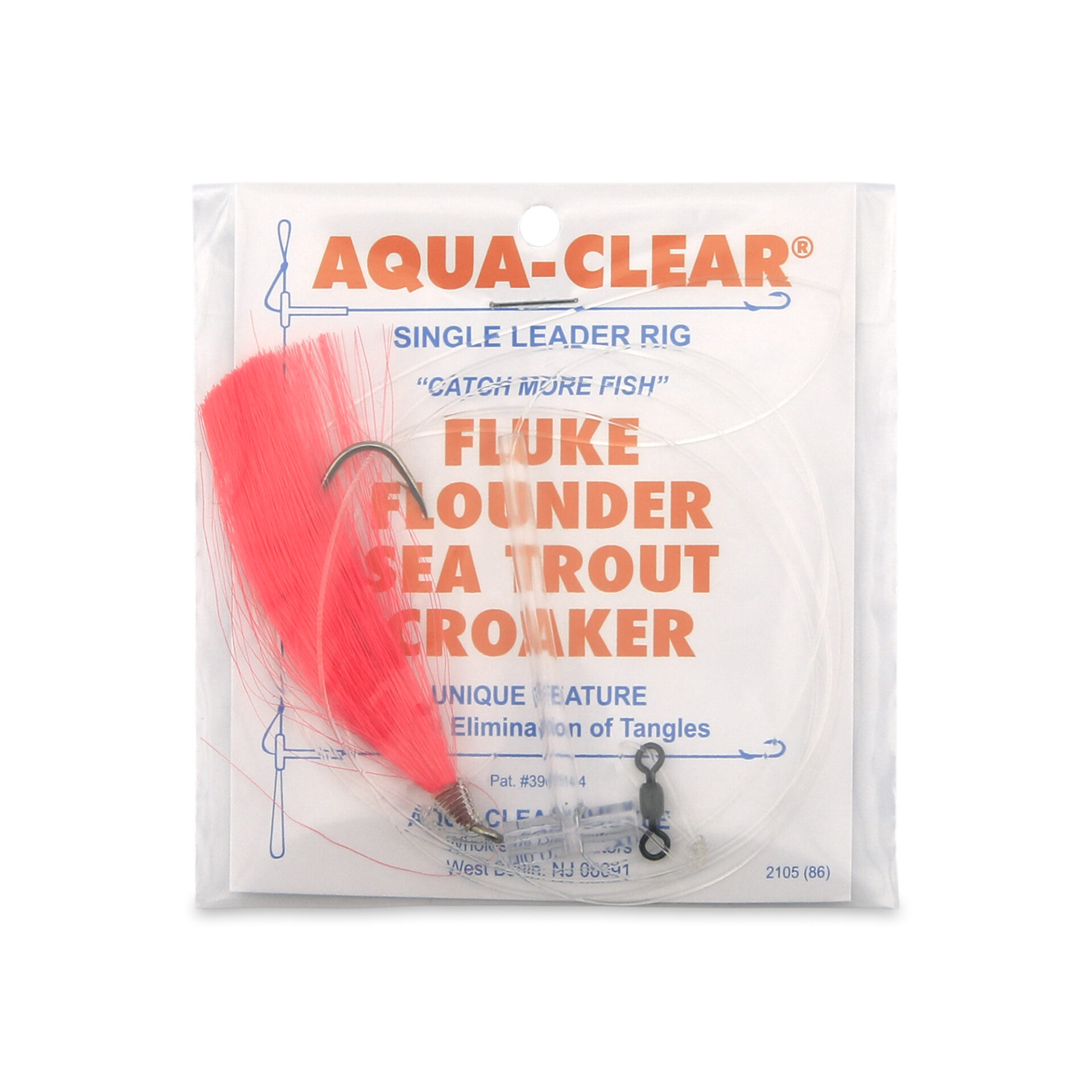 Aqua-Clear, Hair Teaser Rig, Flounder / Fluke / Sea Trout / Weakfish / Croaker, 3/0 XL Nickel Hook, AFW Swivel, 40 lb / 18.1 kg Grand Slam Mono, T-Standoff, Pink HairAvailability: In stock