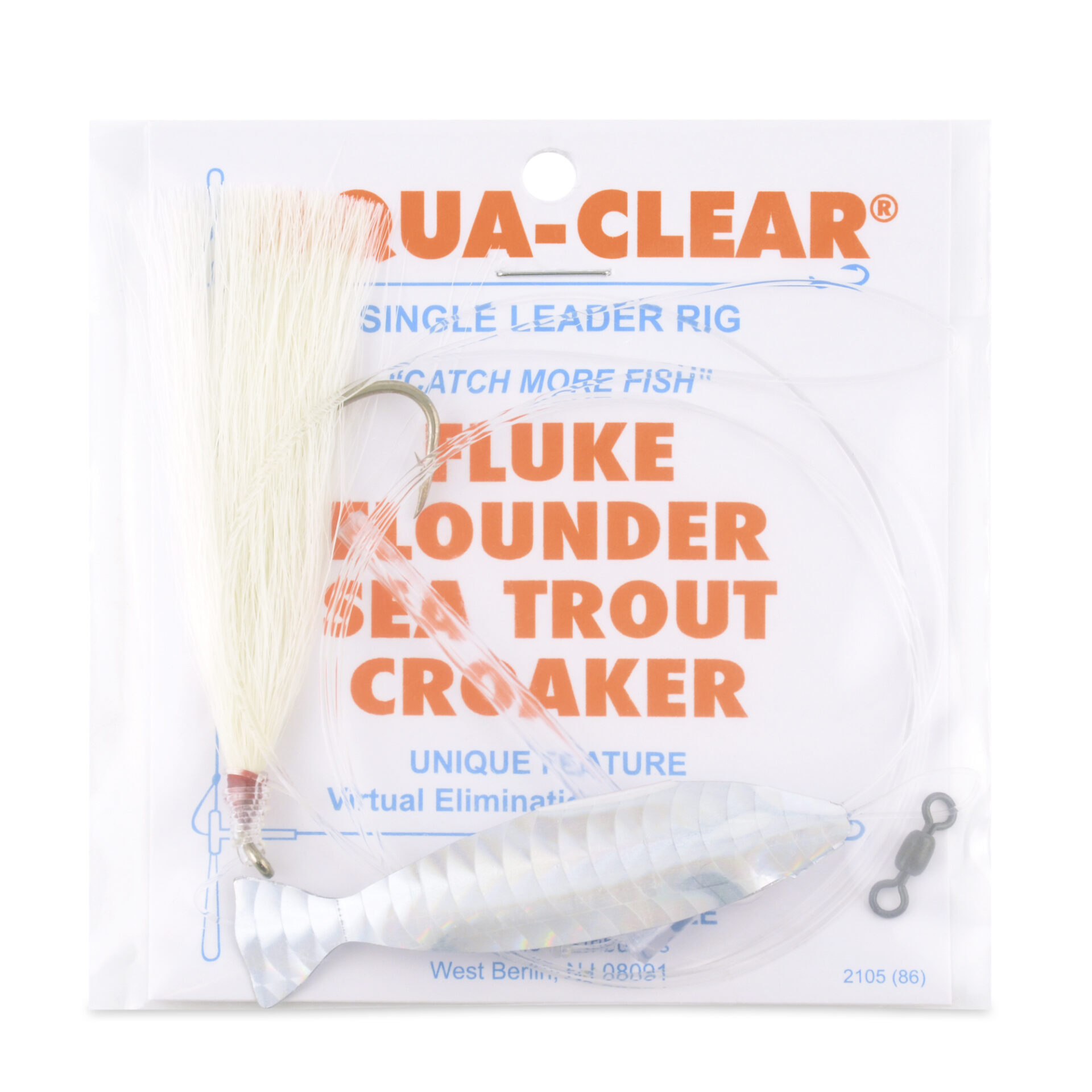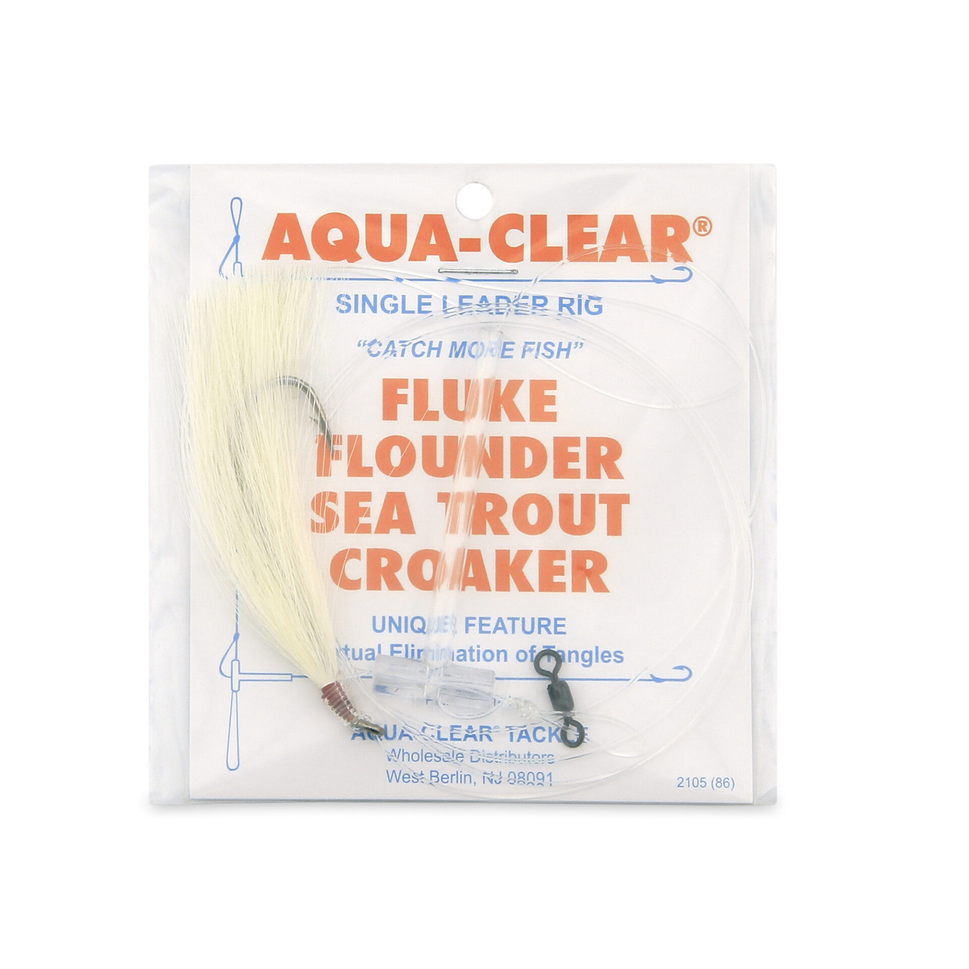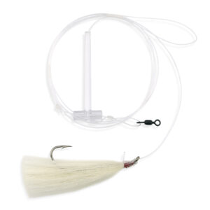 Aqua-Clear, Hair Teaser Rig, Flounder / Fluke / Sea Trout / Weakfish / Croaker, 3/0 XL Nickel Hook, AFW Swivel, 40 lb / 18.1 kg Grand Slam Mono, T-Standoff, White HairAvailability: In stock
