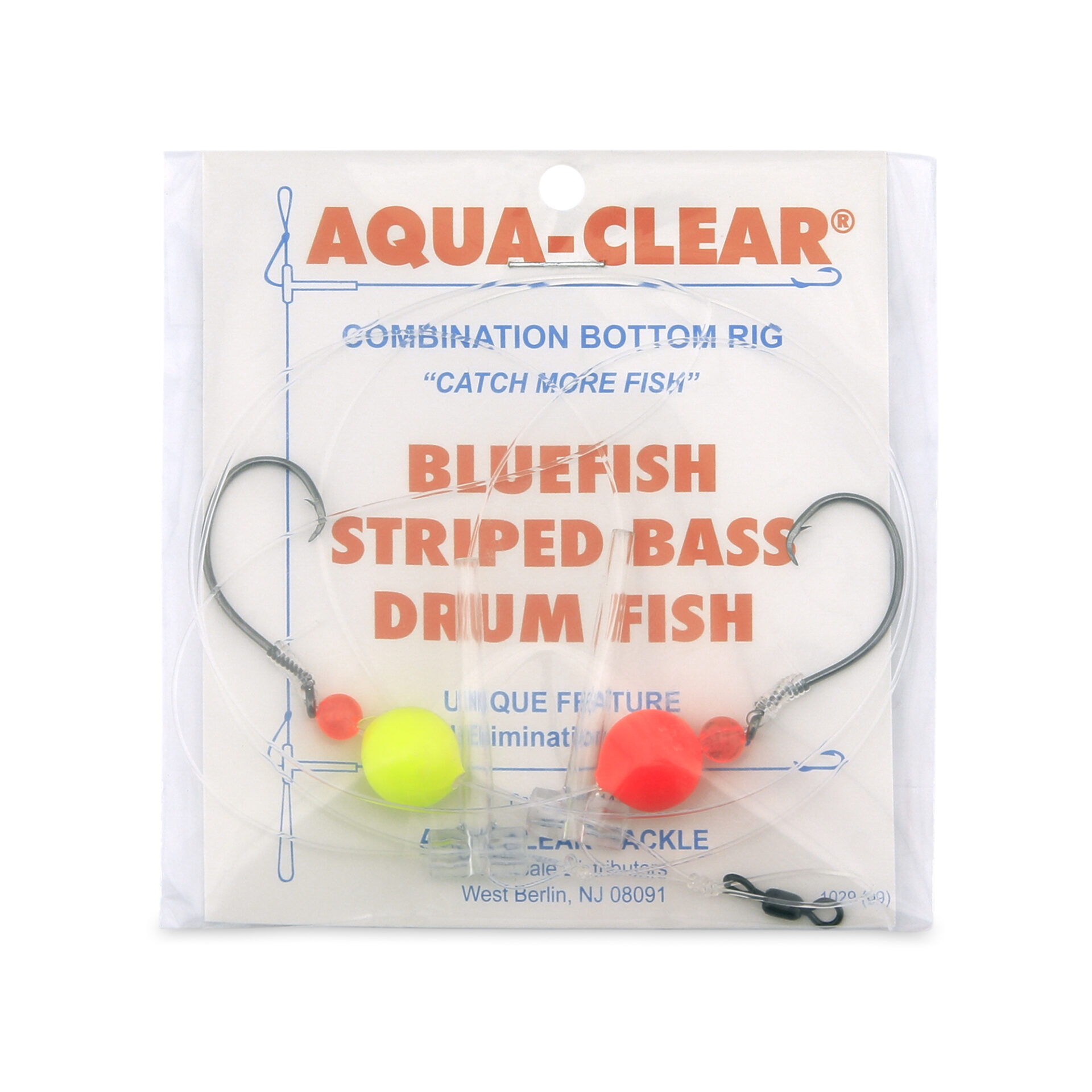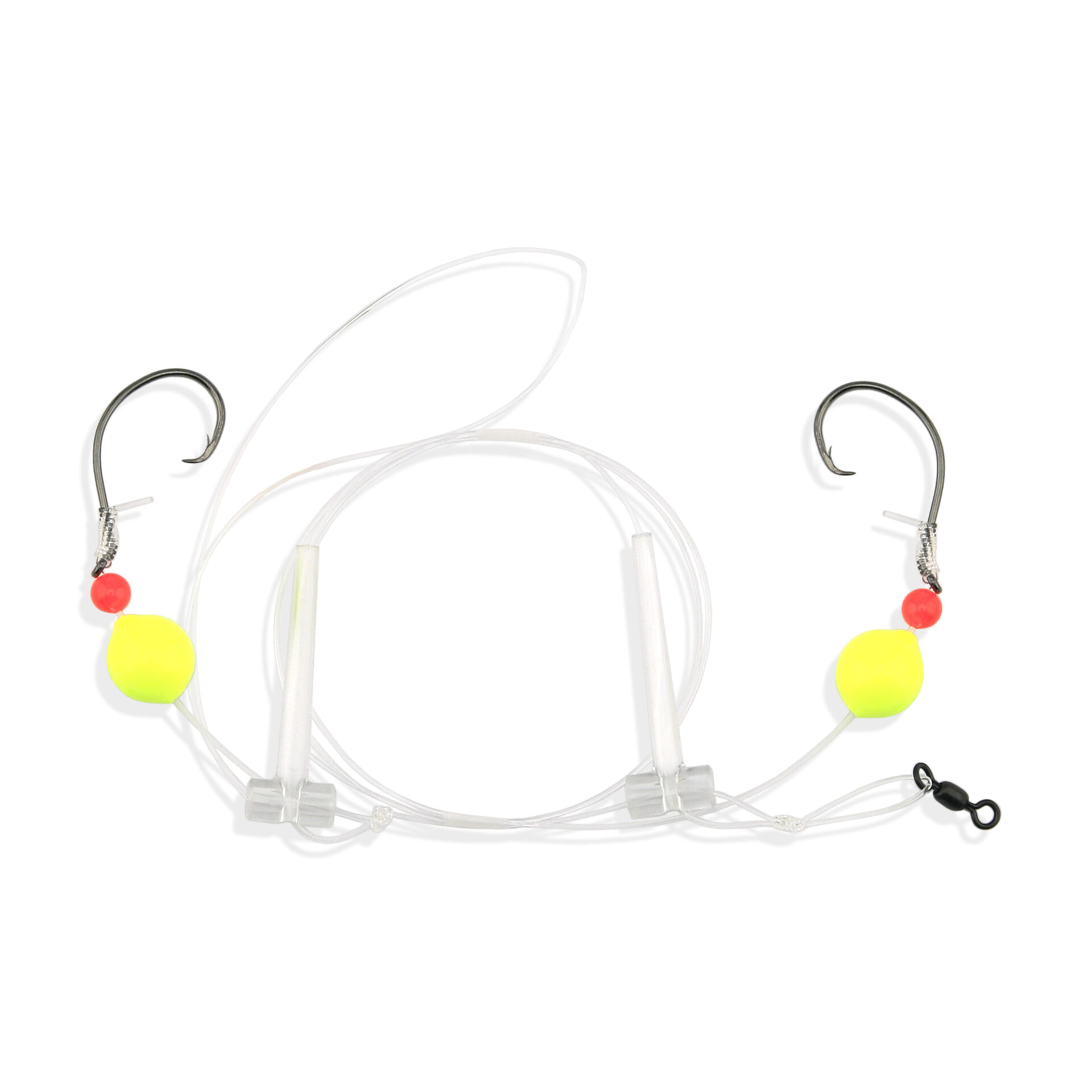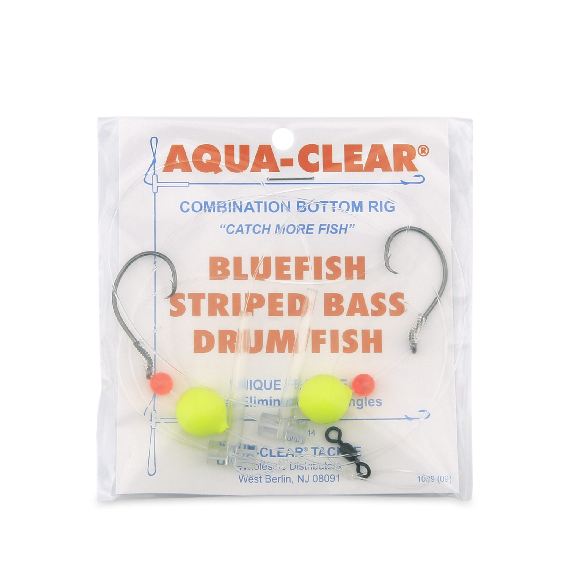 Aqua-Clear, Hi-Lo Bluefish Rig, Bluefish/Striped Bass/Rockfish/Drum, 3/0 Mustad Blk Nckl Circle Hook, AFW Swivel, 60 lb / 27.2 kg GS Mono, T-Standoff, Chartreuse & Red FloatsAqua-Clear, Hi-Lo Bluefish Rig, Bluefish/Striped Bass/Rockfish/Drum, 3/0 Mustad Blk Nckl Circle Hook, AFW Swivel, 60 lb / 27.2 kg GS Mono, T-Standoff, Chartreuse & Red Floats