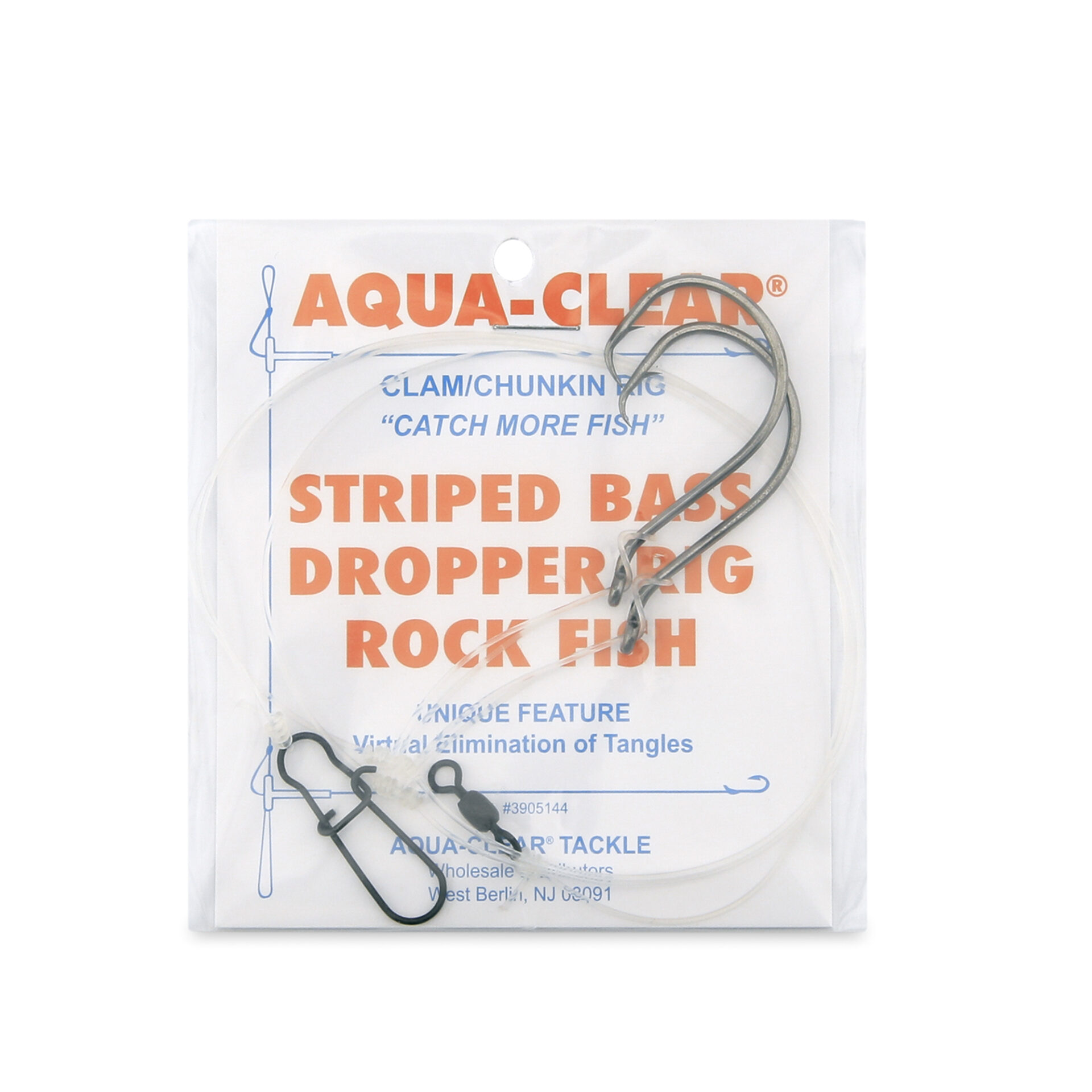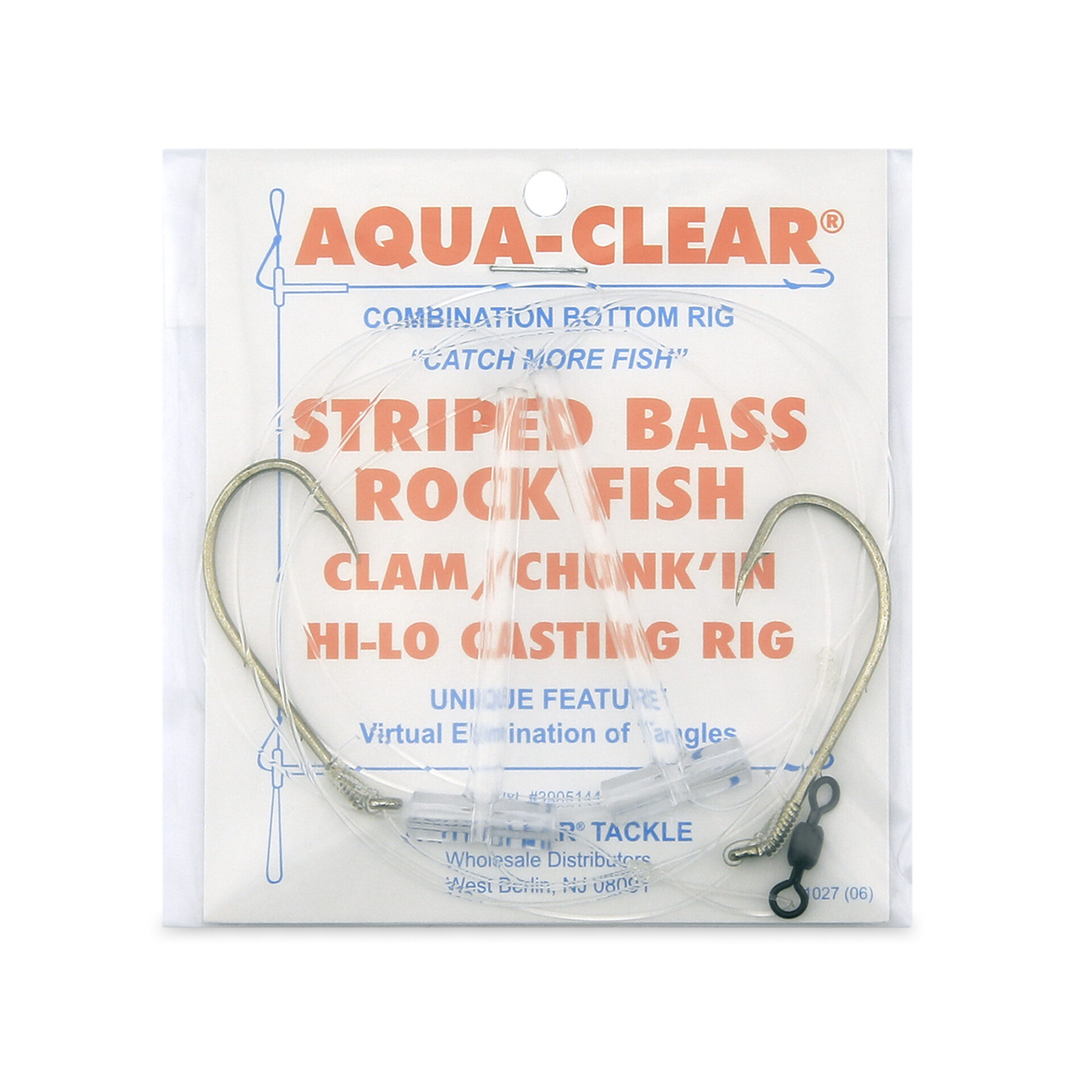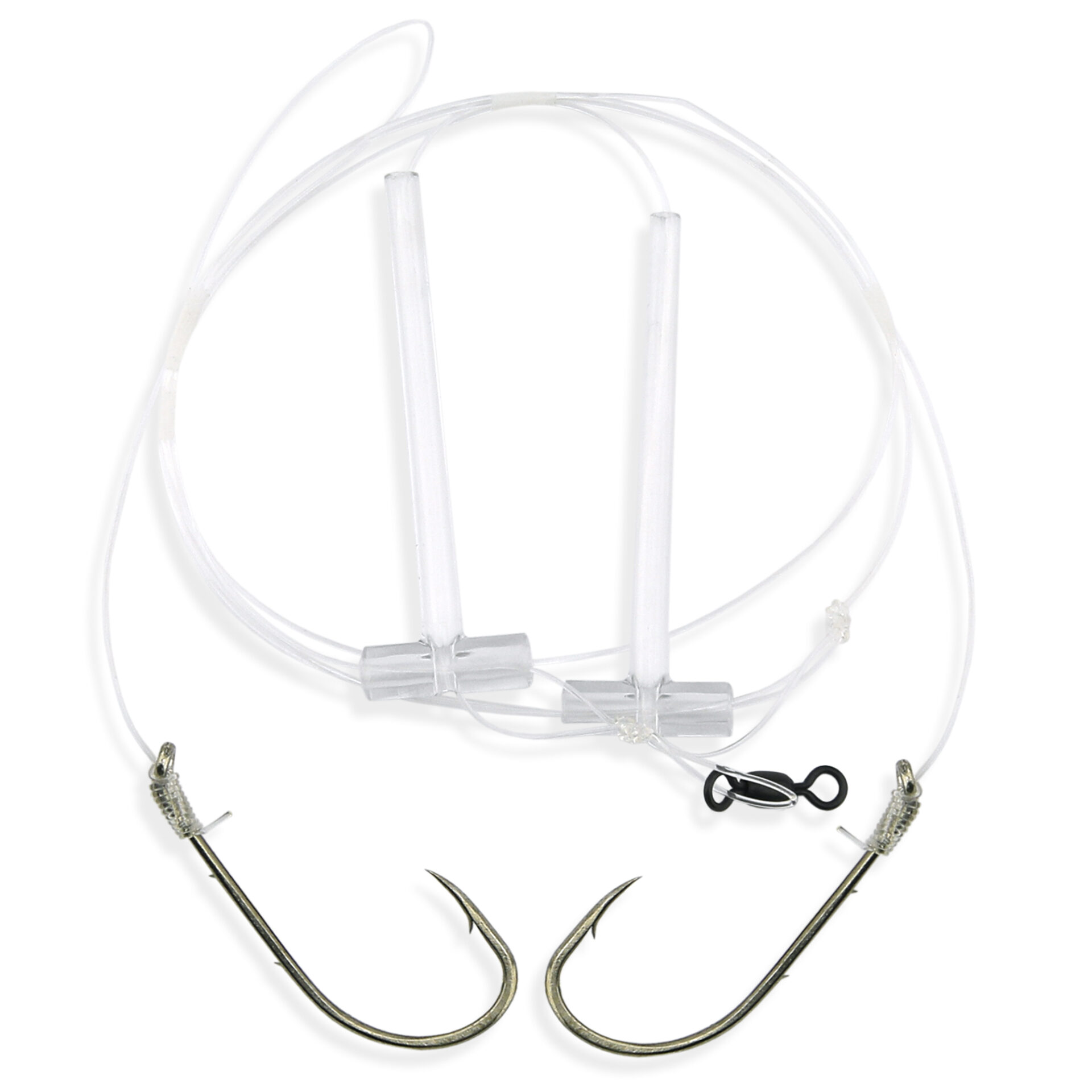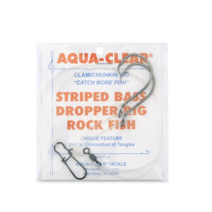 Aqua-Clear, Hi-Lo Clam Tandem Rig, Striped Bass / Rockfish / Drum, 6/0 Bait Holder Hooks, AFW Swivel, 60 lb / 27.2 kg Grand Slam Mono 18 in / 45.7 cm, T-Standoff