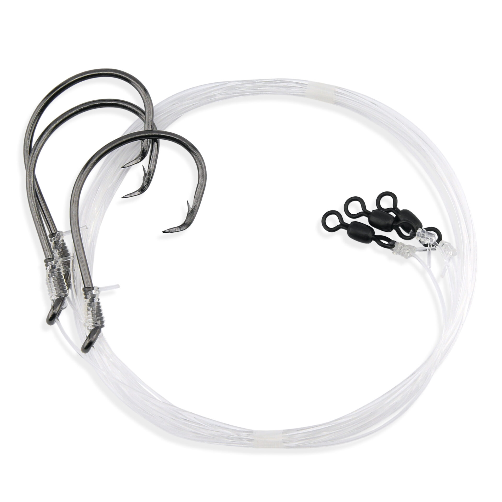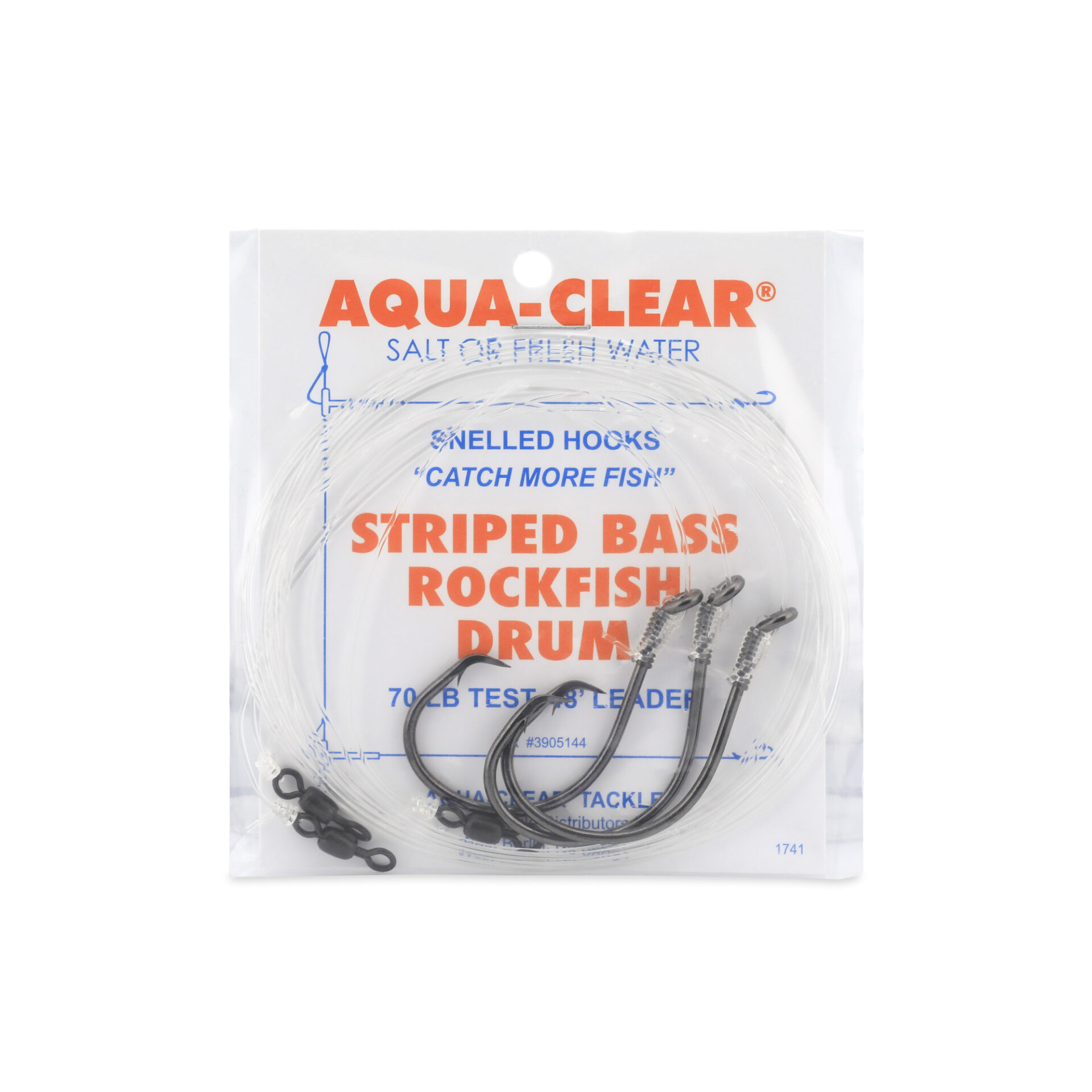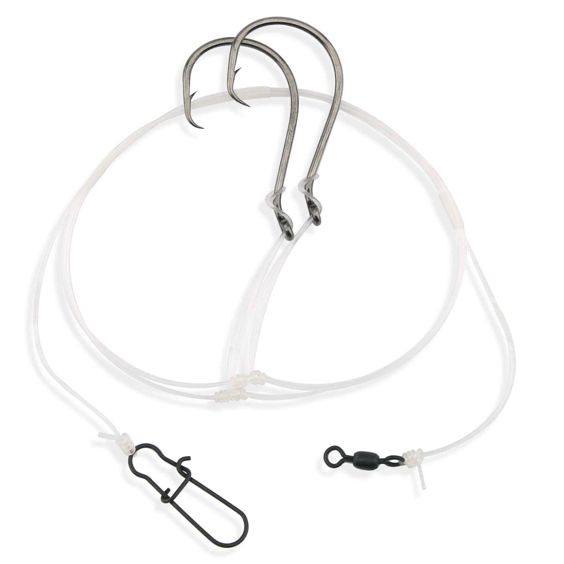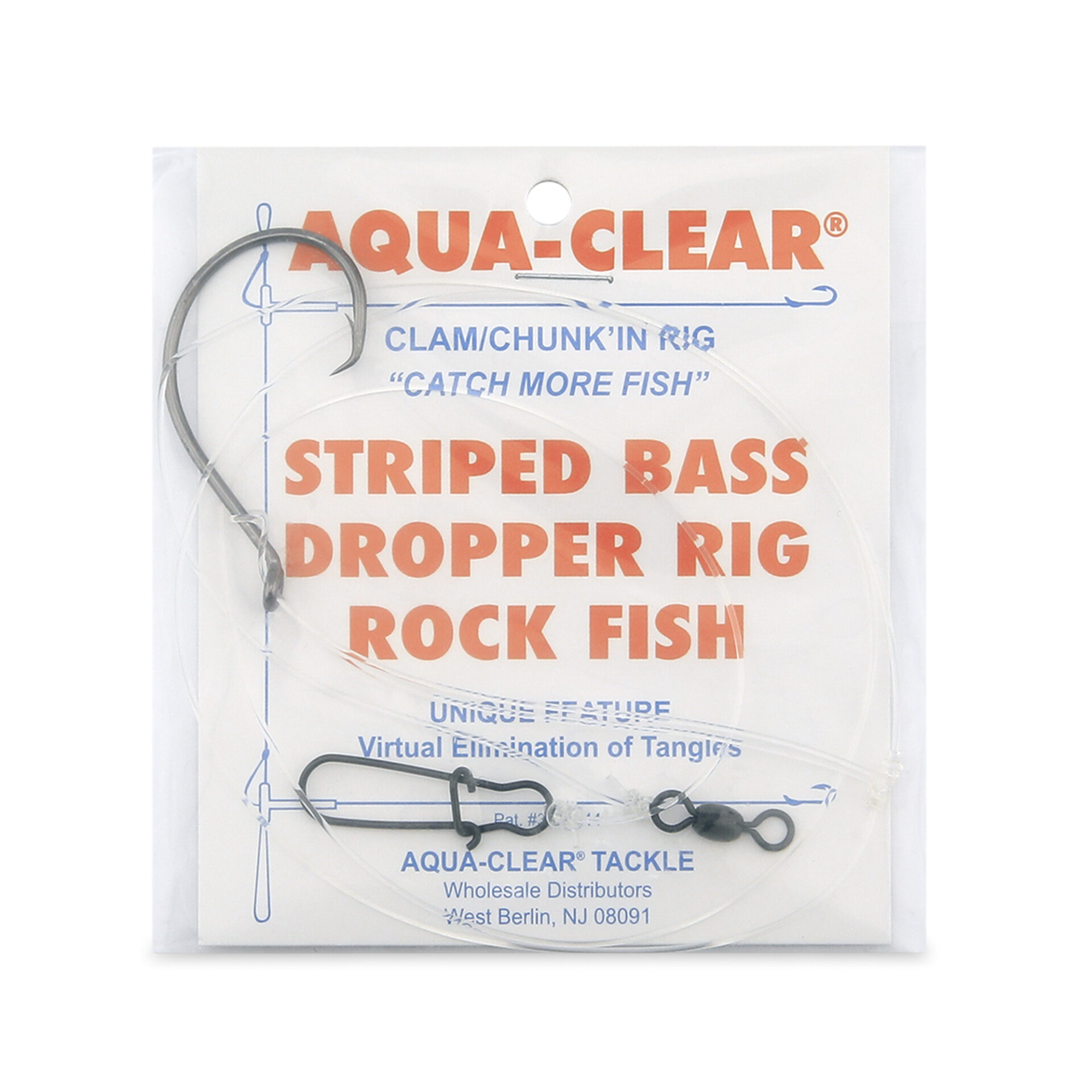 Aqua-Clear, Hi-Lo Clam Tandem Rig, Striped Bass / Rockfish / Drum, 6/0 Bait Holder Hooks, AFW Swivel, 60 lb / 27.2 kg Grand Slam Mono 18 in / 45.7 cm, T-Standoff