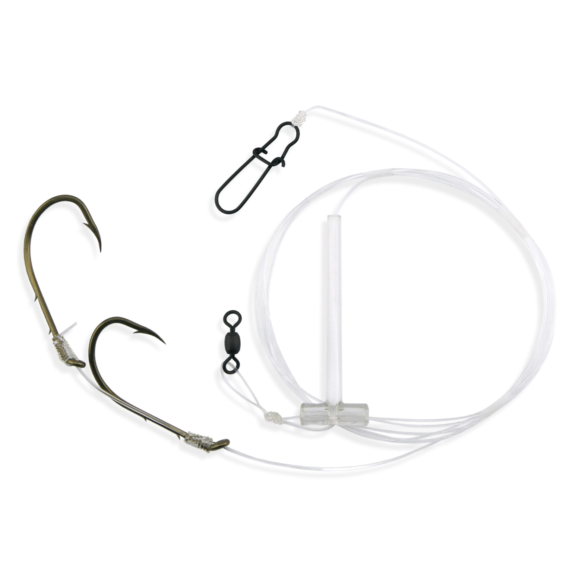 Aqua-Clear, Hi-Lo Clam Tandem Rig, Striped Bass / Rockfish / Drum, 6/0 Bait Holder Hooks, AFW Swivel, 60 lb / 27.2 kg Grand Slam Mono 36 in / 92.4 cm, T-Standoff