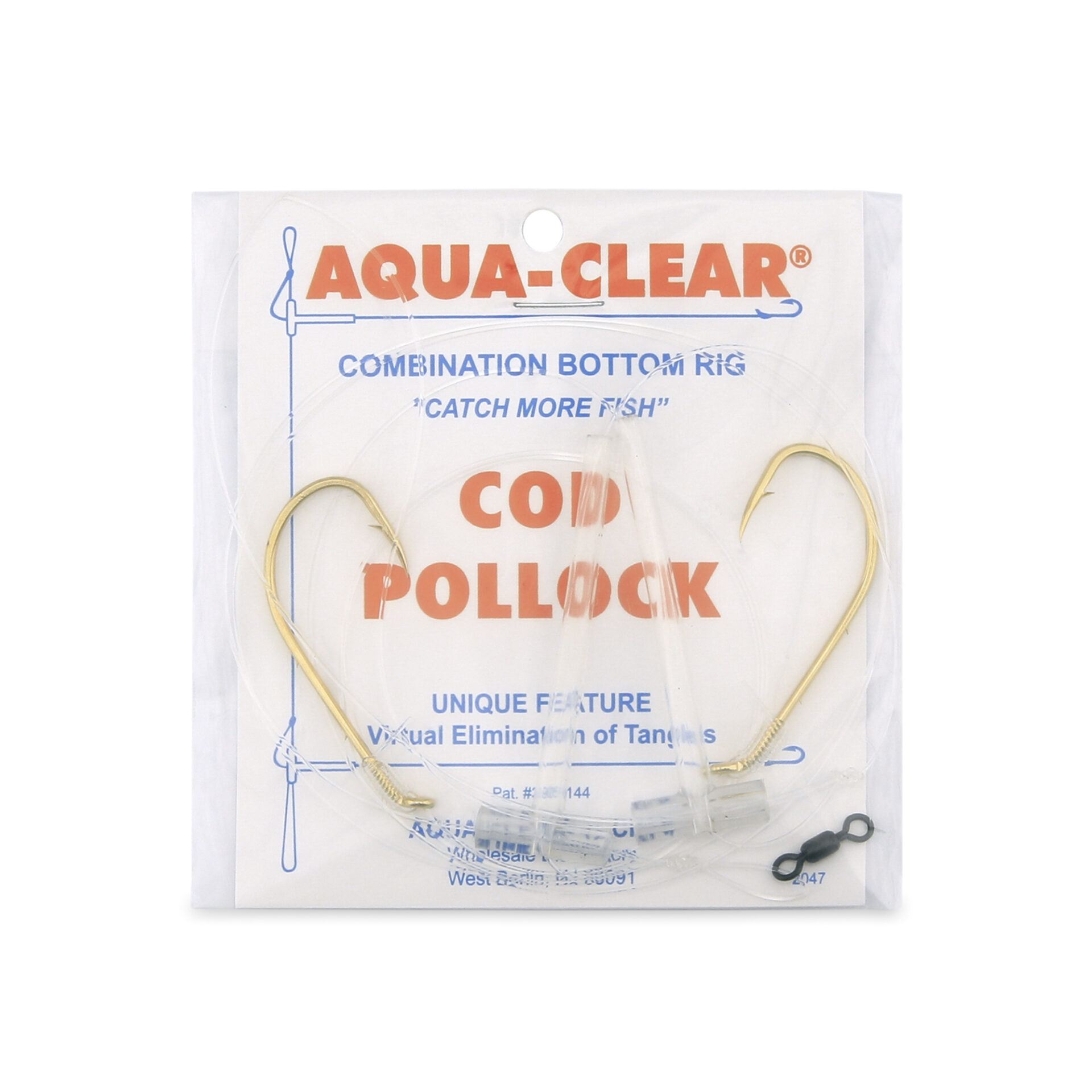 Aqua-Clear, Hi-Lo Cod Pollock Rig, 3/0 Gold Color Octopus Hooks, AFW Swivel, 40 lb / 18.1 kg Grand Slam Mono, T-Standoff
