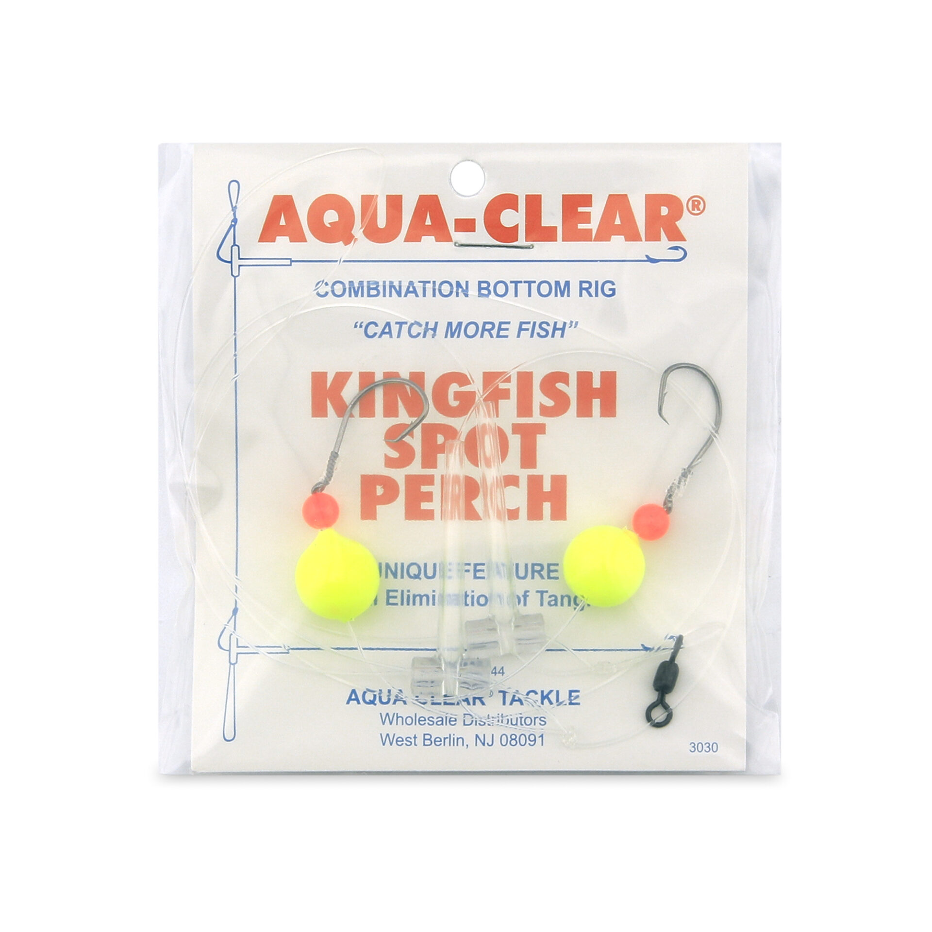 Aqua-Clear, Hi-Lo Combo Rig, Kingfish / Spot / Perch, Size 2 Demon Circle Hooks, AFW Swivel, 25 lb / 11.3 kg Grand Slam Mono, T-Standoff, Red Beads, Chartreuse Floats
