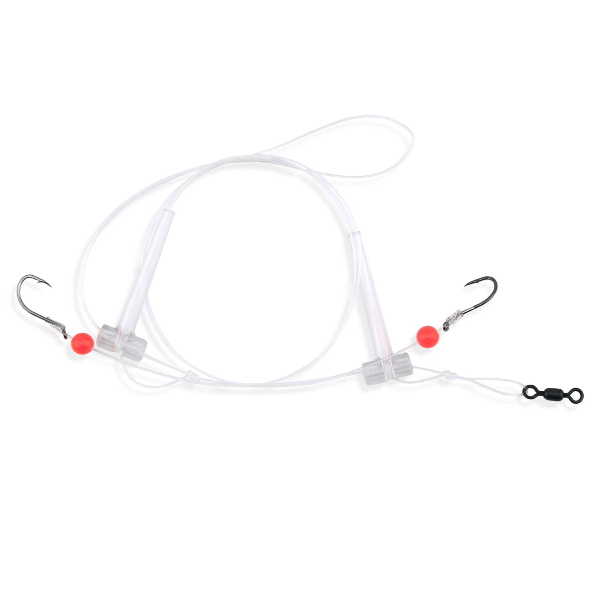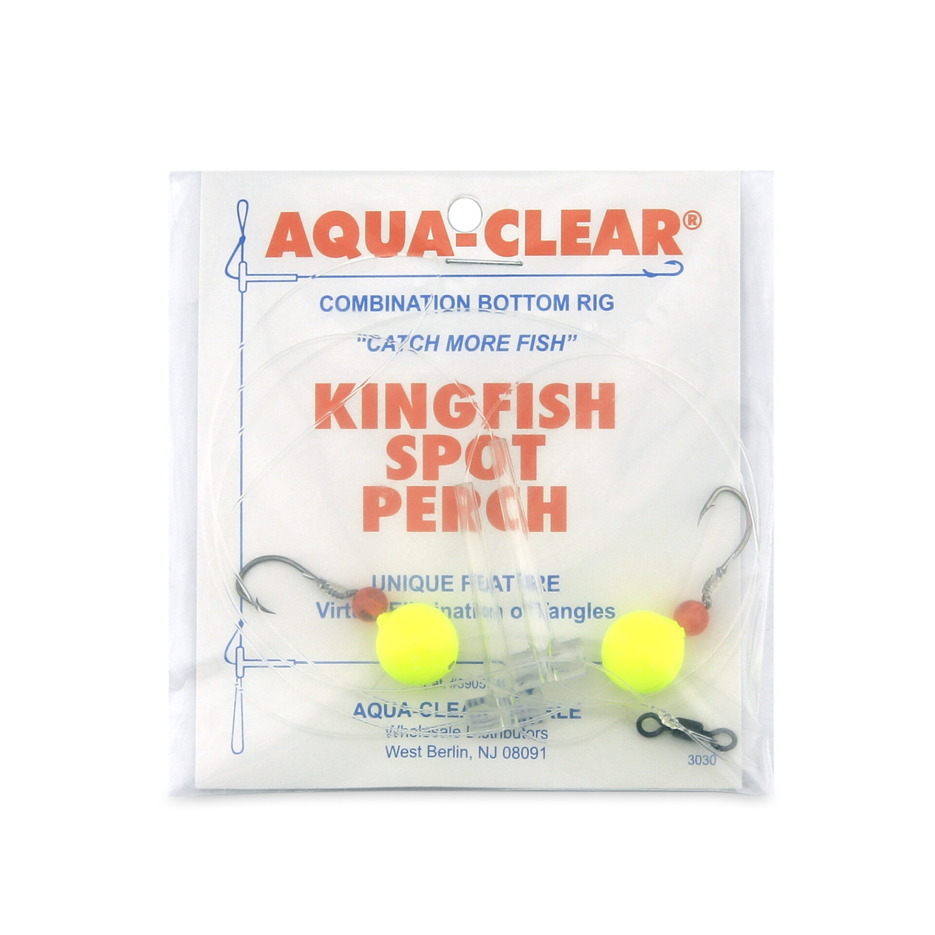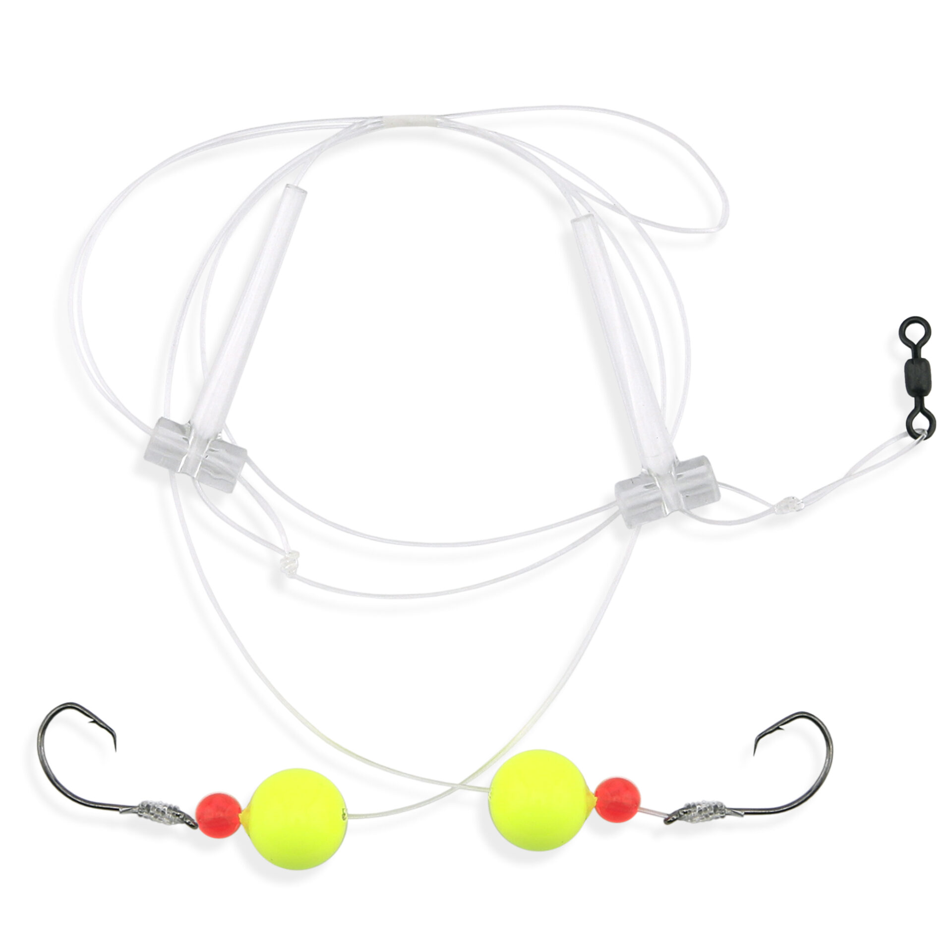 Aqua-Clear, Hi-Lo Combo Rig, Kingfish / Spot / Perch, Size 4 Black Nickel Octopus Hooks, AFW Swivel, 25 lb / 11.3 kg Grand Slam Mono, T-Standoff, Red Beads, Chartreuse Floats