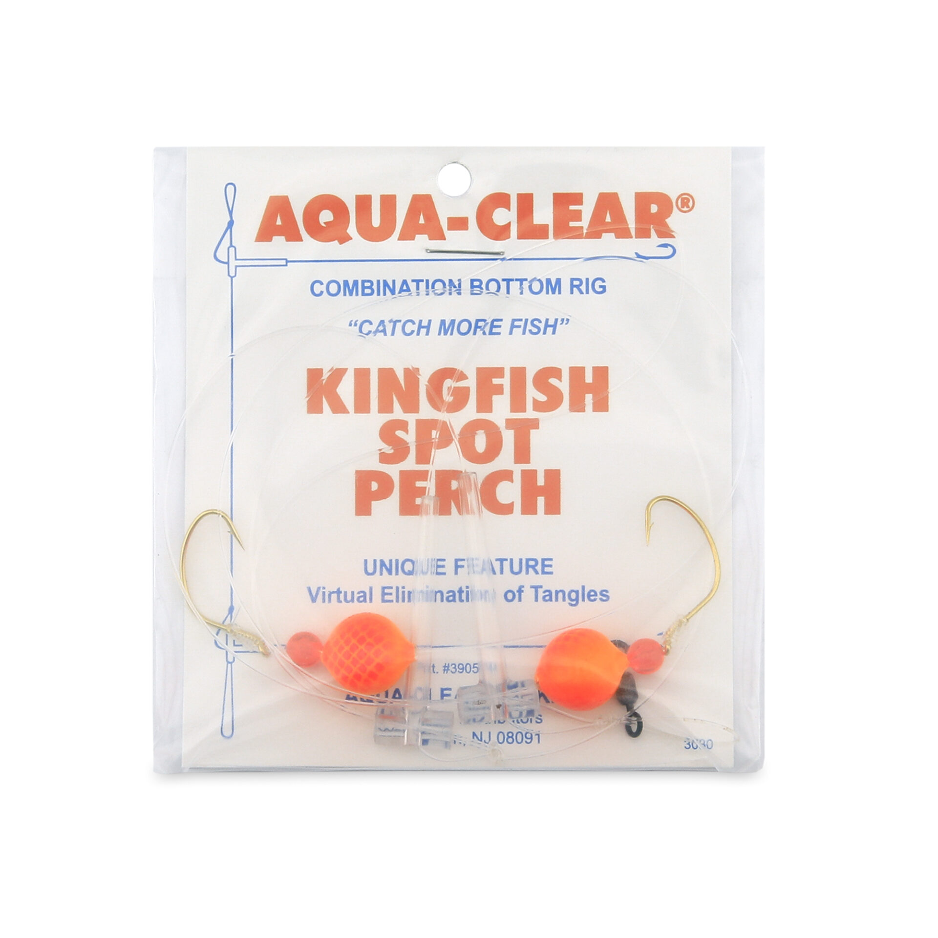 Aqua-Clear, Hi-Lo Combo Rig, Kingfish / Spot / Perch, Size 6 Kahle Hooks, AFW Swivel, 25 lb / 11.3 kg Grand Slam Mono, T-Standoff, Red Beads, Orange Floats