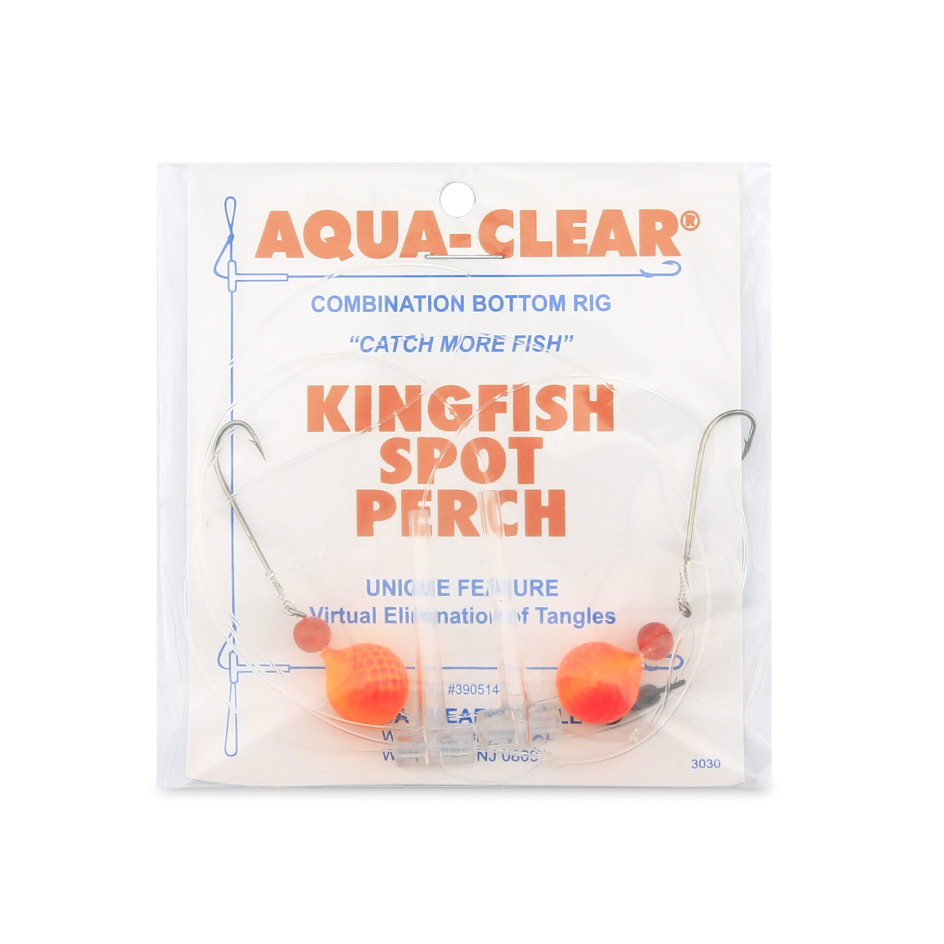 Aqua-Clear, Hi-Lo Combo Rig, Kingfish / Spot / Perch, Size 8 XL Hooks, AFW Swivel, 25 lb / 11.3 kg Grand Slam Mono, T-Standoff, Red Beads, Orange Floats