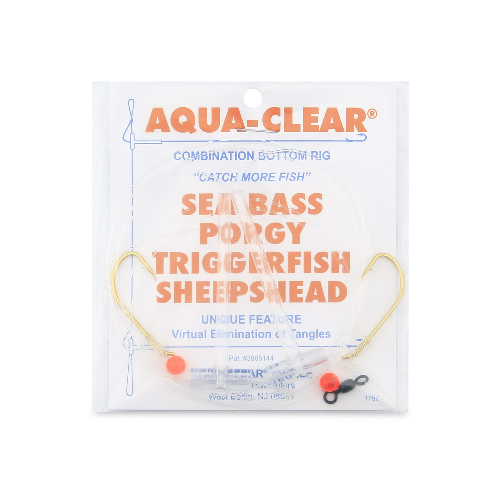 Aqua-Clear, Hi-Lo Combo Rig, Sea Bass / Porgy / Triggerfish / Sheepshead, 1/0 Gold Color Octopus Hook, AFW Swivel, 40 lb / 18.1 kg, T-Standoff, Red Beads
