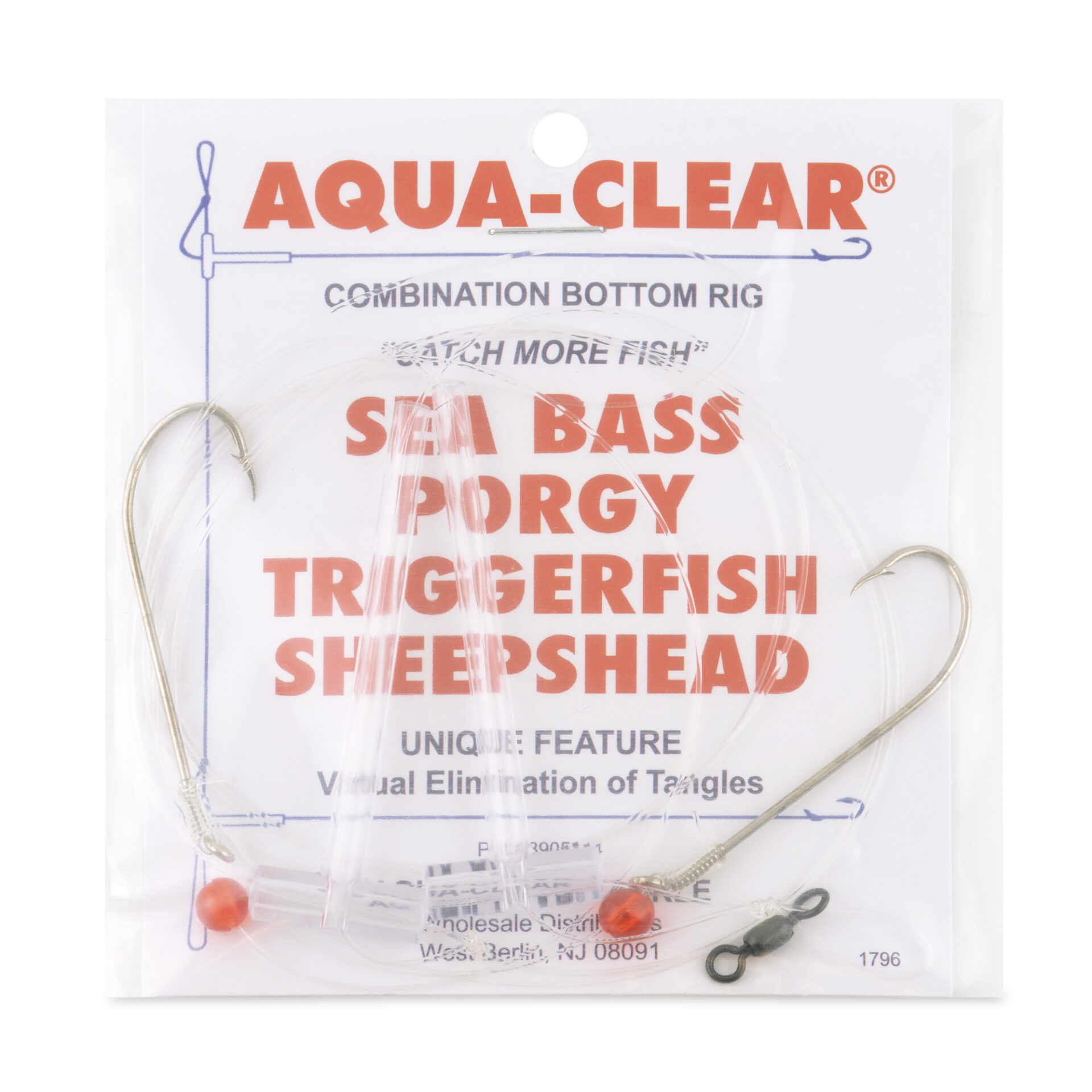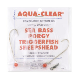 Aqua-Clear, Hi-Lo Combo Rig, Sea Bass / Porgy / Triggerfish / Sheepshead, Size 4 XL Hook, AFW Swivel, 40 lb / 18.1 kg, T-Standoff, Red BeadsAqua-Clear, Hi-Lo Combo Rig, Sea Bass / Porgy / Triggerfish / Sheepshead, Size 4 XL Hook, AFW Swivel, 40 lb / 18.1 kg, T-Standoff, Red Beads