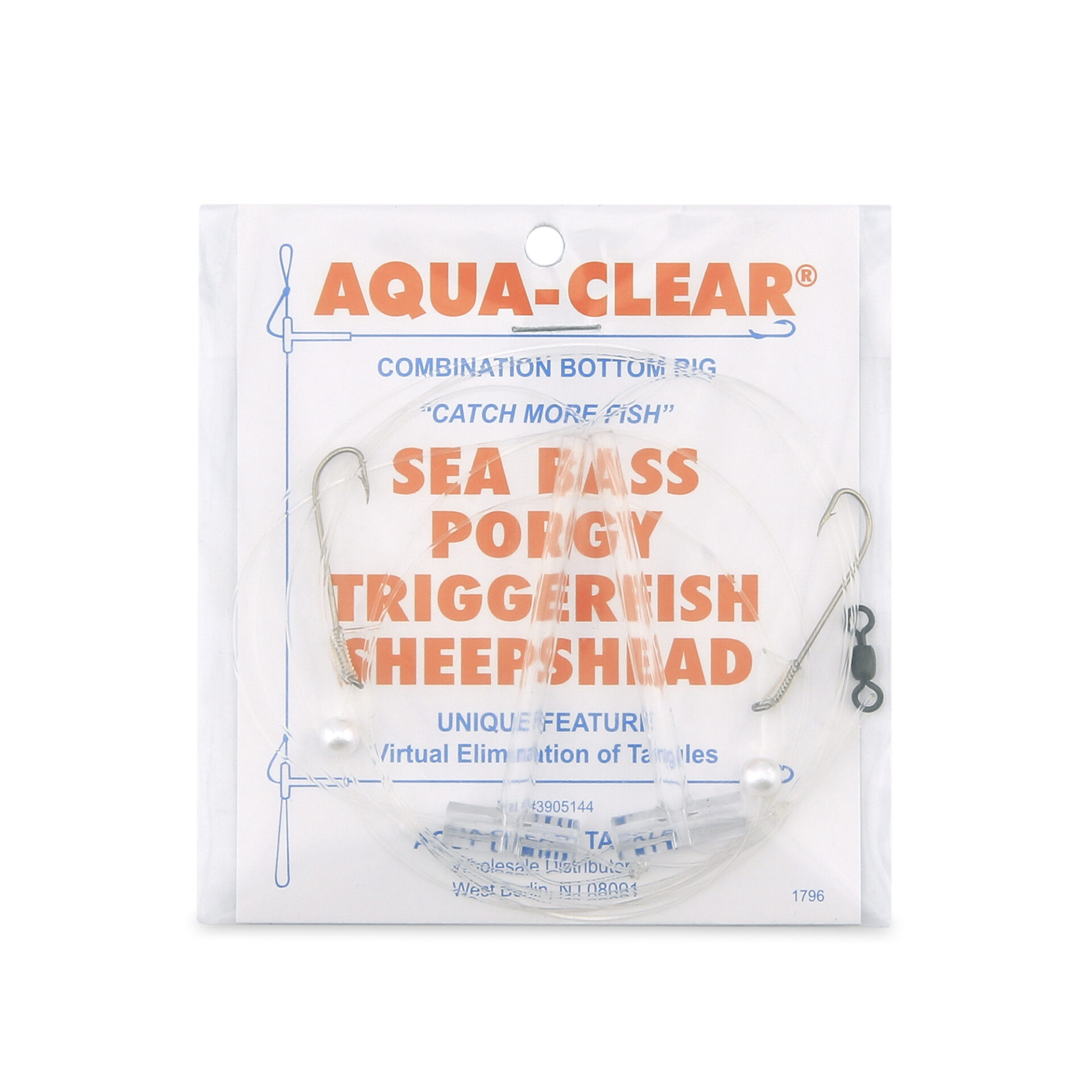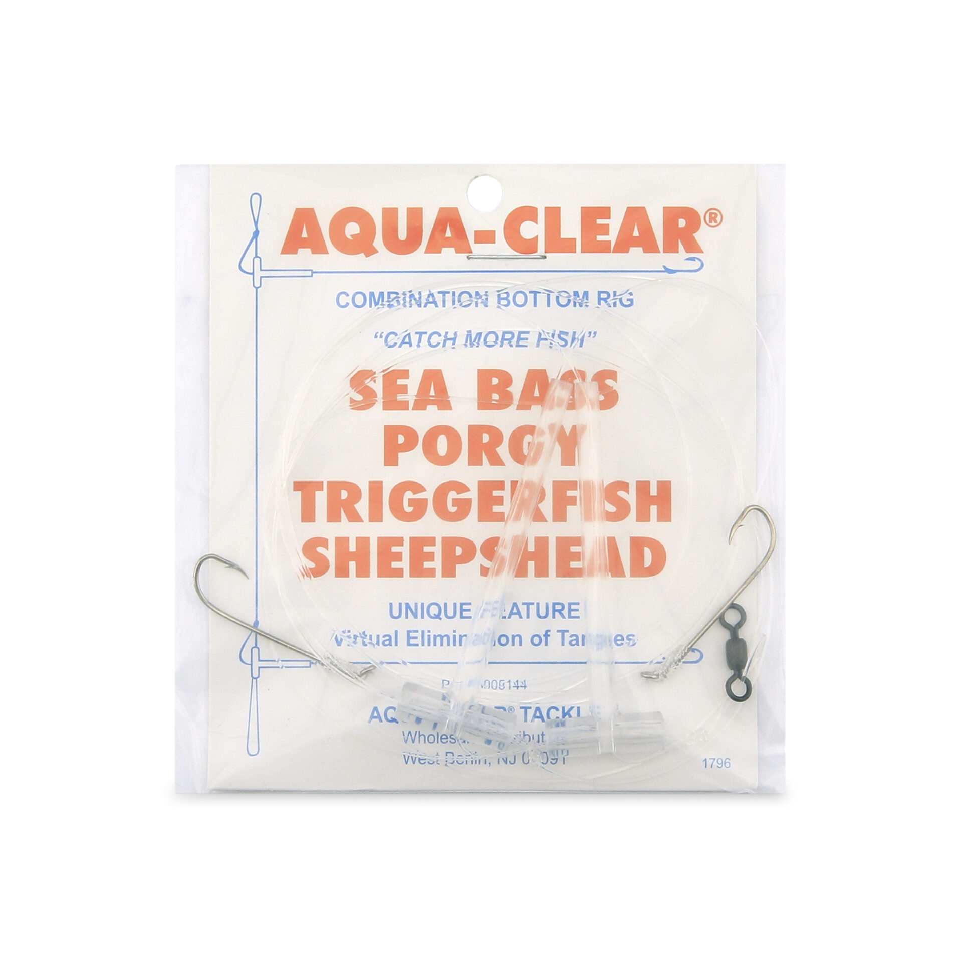 Aqua-Clear, Hi-Lo Combo Rig, Sea Bass / Porgy / Triggerfish / Sheepshead, Size 6 XL Hook, AFW Swivel, 40 lb / 18.1 kg, T-Standoff