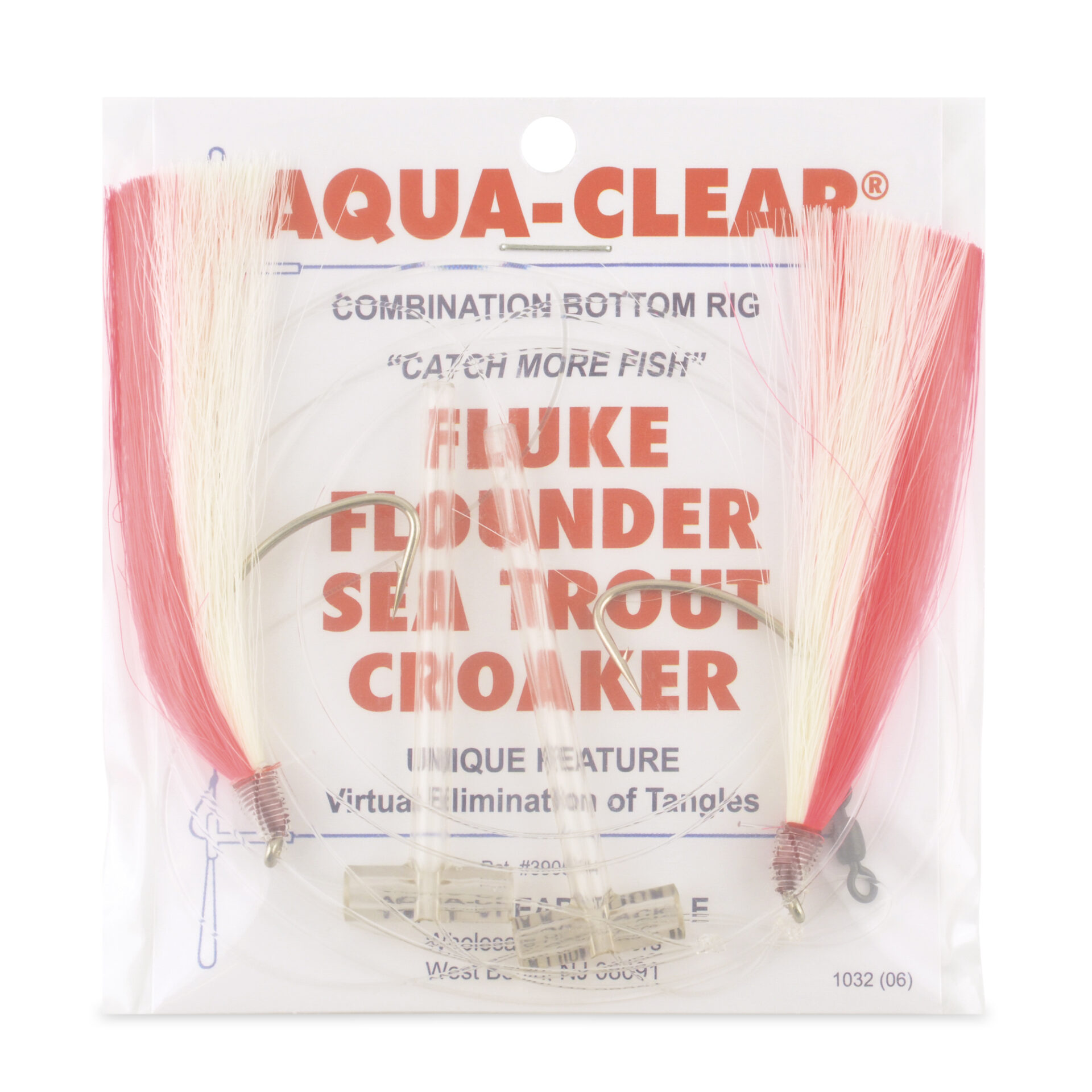 Aqua-Clear, Hi-Lo Mixed Color Hair Teaser Rig, Flounder/Fluke/SeaTrout/Croaker, 3/0 Nickel Octo Hook, AFW Swivel, 40 lb / 18.1 kg GS Mono, T-Standoff, Pink & White HairAvailability: In stock
