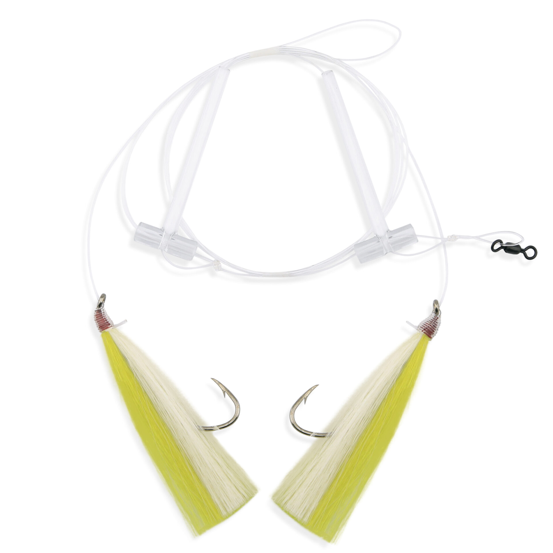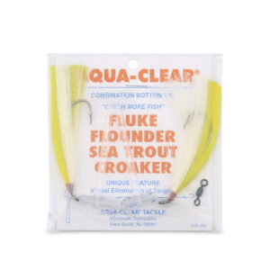 Aqua-Clear, Hi-Lo Mixed Color Hair Teaser Rig, Flounder/Fluke/SeaTrout/Croaker, 3/0 Nickel Octo Hook, AFW Swivel, 40 lb / 18.1 kg GS Mono, T-Standoff, Yellow & White HairAvailability: In stock