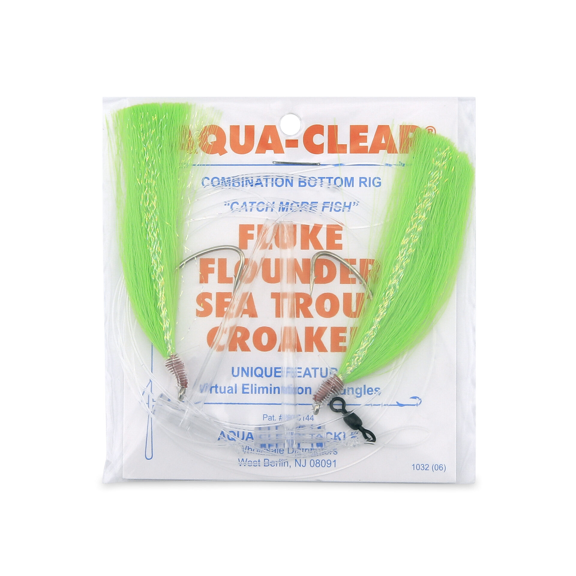 Aqua-Clear, Hi-Lo Pearl Accent Hair Teaser Rig, Flounder/Fluke/SeaTrout/Croaker, 3/0 XL Hook, AFW Swivel, 40 lb / 18.1 kg GS Mono, T-Standoff, Green Hair, Pearl AccentAvailability: In stock