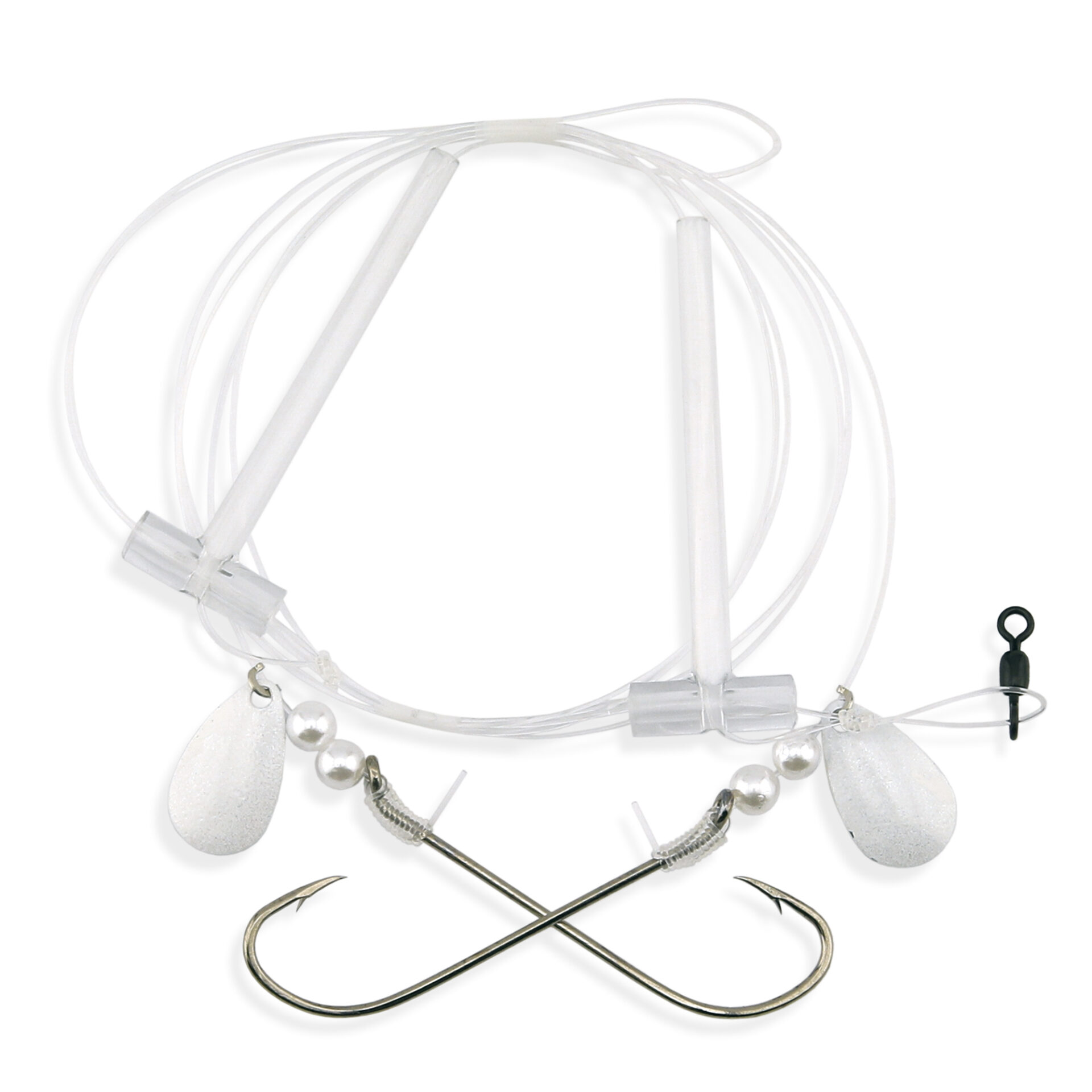 Aqua-Clear, Hi-Lo Pearl & Spinner Rig, Flounder/Fluke/SeaTrout/Croaker, 3/0 XL Nickel Hook, AFW Swivel, 40 lb / 18.1 kg GS Mono, T-Standoff, Pearl & Spinner Top & Bottom