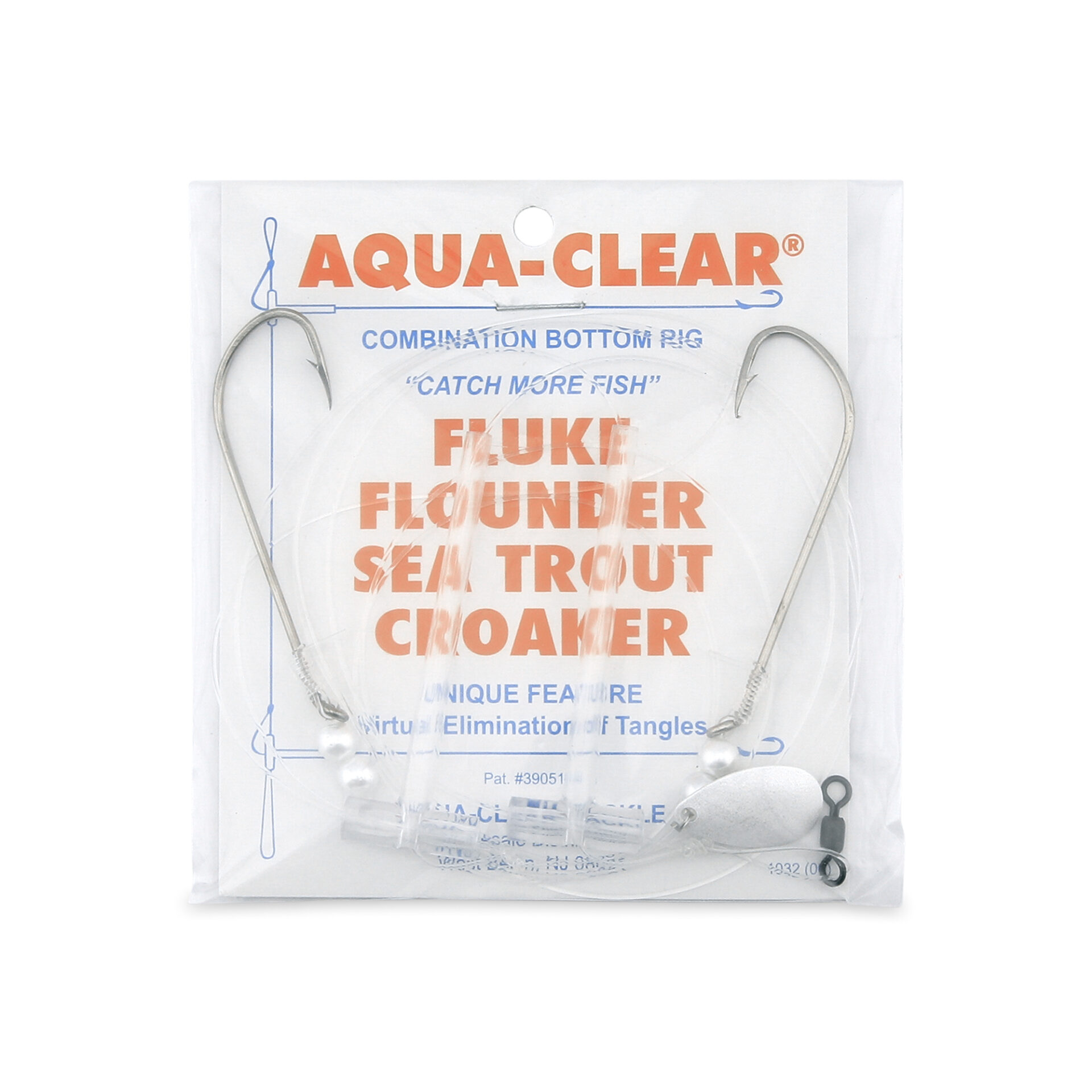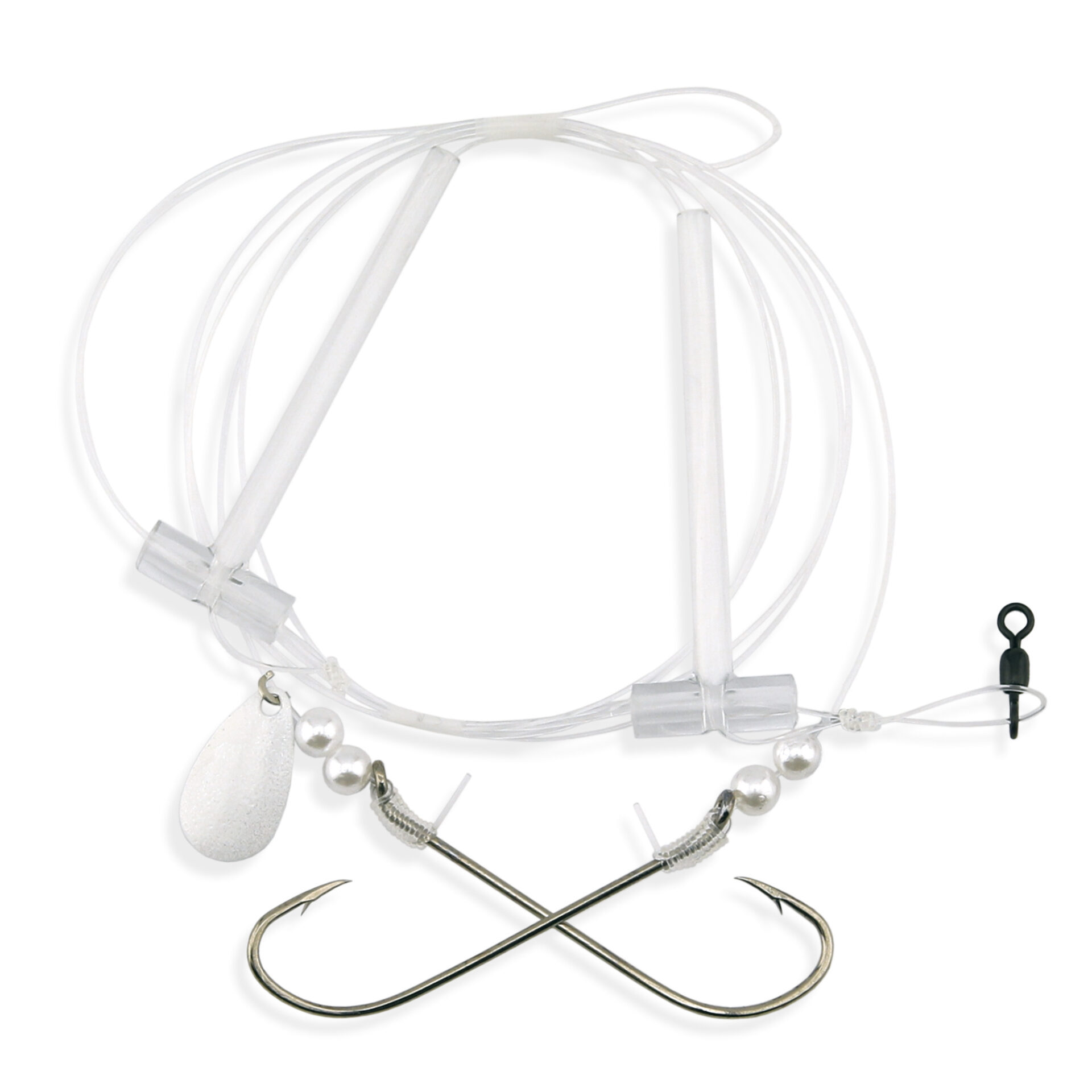 Aqua-Clear, Hi-Lo Pearl & Spinner Rig, Flounder/Fluke/SeaTrout/Croaker, 3/0 XL Nickel Hook, AFW Swivel, 40 lb / 18.1 kg GS Mono, T-Standoff, Pearl & Spinner Top, Pearl Bottom