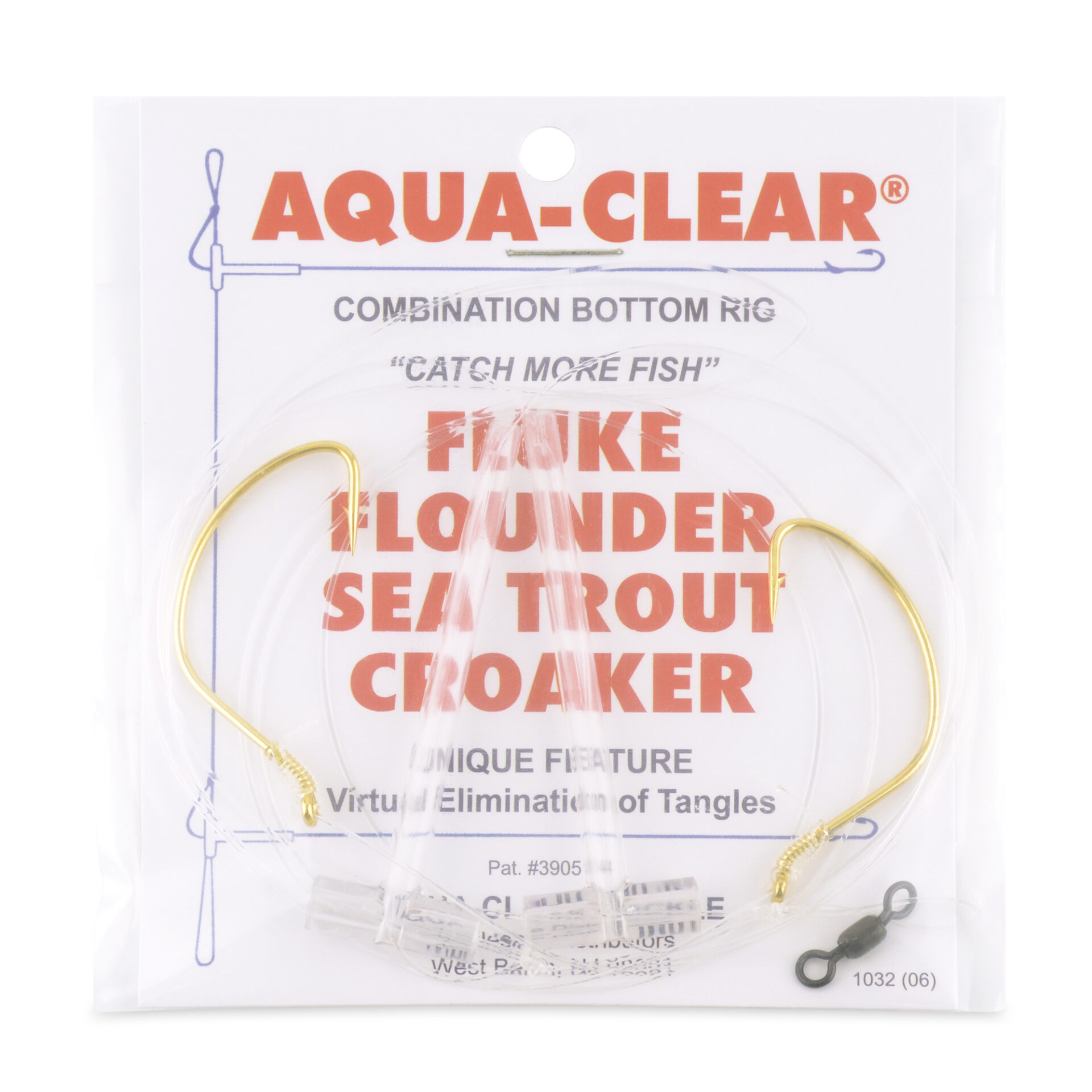 Aqua-Clear, Hi-Lo Plain Rig, Flounder / Fluke / Sea Trout / Croaker, 1/0 Gold Color Wide Gap Hook, AFW Swivel, 40 lb / 18.1 kg Grand Slam Mono, T-Standoff