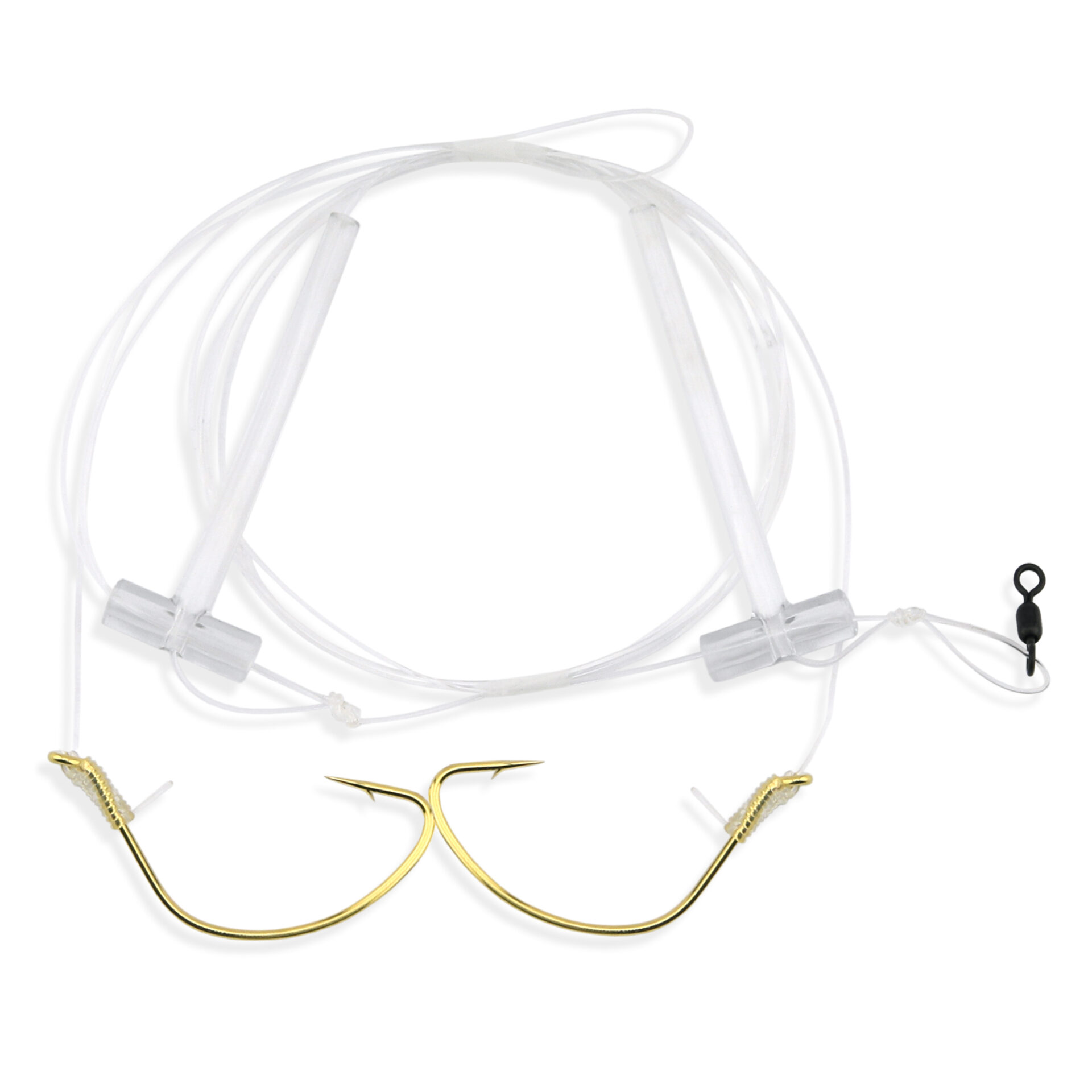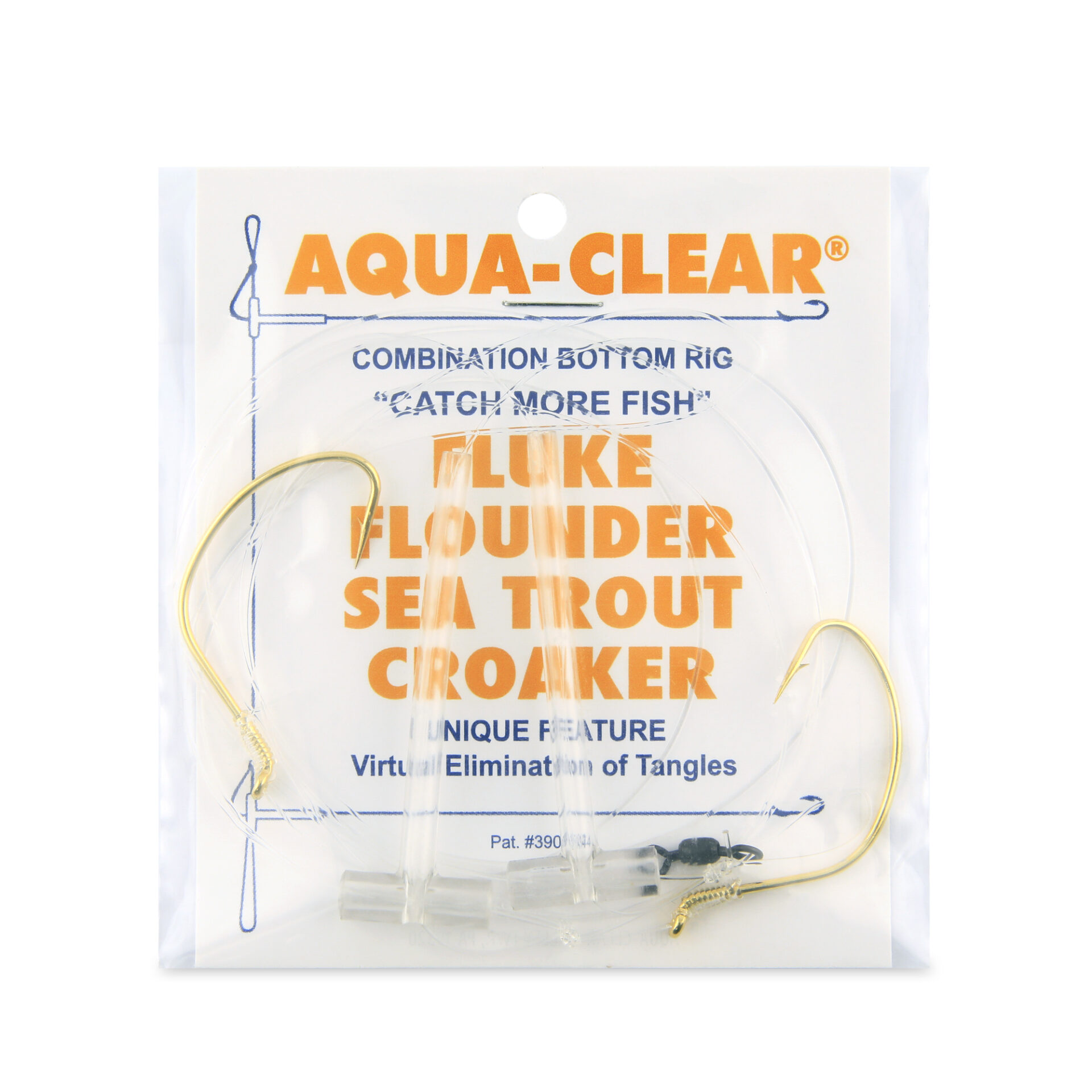 Aqua-Clear, Hi-Lo Plain Rig, Flounder / Fluke / Sea Trout / Croaker, 4/0 Gold Color Wide Gap Hook, AFW Swivel, 40 lb / 18.1 kg Grand Slam Mono, T-Standoff