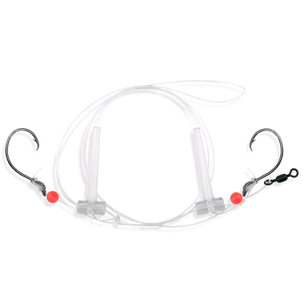 Aqua-Clear, Hi-Lo Pomano Snapper Rig, Pompano/Snapper/Whiting/Spot, 2/0 Circle Hook, AFW Swivel, 40 lb / 18.1 kg GS Mono, T-Standoff, Red Beads