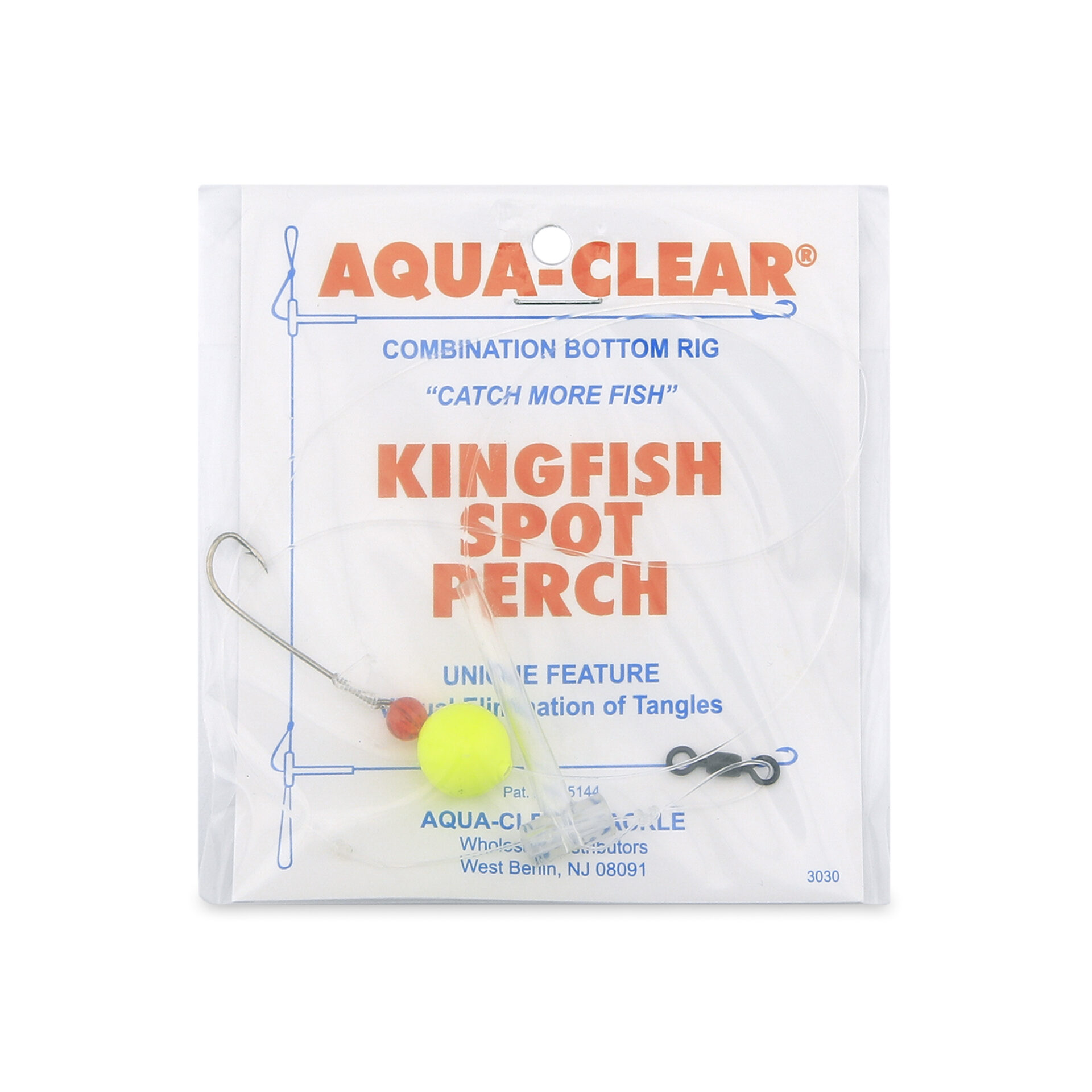 Aqua-Clear, Hi-Lo Rig, Kingfish / Spot / Perch, Size 8 XL Hooks, AFW Swivel, 25 lb / 11.3 kg Grand Slam Mono, T-Standoff, Red Bead, Chartreuse Float