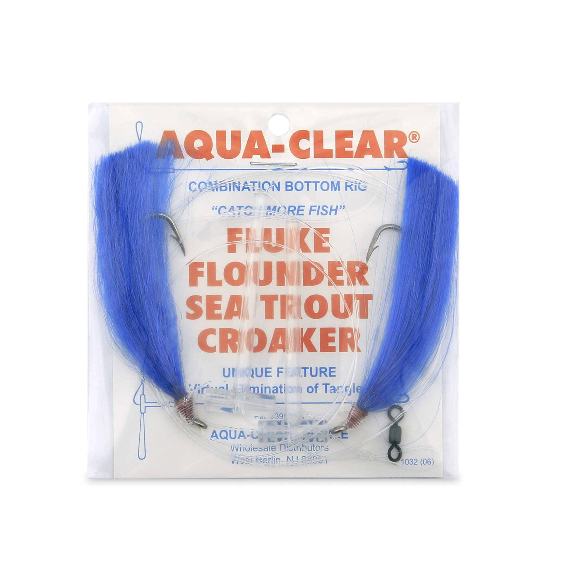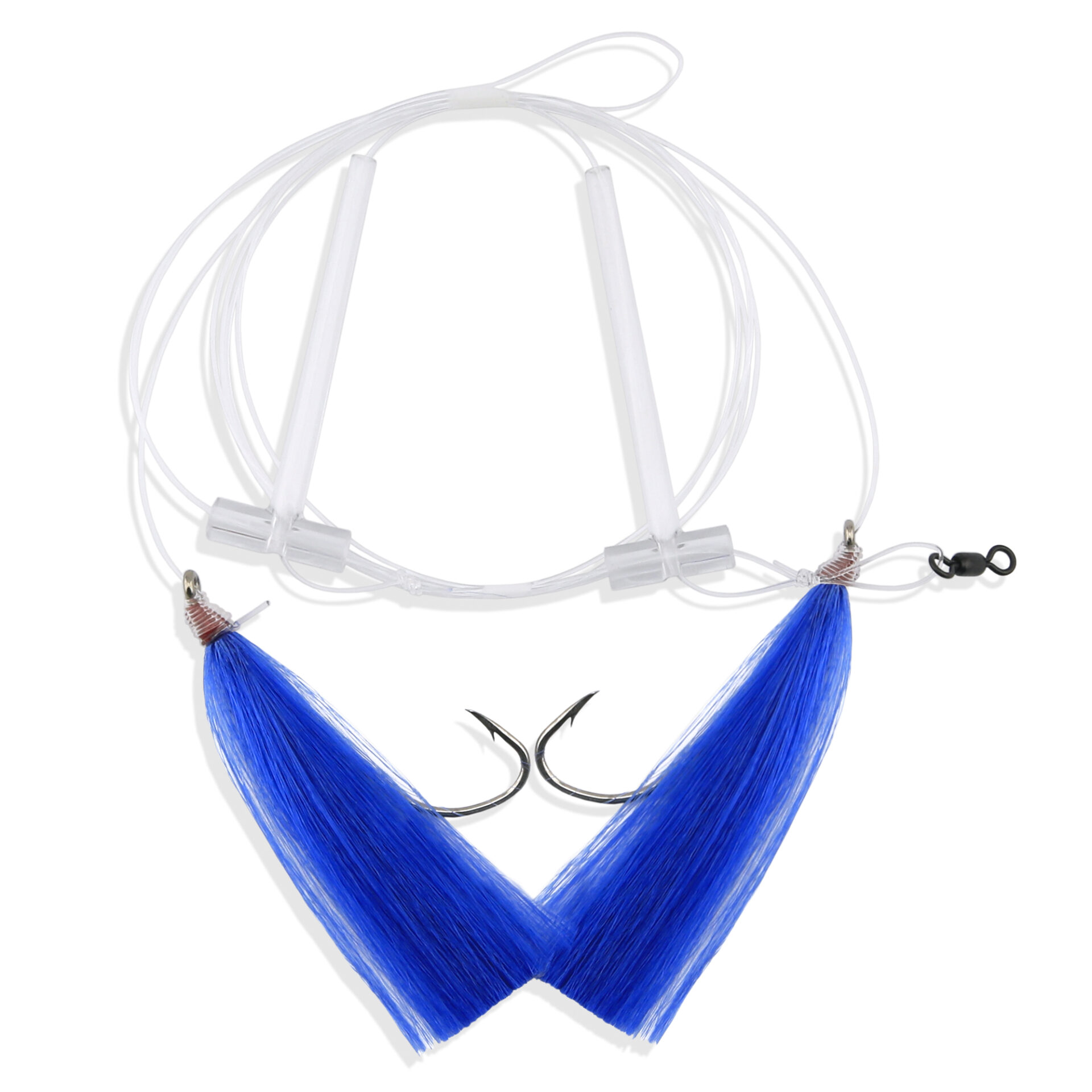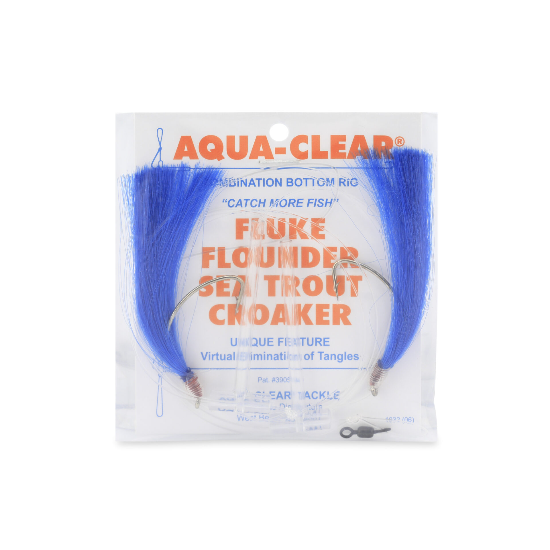 Aqua-Clear, Hi-Lo Solid Color Hair Teaser Rig, Flounder/Fluke/SeaTrout/Weakfish/Croaker, 3/0 Nickel Octopus Hook, AFW Swivel, 40 lb / 18.1 kg GS Mono, T-Standoff, Blue HairAvailability: In stock