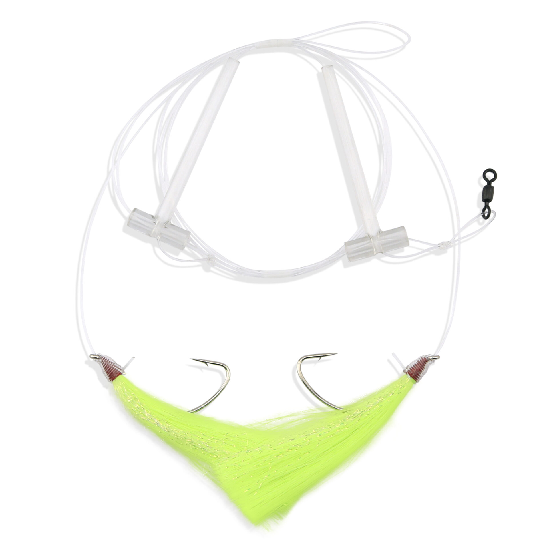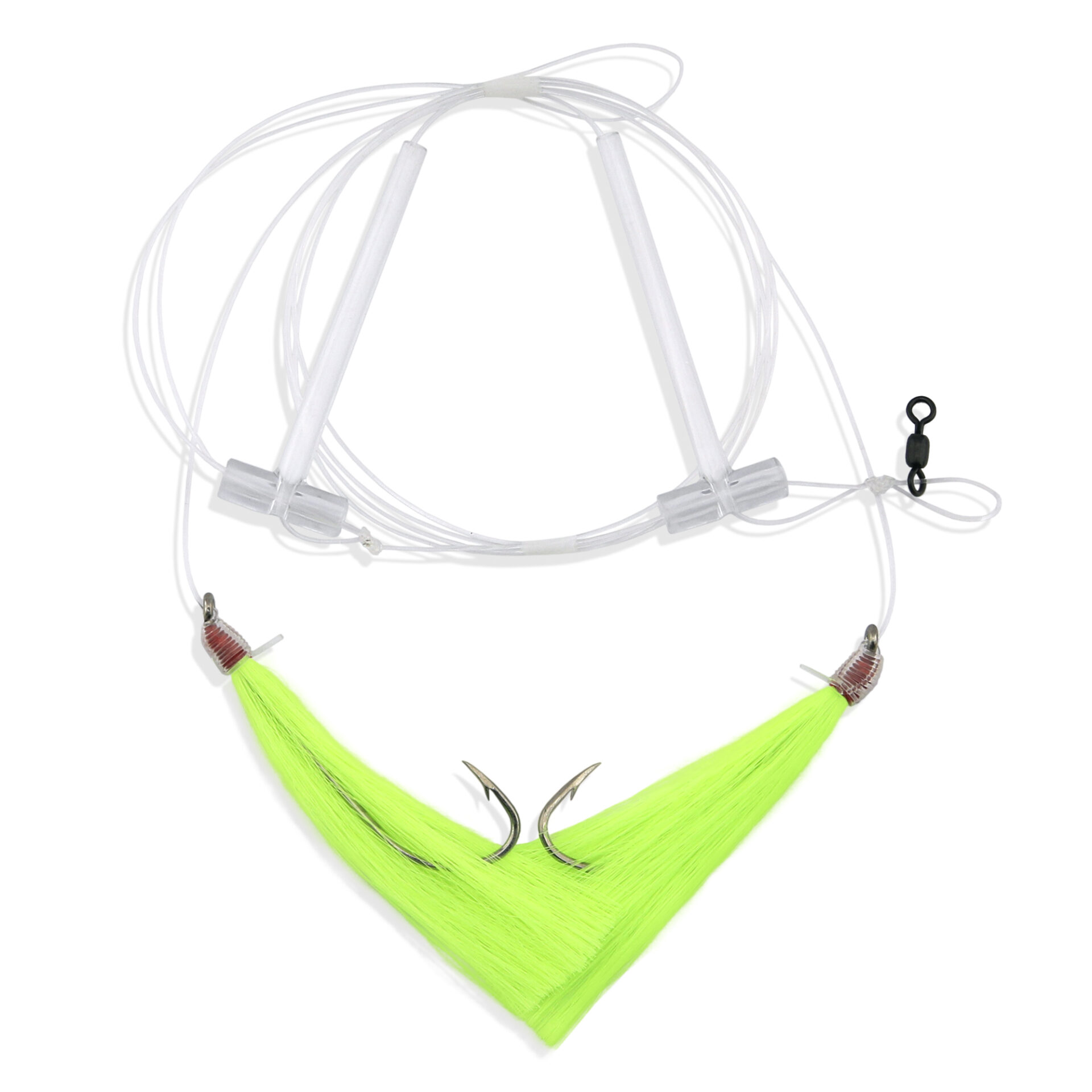 Aqua-Clear, Hi-Lo Solid Color Hair Teaser Rig, Flounder/Fluke/SeaTrout/Weakfish/Croaker, 3/0 Nickel Octopus Hook, AFW Swivel, 40 lb / 18.1 kg GS Mono, T-Standoff, Chrtrse Hair