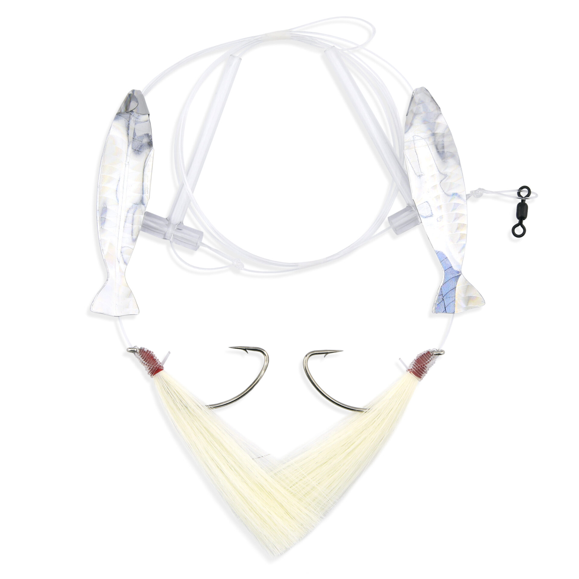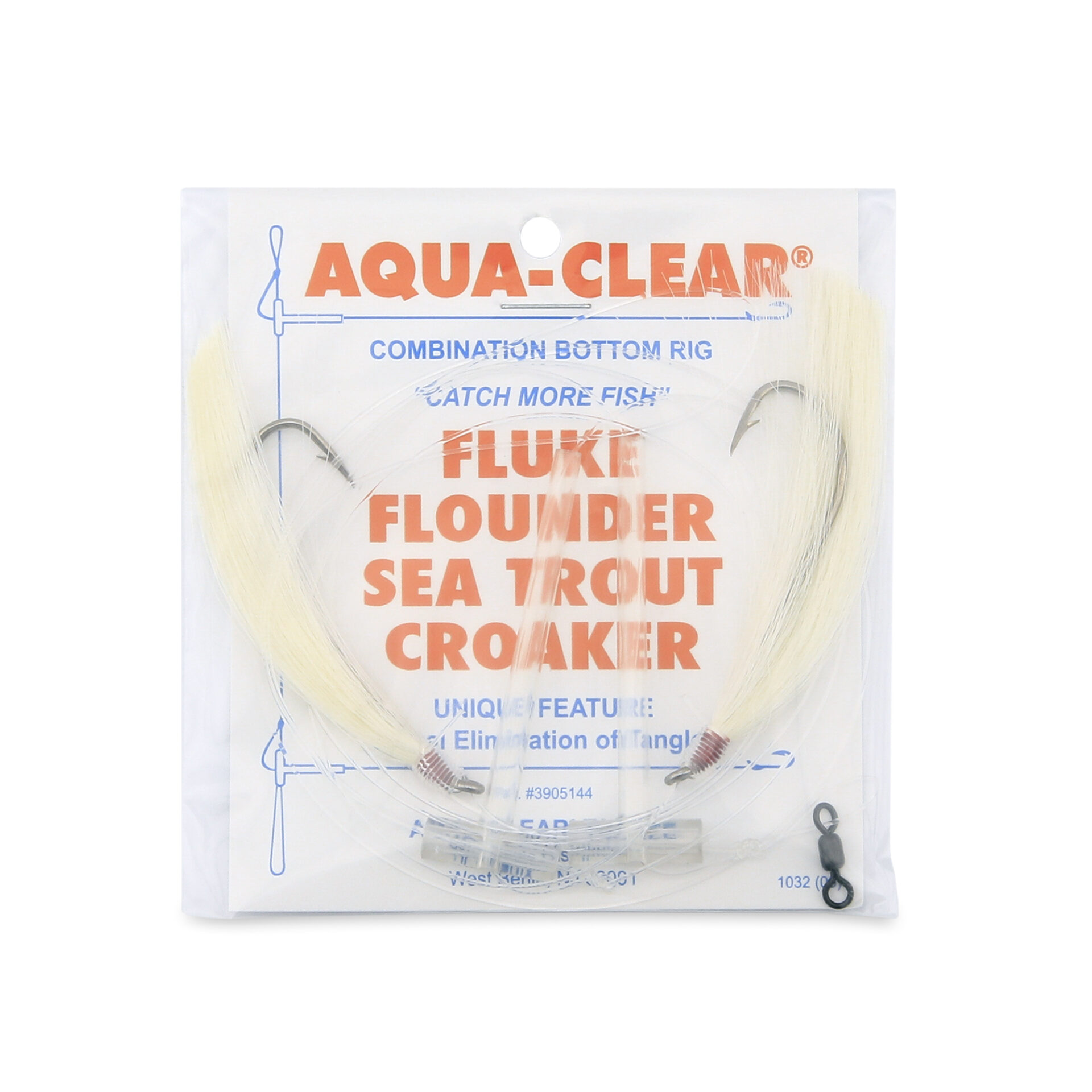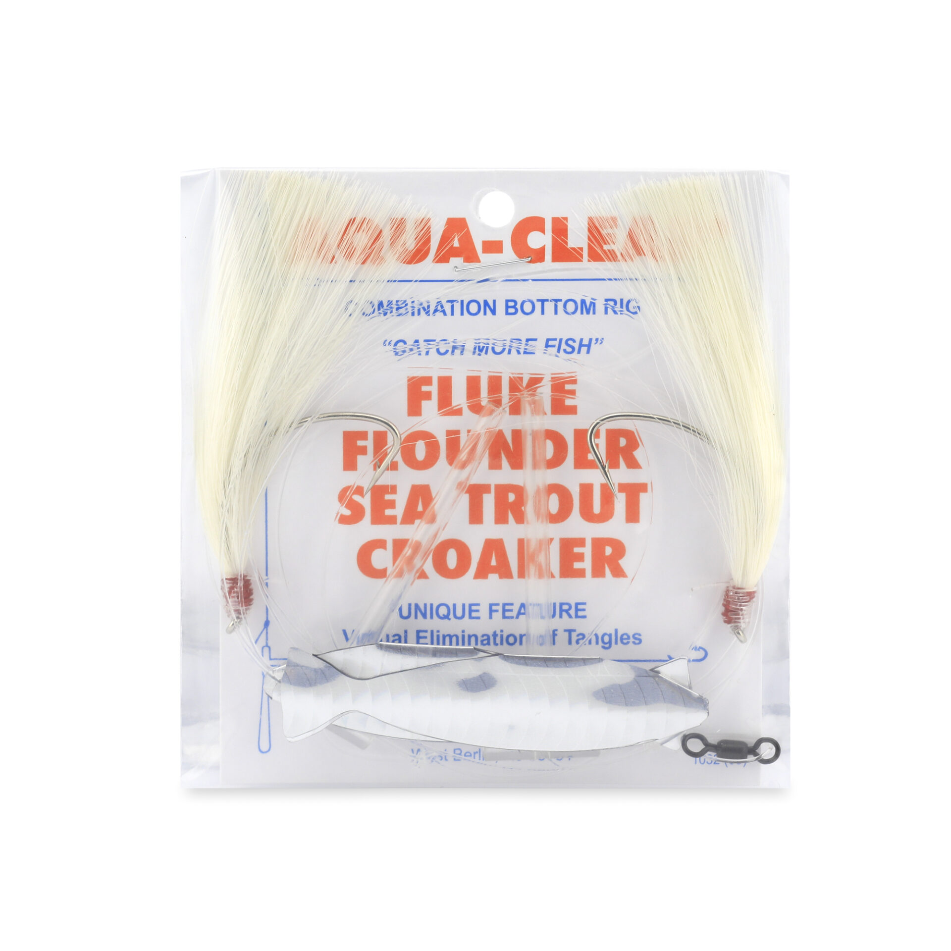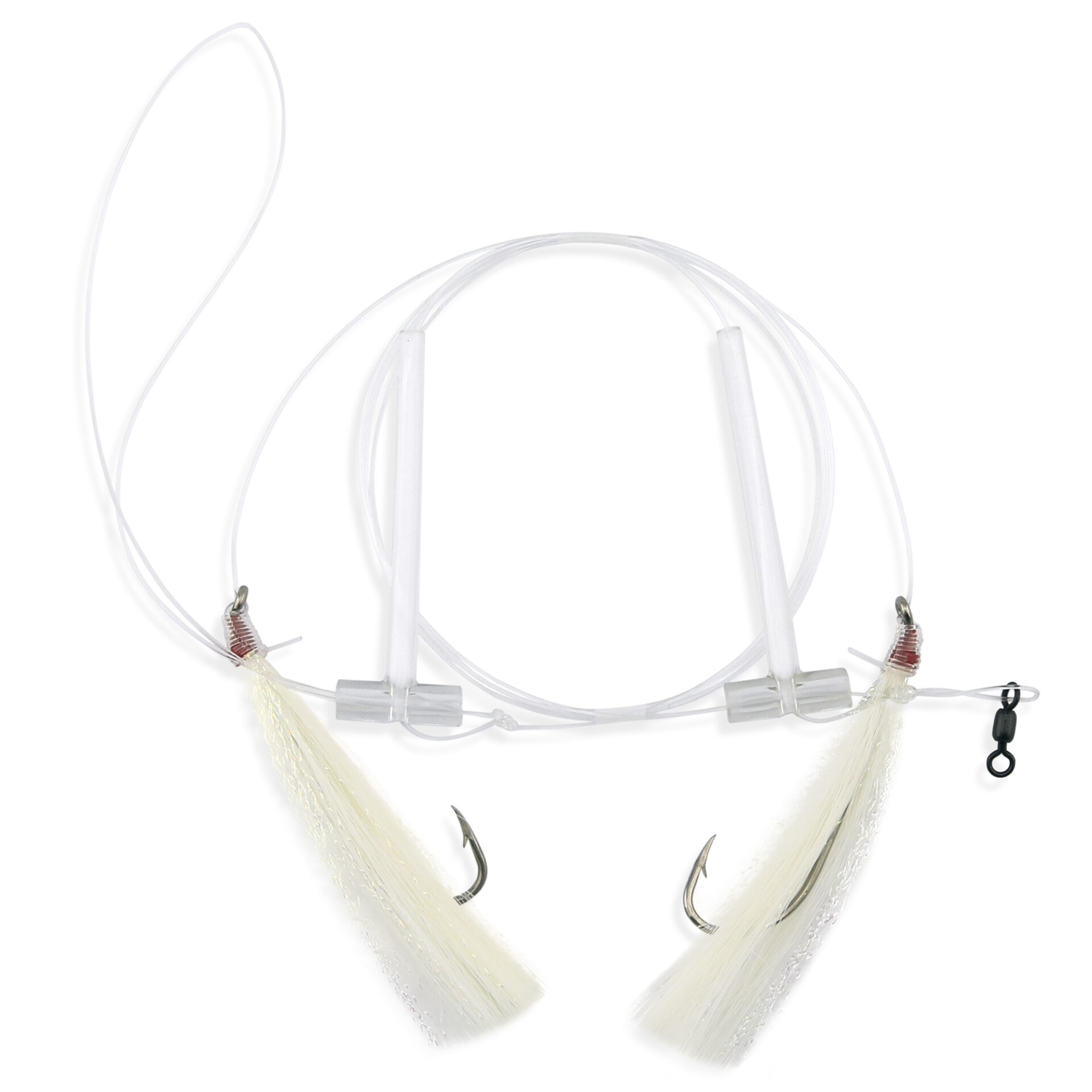 Aqua-Clear, Hi-Lo Solid Color Hair Teaser Rig, Flounder/Fluke/SeaTrout/Weakfish/Croaker, 3/0 Nickel Octopus Hook, AFW Swivel, 40 lb / 18.1 kg GS Mono, T-Standoff, White HairAvailability: In stock