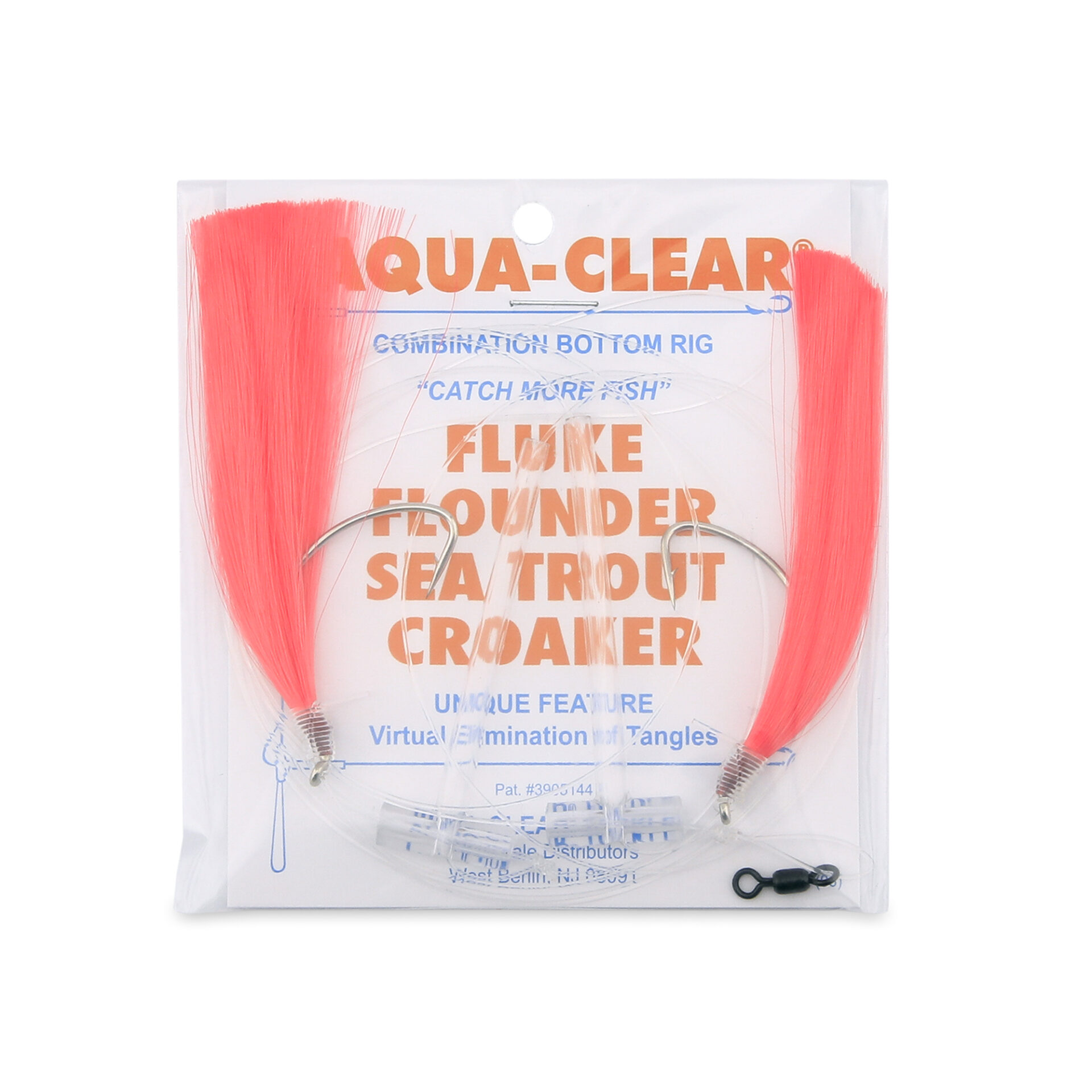 Aqua-Clear, Hi-Lo Solid Color Hair Teaser Rig, Flounder/Fluke/SeaTrout/Weakfish/Croaker, 3/0 Nickel Wide Gap Hook, AFW Swivel, 40 lb / 18.1 kg GS Mono, T-Standoff, Pink HairAqua-Clear, Hi-Lo Solid Color Hair Teaser Rig, Flounder/Fluke/SeaTrout/Weakfish/Croaker, 3/0 Nickel Wide Gap Hook, AFW Swivel, 40 lb / 18.1 kg GS Mono, T-Standoff, Pink Hair
