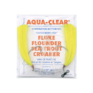 Aqua-Clear, Hi-Lo Solid Color Hair Teaser Rig, Flounder/Fluke/SeaTrout/Weakfish/Croaker, 3/0 Nickel Wide Gap Hook, AFW Swivel, 40 lb / 18.1 kg GS Mono, T-Standoff, Yellow HairAvailability: In stock