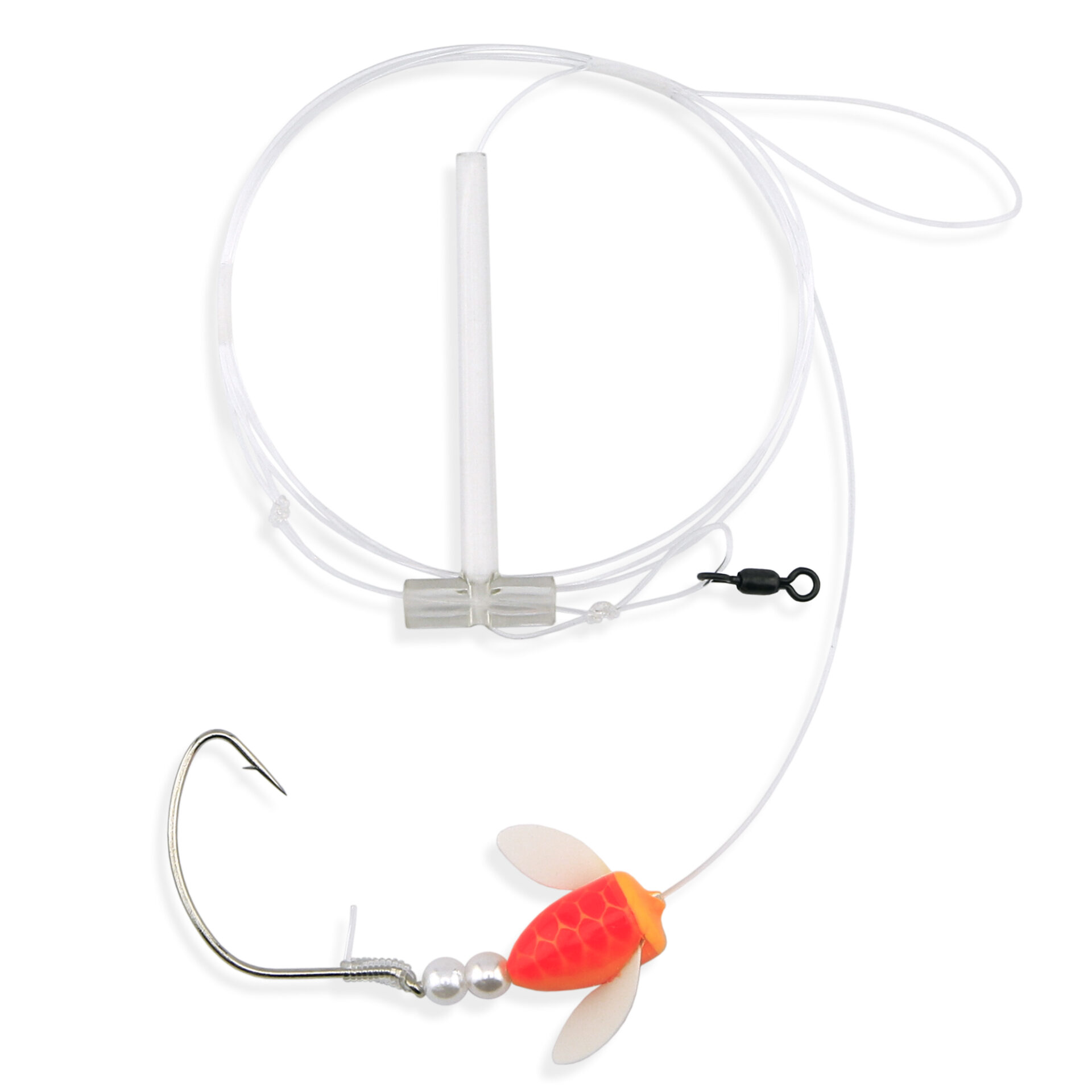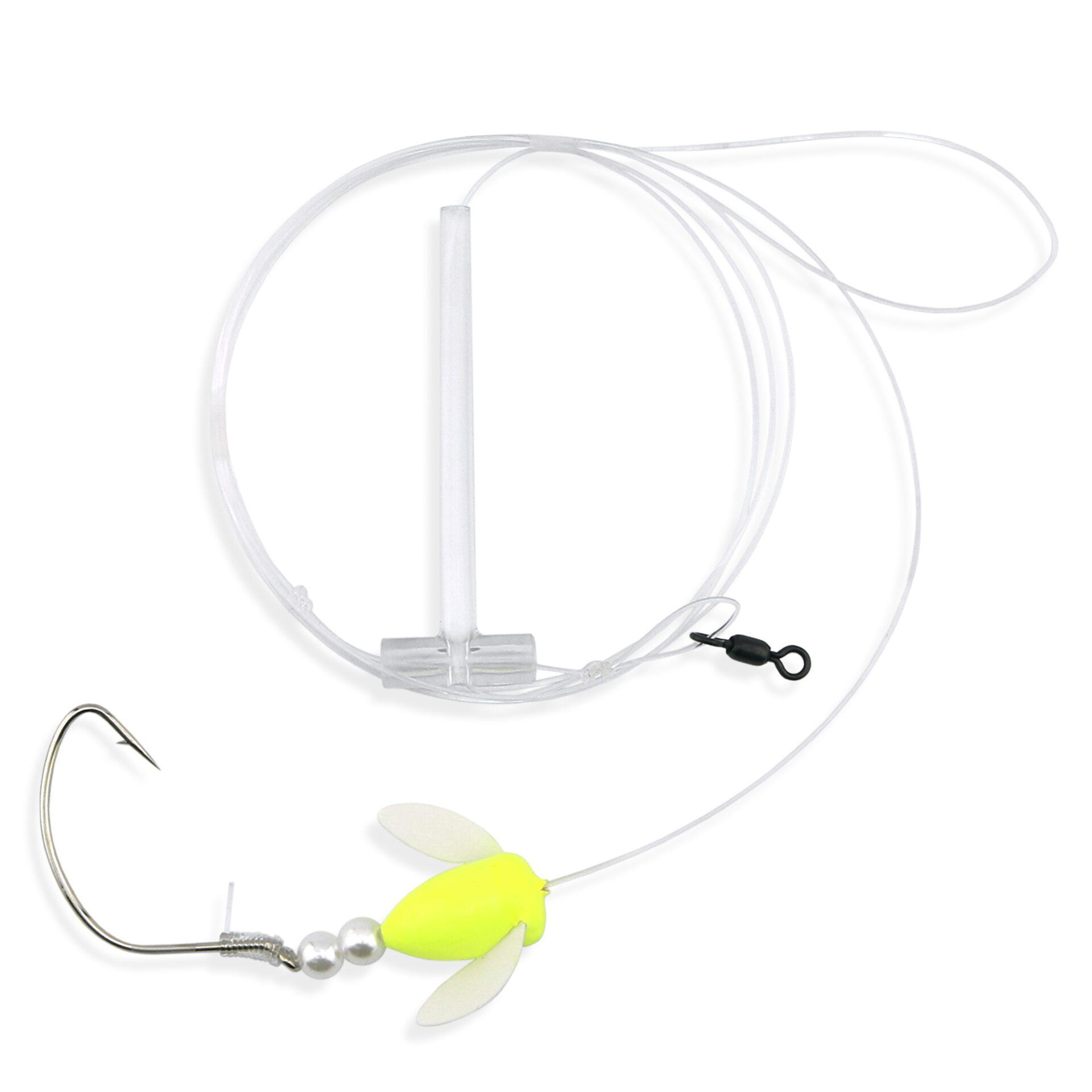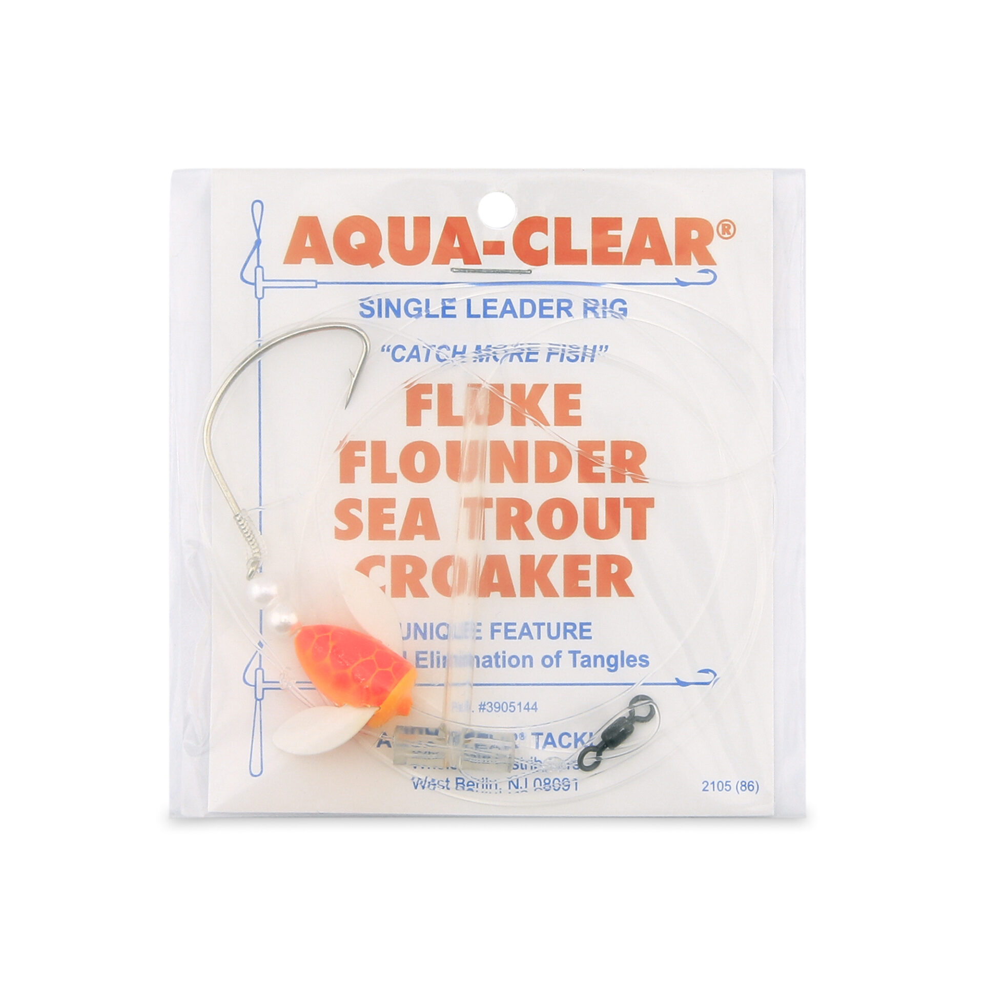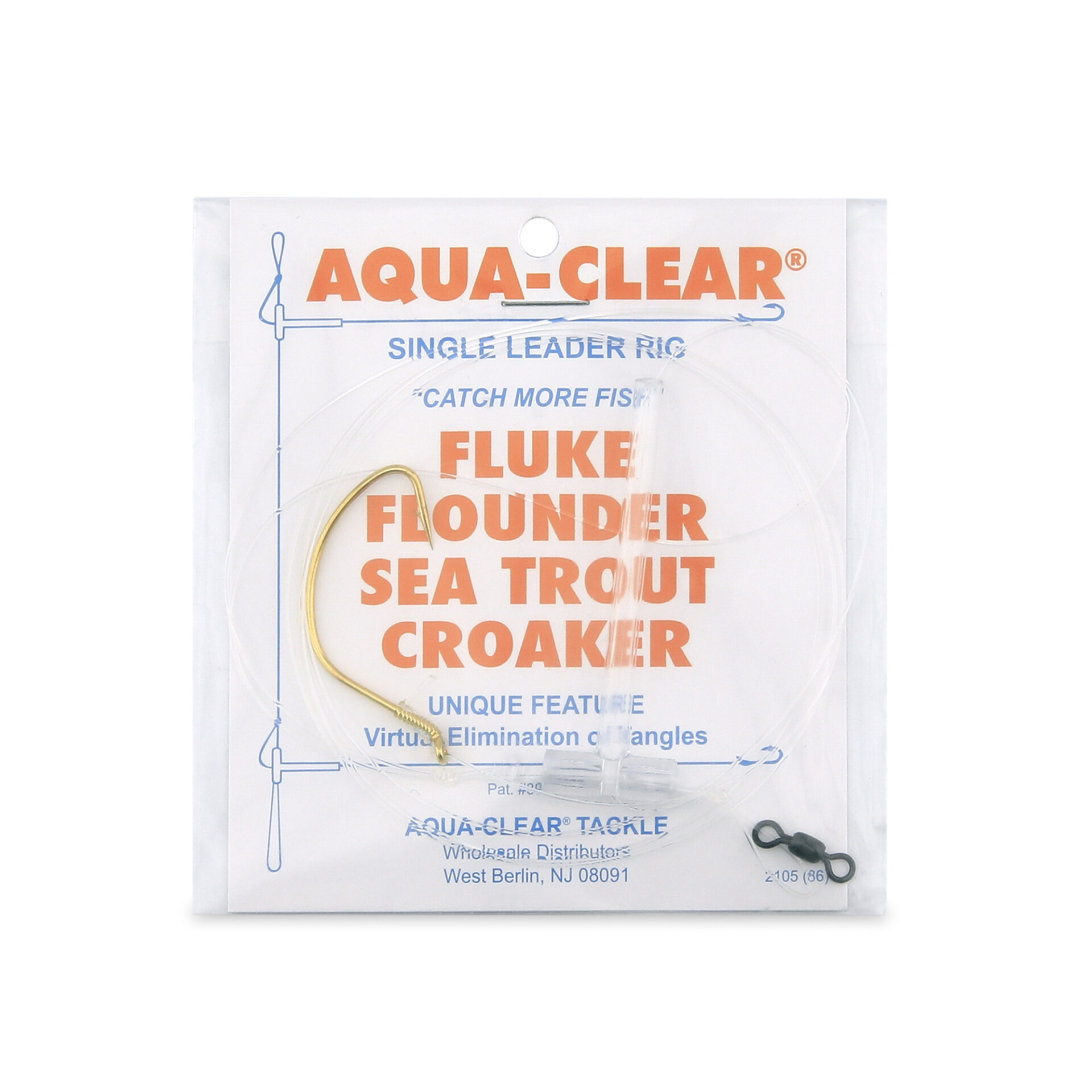 Aqua-Clear, Single Rig, Fluke/Flounder/SeaTrout/Weakfish/Croaker, 2/0 Gold Color Wide Gap Hook, AFW Swivel, 40 lb / 18.1 kg Grand Slam Mono, T-Standoff