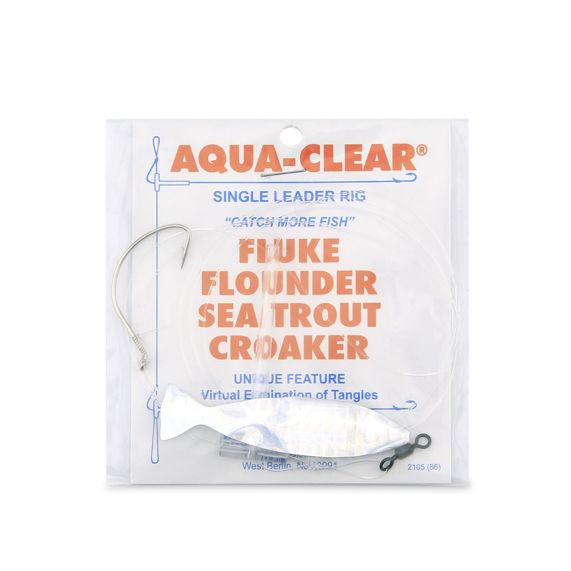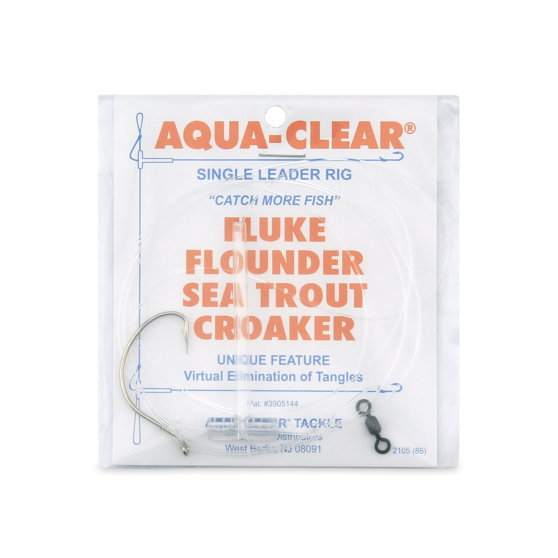 Aqua-Clear, Single Rig, Fluke/Flounder/SeaTrout/Weakfish/Croaker, 2/0 Nickel Wide Gap Hook, AFW Swivel, 40 lb / 18.1 kg Grand Slam Mono, T-Standoff