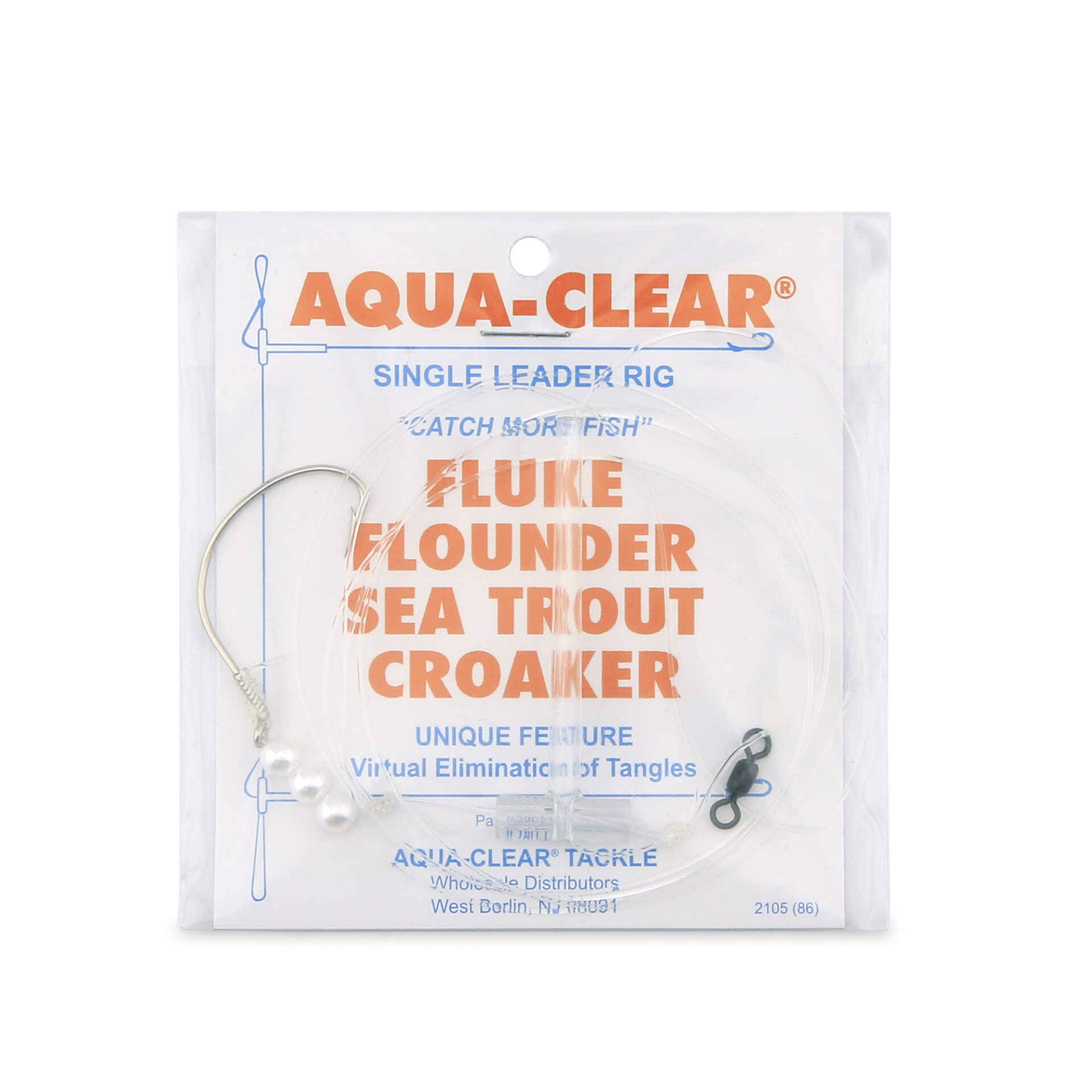 Aqua-Clear, Single Rig, Fluke/Flounder/SeaTrout/Weakfish/Croaker, 3/0 XL Hook, AFW Swivel, 40 lb / 18.1 kg Grand Slam Mono, T-Standoff, Pearls