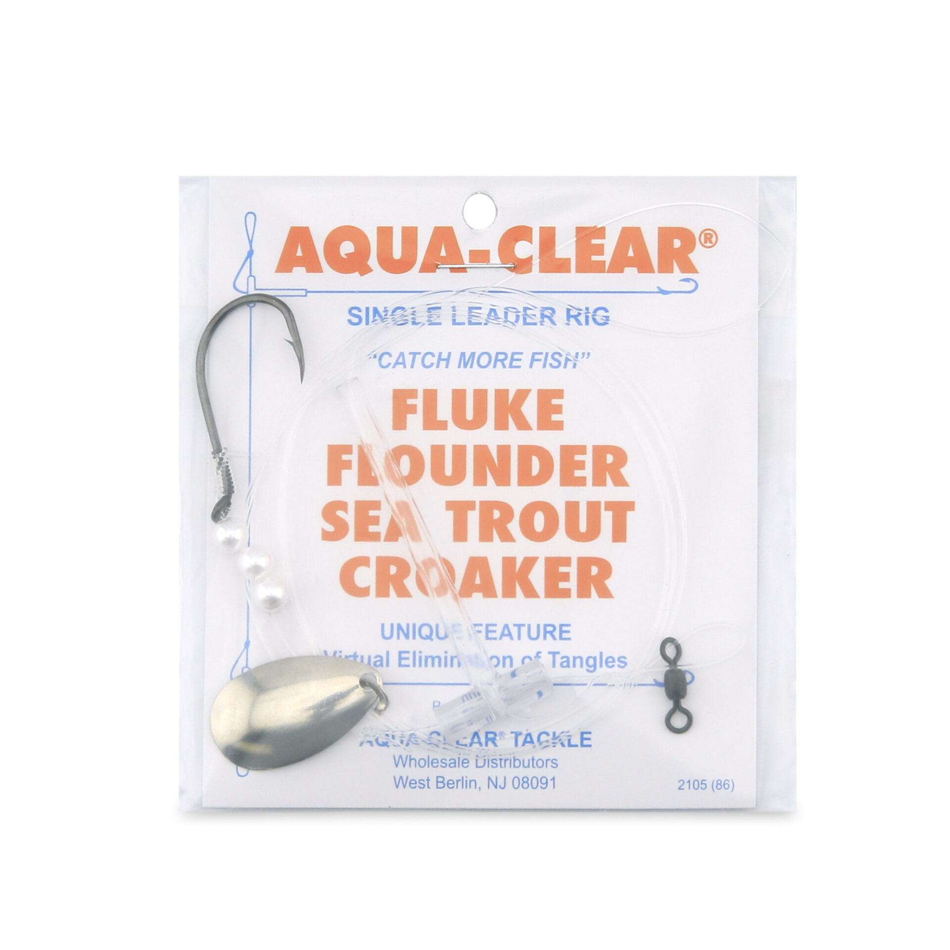 Aqua-Clear, Single Rig, Fluke/Flounder/SeaTrout/Weakfish/Croaker, 4/0 Black Nickel Octopus Hook, AFW Swivel, 40 lb / 18.1 kg Grand Slam Mono, T-Standoff, Pearls, SpinnerAqua-Clear, Single Rig, Fluke/Flounder/SeaTrout/Weakfish/Croaker, 4/0 Black Nickel Octopus Hook, AFW Swivel, 40 lb / 18.1 kg Grand Slam Mono, T-Standoff, Pearls, Spinner