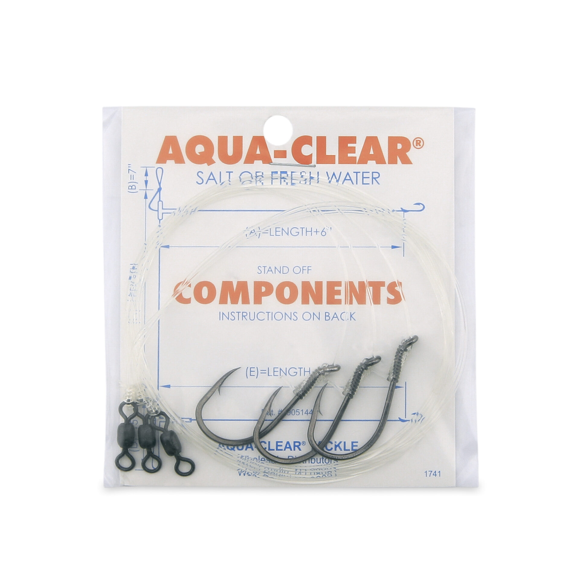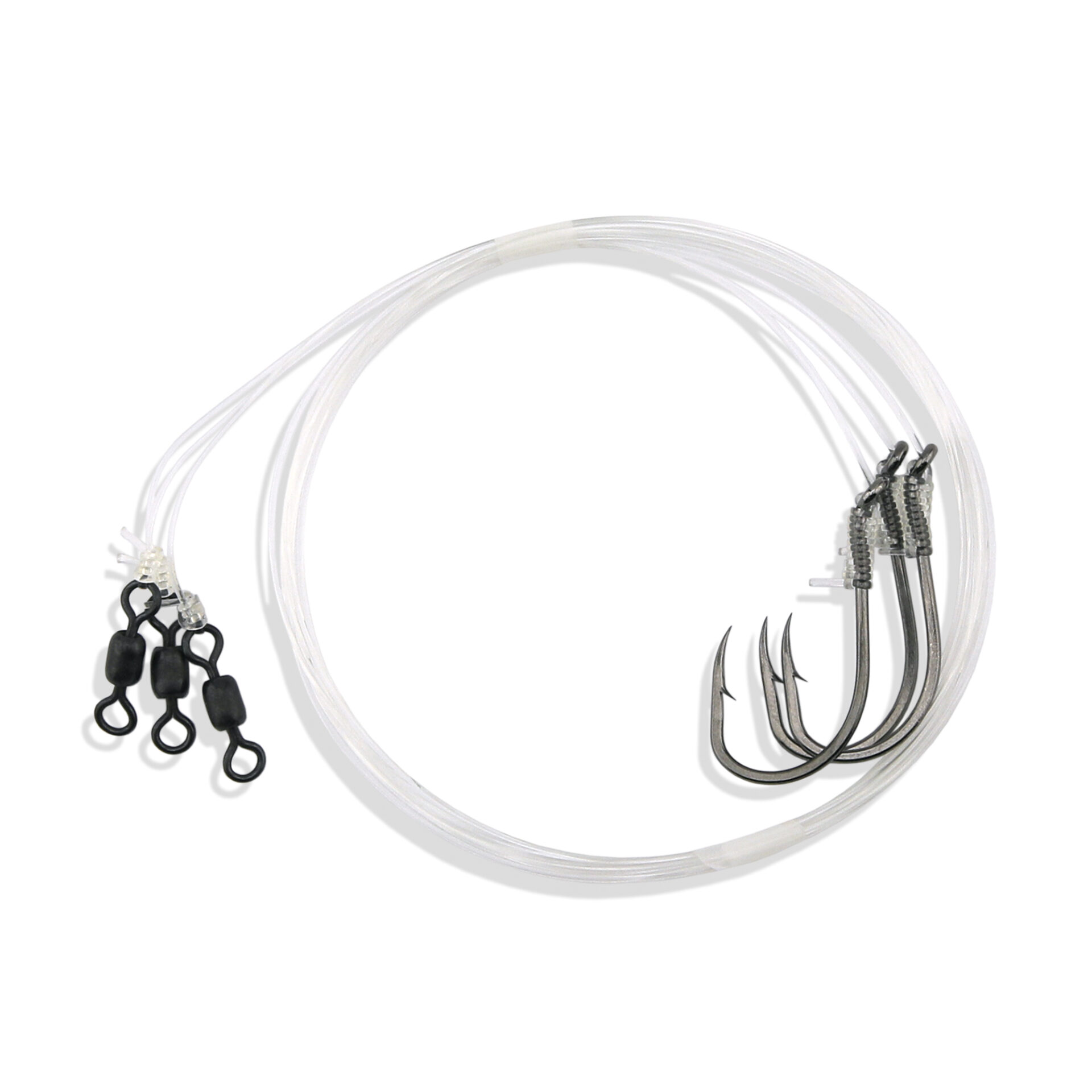 Aqua-Clear, Snelled 5/0 Black Nickel Beak Hooks, 36 in / 91.4 cm, 60 lb / 27.2 kg Grand Slam Mono, 3 pc