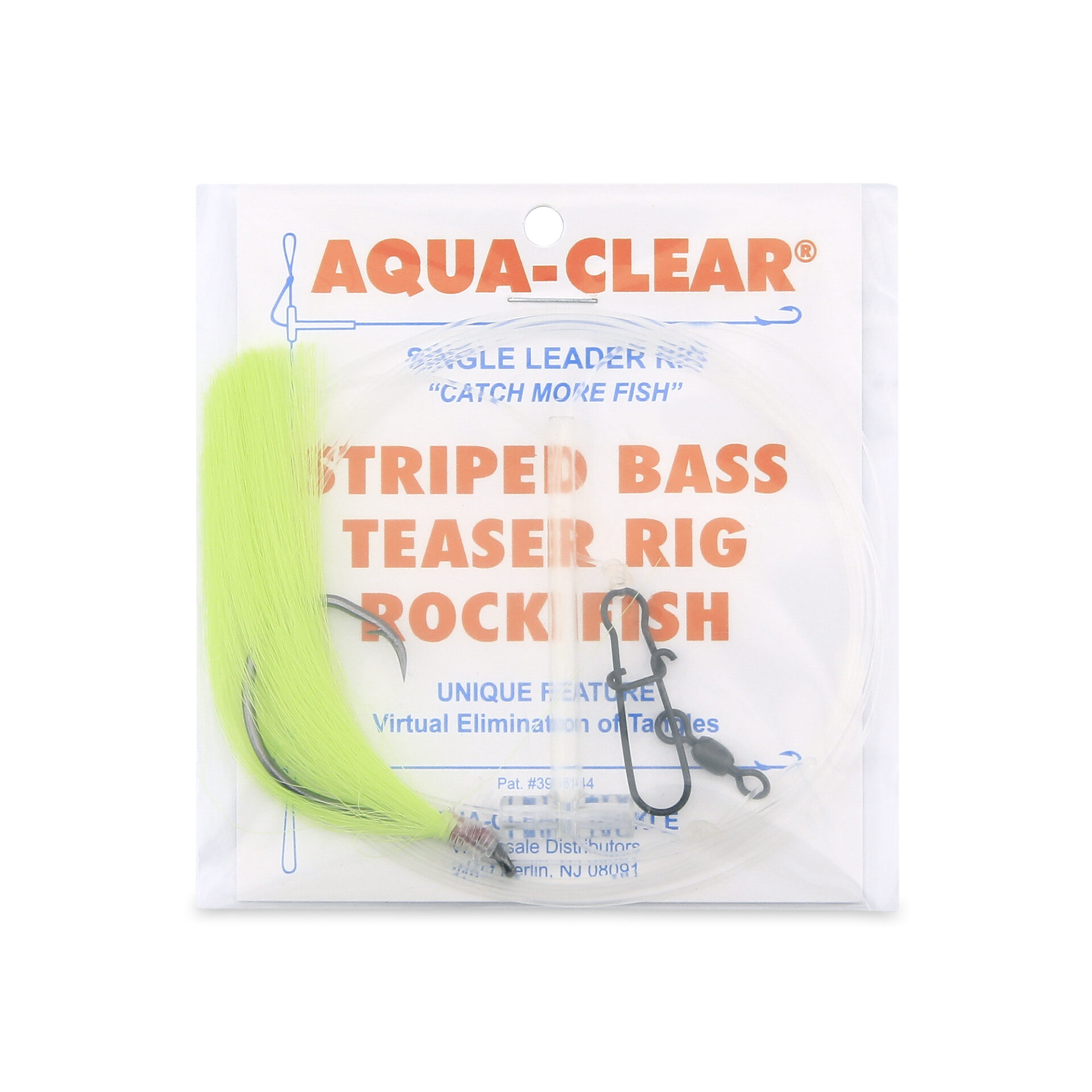 Aqua-Clear, Striped Bass Teaser Rig, Striped Bass / Rockfish / Drum, 7/0 Nickel Octopus Hook, AFW Swivel, 60 lb / 27.2 kg GS Mono 36 in / 92.4 cm, T-Standoff, Chartreuse Hair