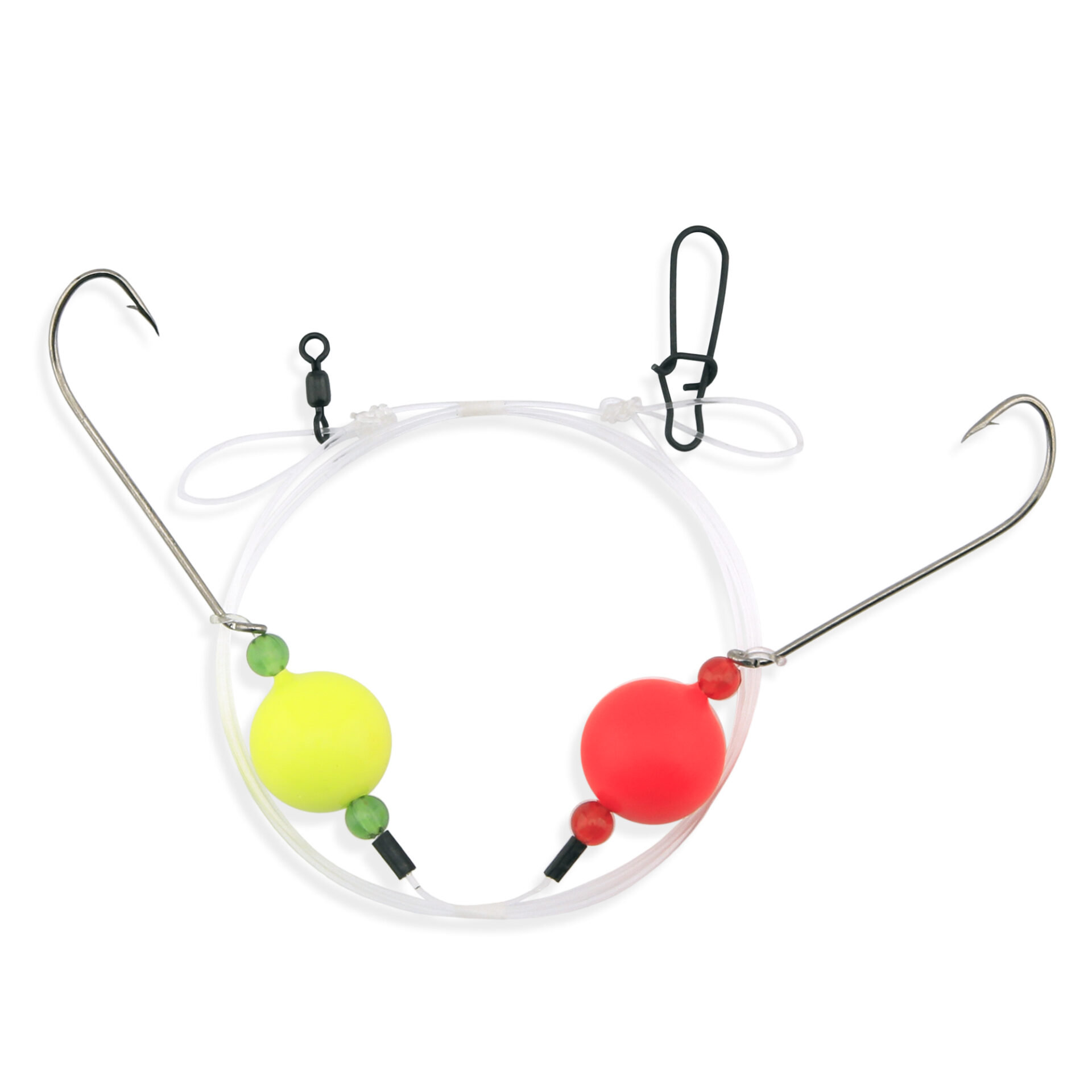 Aqua-Clear, Surf Ball Hi-Lo Rig, Flounder / Fluke / Striped Bass / Weakfish / Bluefish, Size 1 XL Hook, AFW Swivel, 60 lb / 27.2 kg Grand Slam Mono, Chrtrse & Red Float, Beads