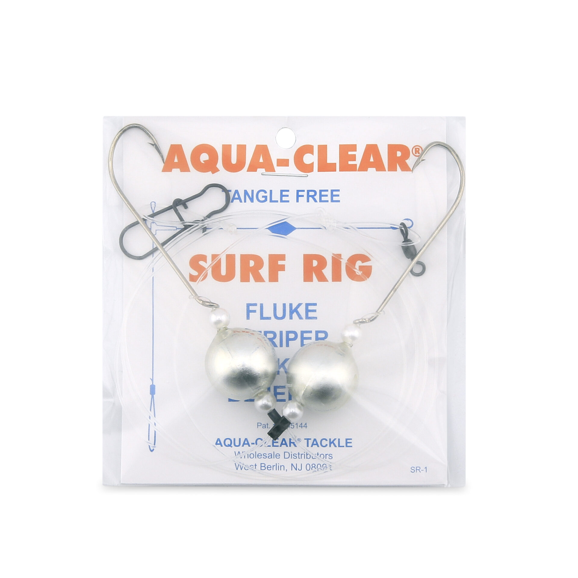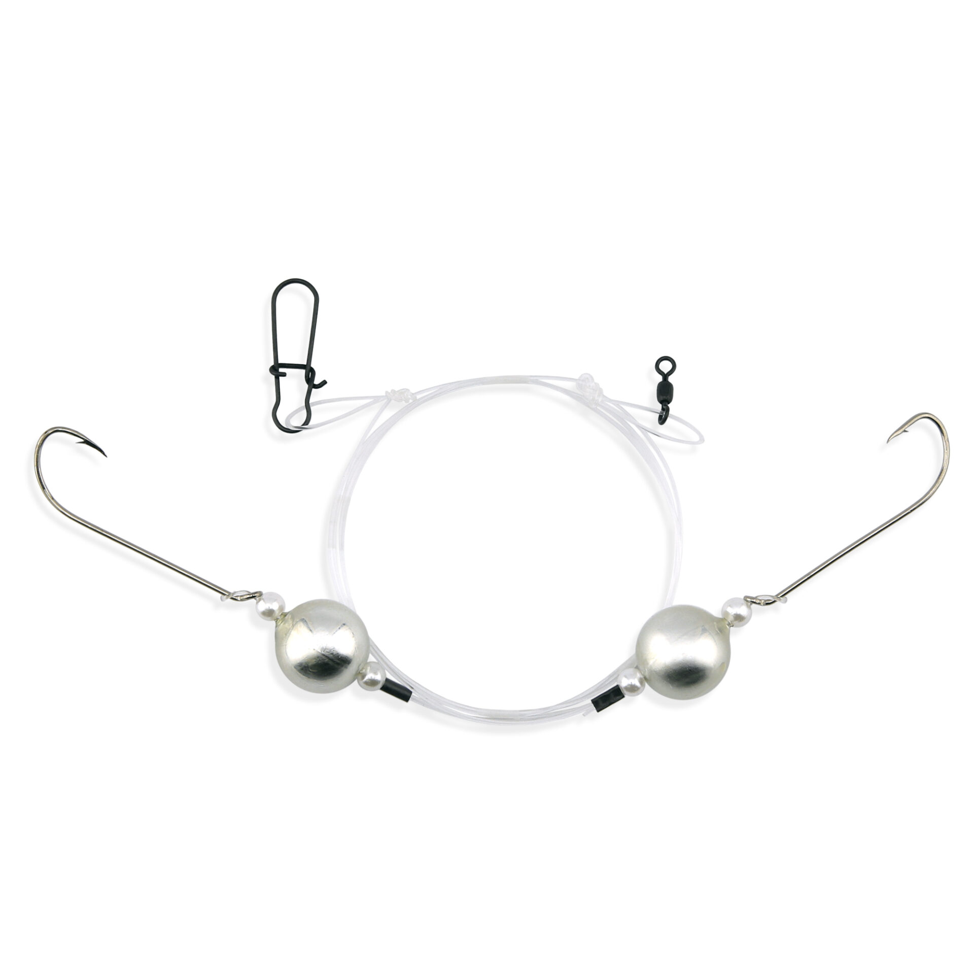 Aqua-Clear, Surf Ball Hi-Lo Rig, Flounder / Fluke / Striped Bass / Weakfish / Bluefish, Size 1 XL Hook, AFW Swivel, 60 lb / 27.2 kg Grand Slam Mono, Nickel Plated Float, Beads