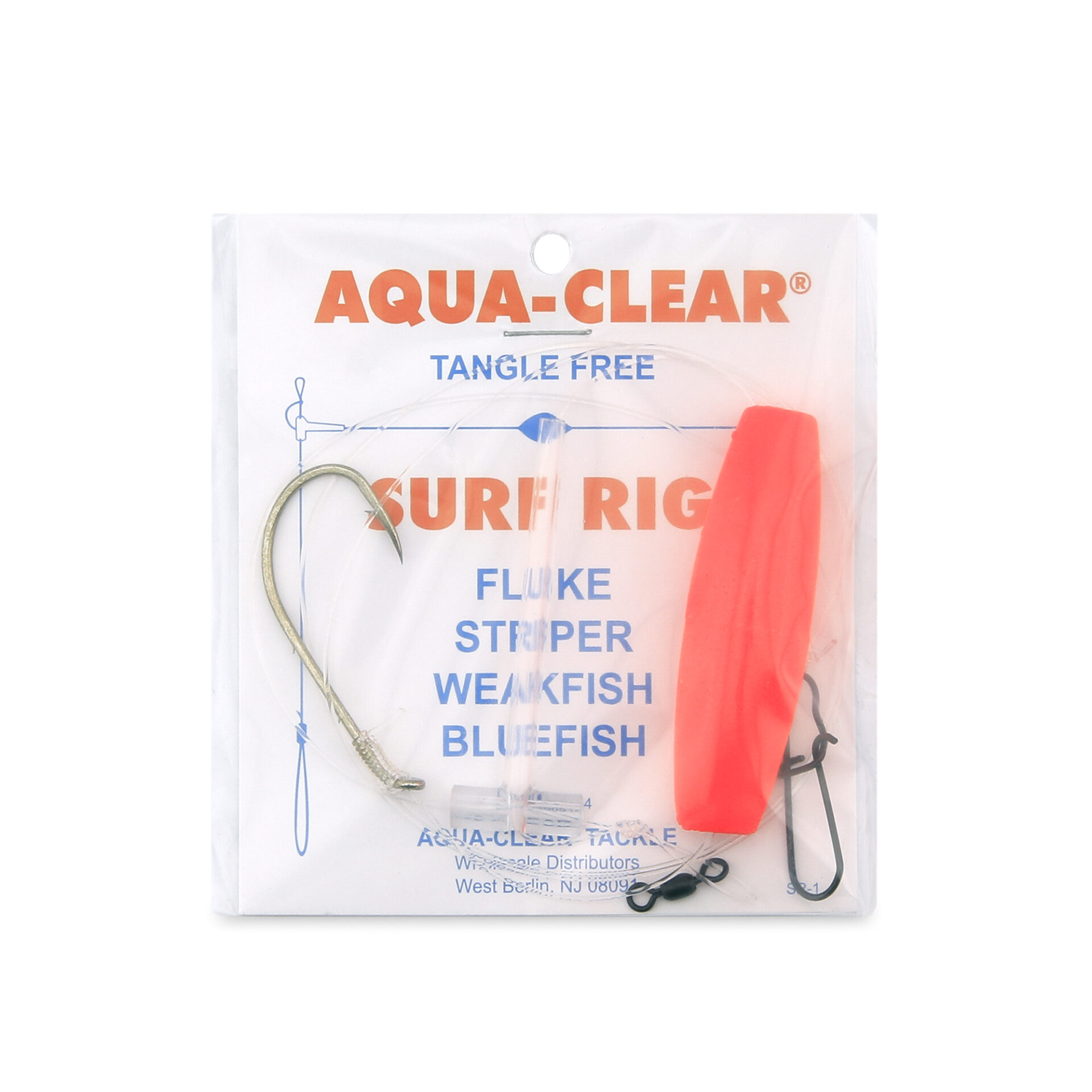 Aqua-Clear, Surf Rig, Floulder / Fluke / Striped Bass / Weakfish / Bluefish, T-Standoff, 6/0 Bronze Bait Holder Hook, AFW Swivel, 60 lb / 27.2 kg Grand Slam Mono, Cigar Float