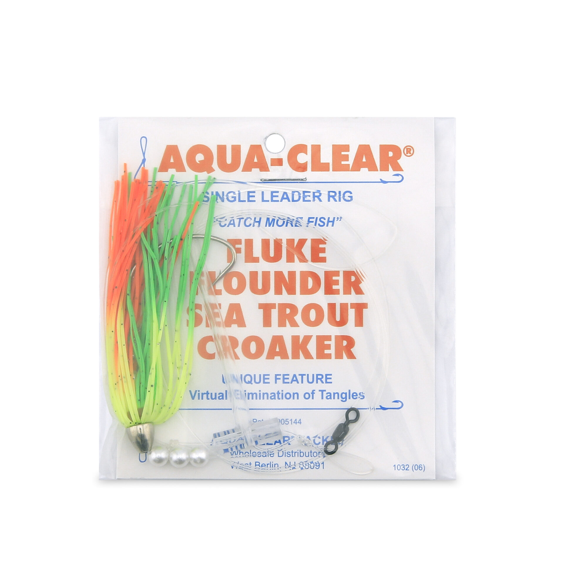 Aqua-Clear, Teaser Flasher Rig, Single Leadr, Flndr/Fluke/SeaTrout/Croaker, 4/0 Nckl WideGapHook, AFW Swvl, 40 lb/18.1 kg GS Mono, T-Standoff, Orng/Green Kingbuster, PearlsAvailability: In stock