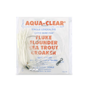 Aqua-Clear, Teaser Flasher Rig, Single Leadr, Flndr/Fluke/SeaTrout/Croaker, 4/0 Nckl WideGapHook, AFW Swvl, 40 lb/18.1 kg GS Mono, T-Standoff, White Kingbuster, PearlsAvailability: In stock