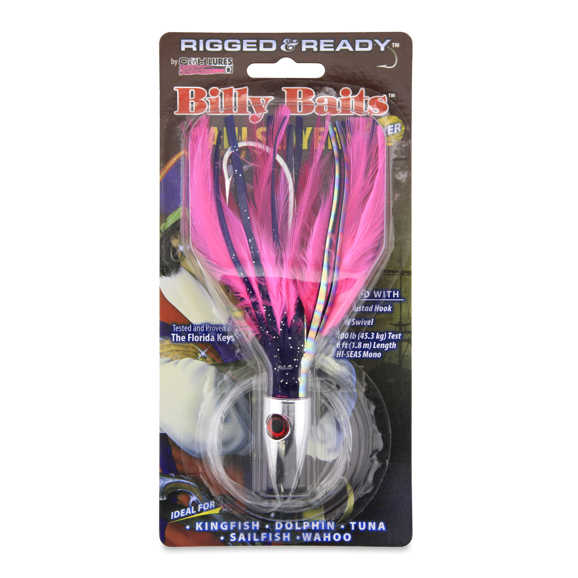 Billy Baits, Ahi Slayer Rigged & Ready, Blue/Pink Feather Skirt, 7/0 Mustad Hook, AFW Swivel, 100 lb / 45.3 kg Grand Slam Mono Line, 6 ft / 1.8 m
