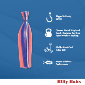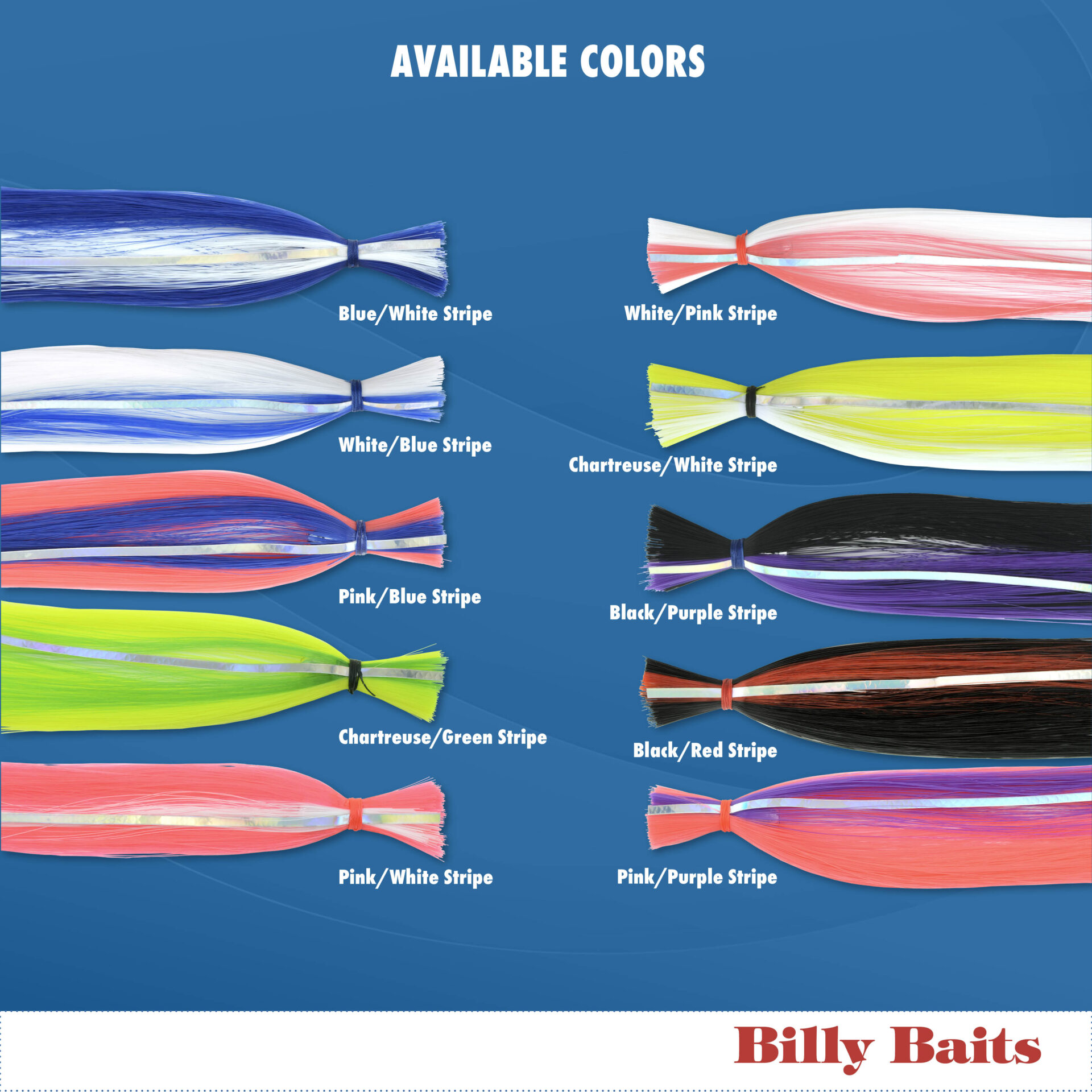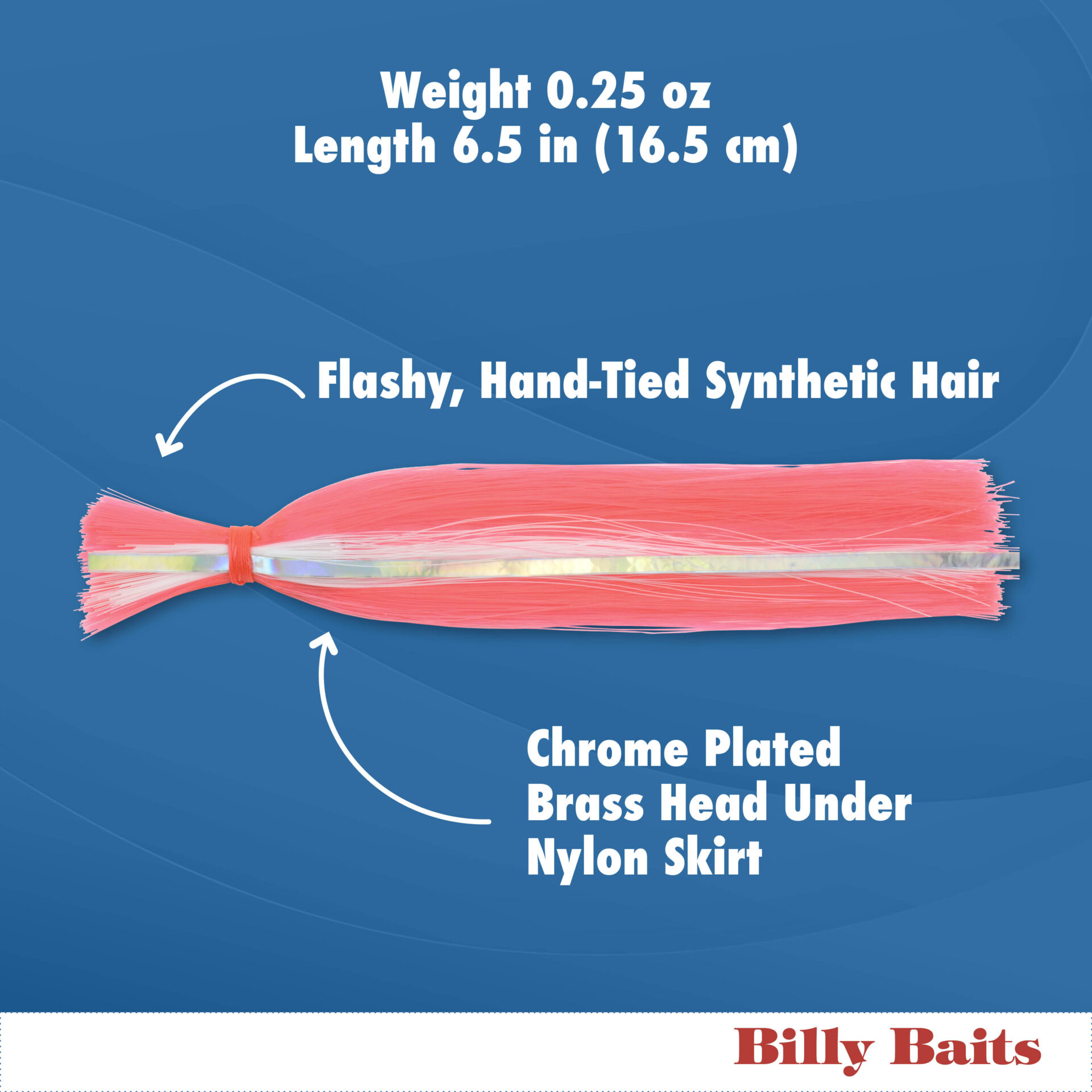 Billy Baits, Billy Witch Lure, Pink/Purple Stripe Skirt, Weighted Head, 6.5 in / 16.5 cm