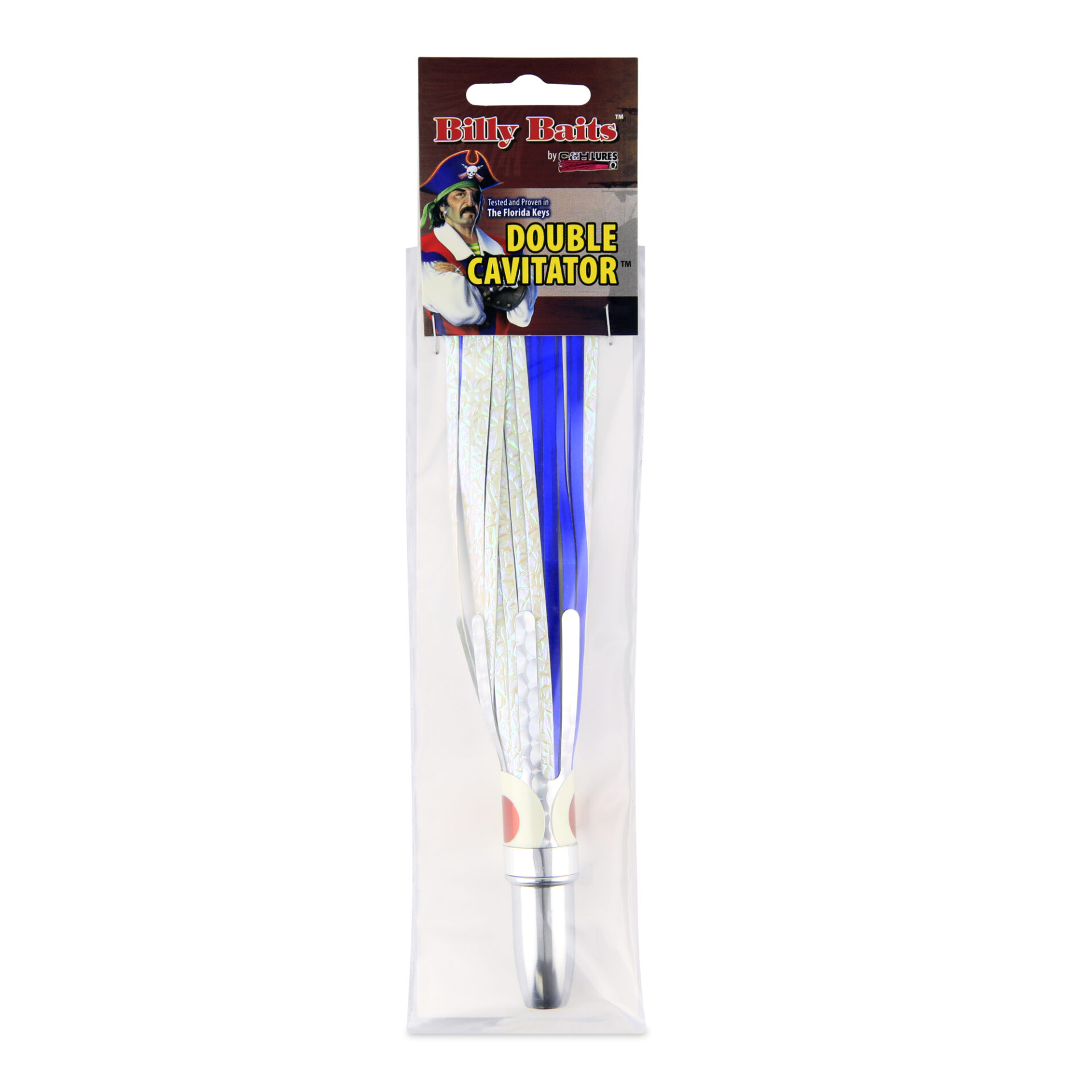 Billy Baits, Double Cavitator Lure, Blue/White Skirt, 2oz / 56g Head, 7 in / 17.7 cm