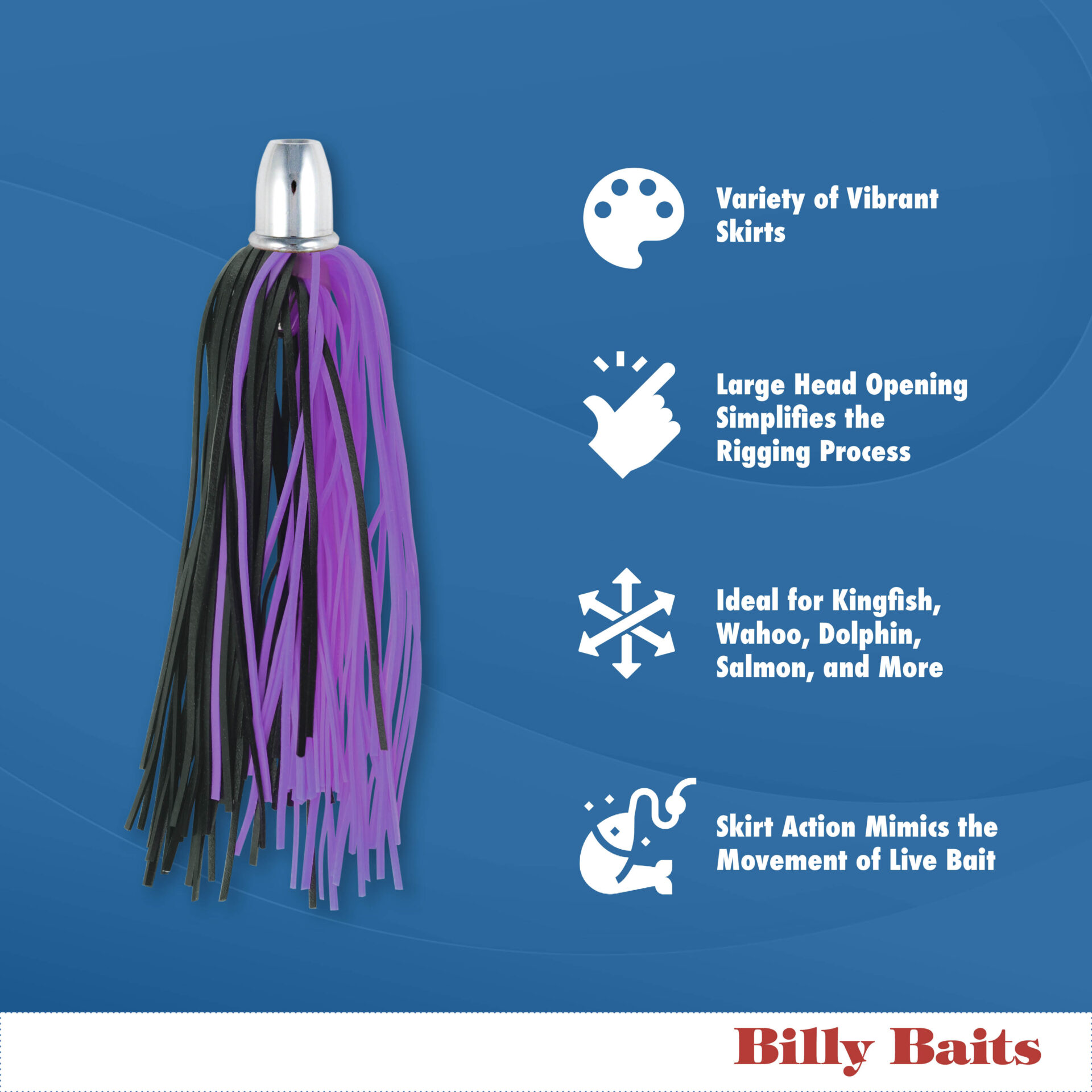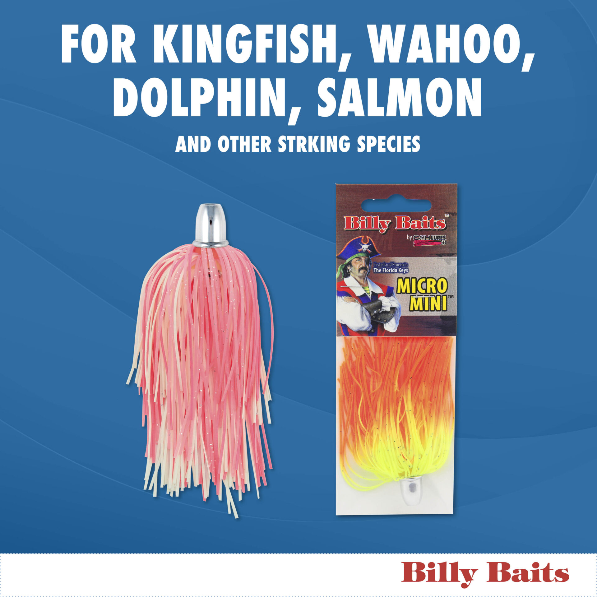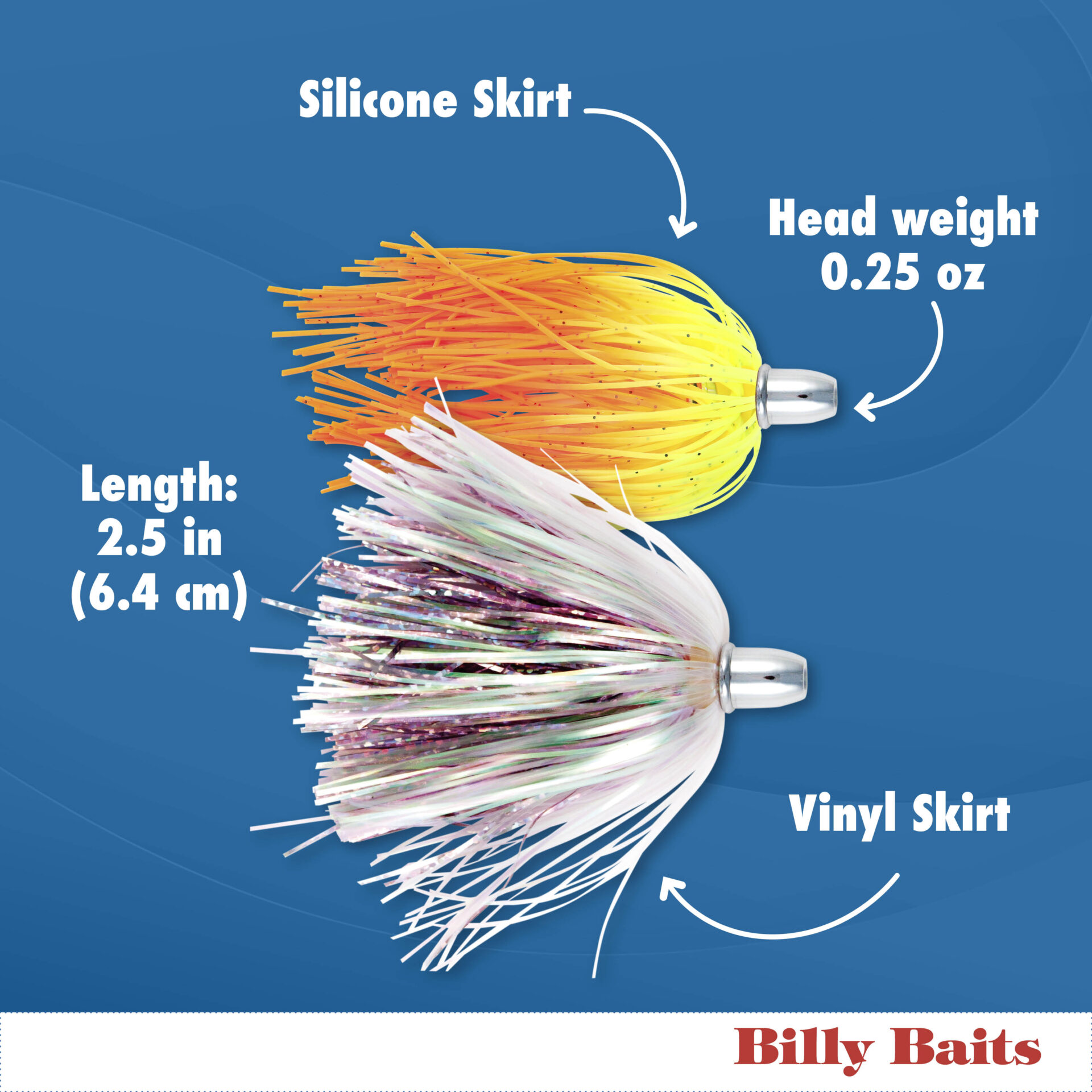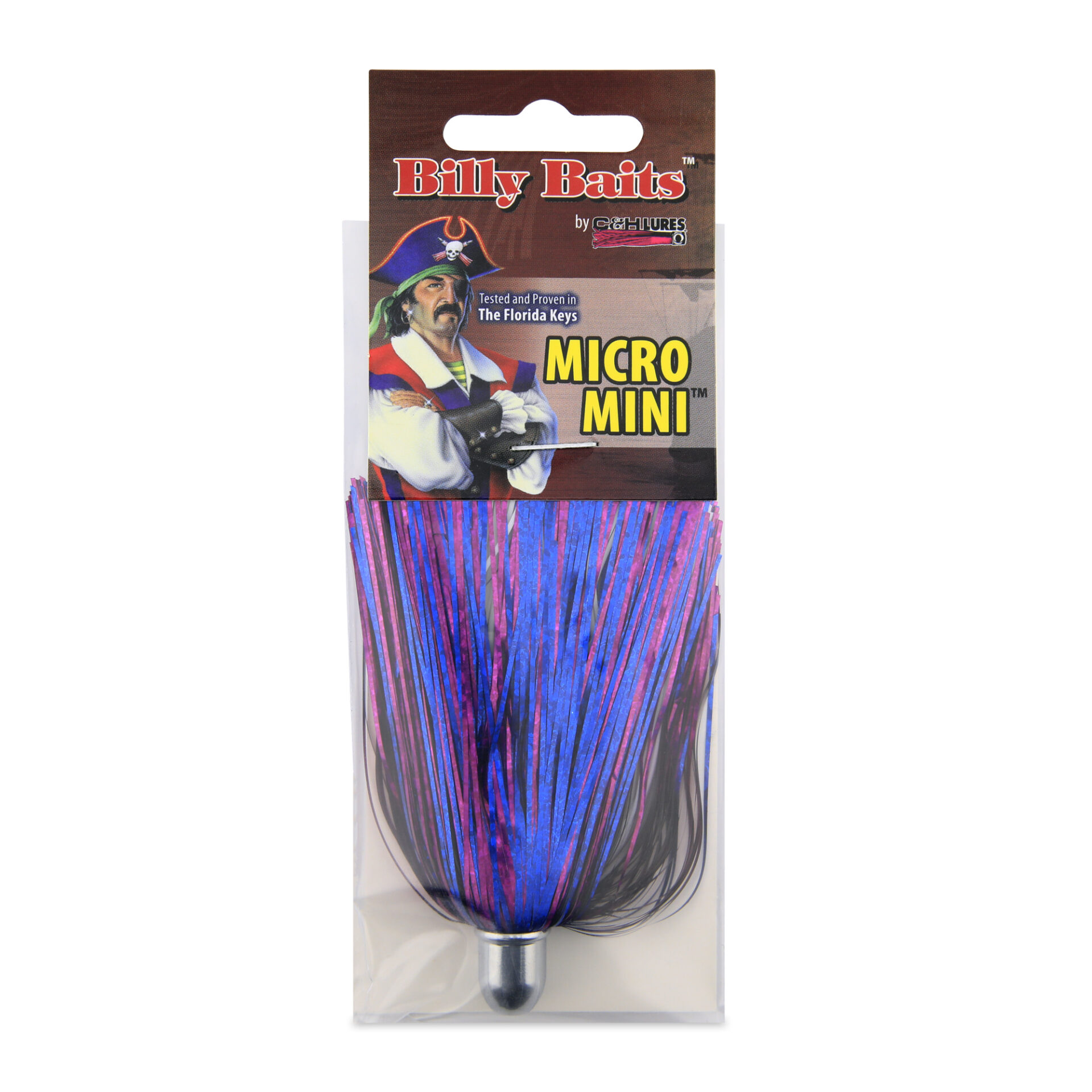Billy Baits, Micro Mini Lure, Blue/Fuchsia/White Skirt, Weighted Head, 2.5 in / 6.4 cm