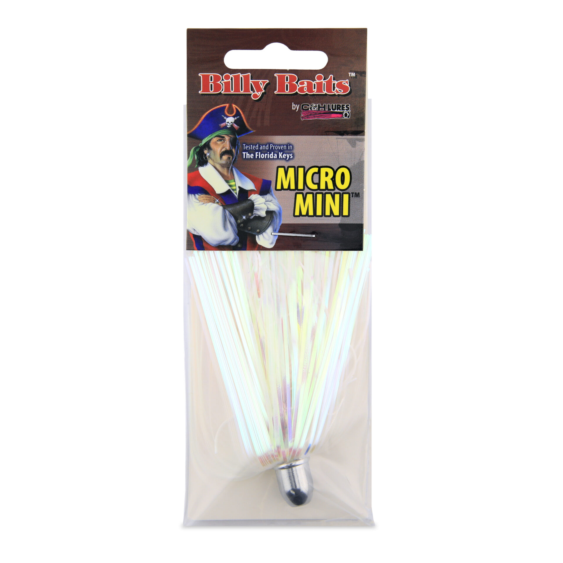 Billy Baits, Micro Mini Lure, Pearl/White Skirt, Weighted Head, 2.5 in / 6.4 cm