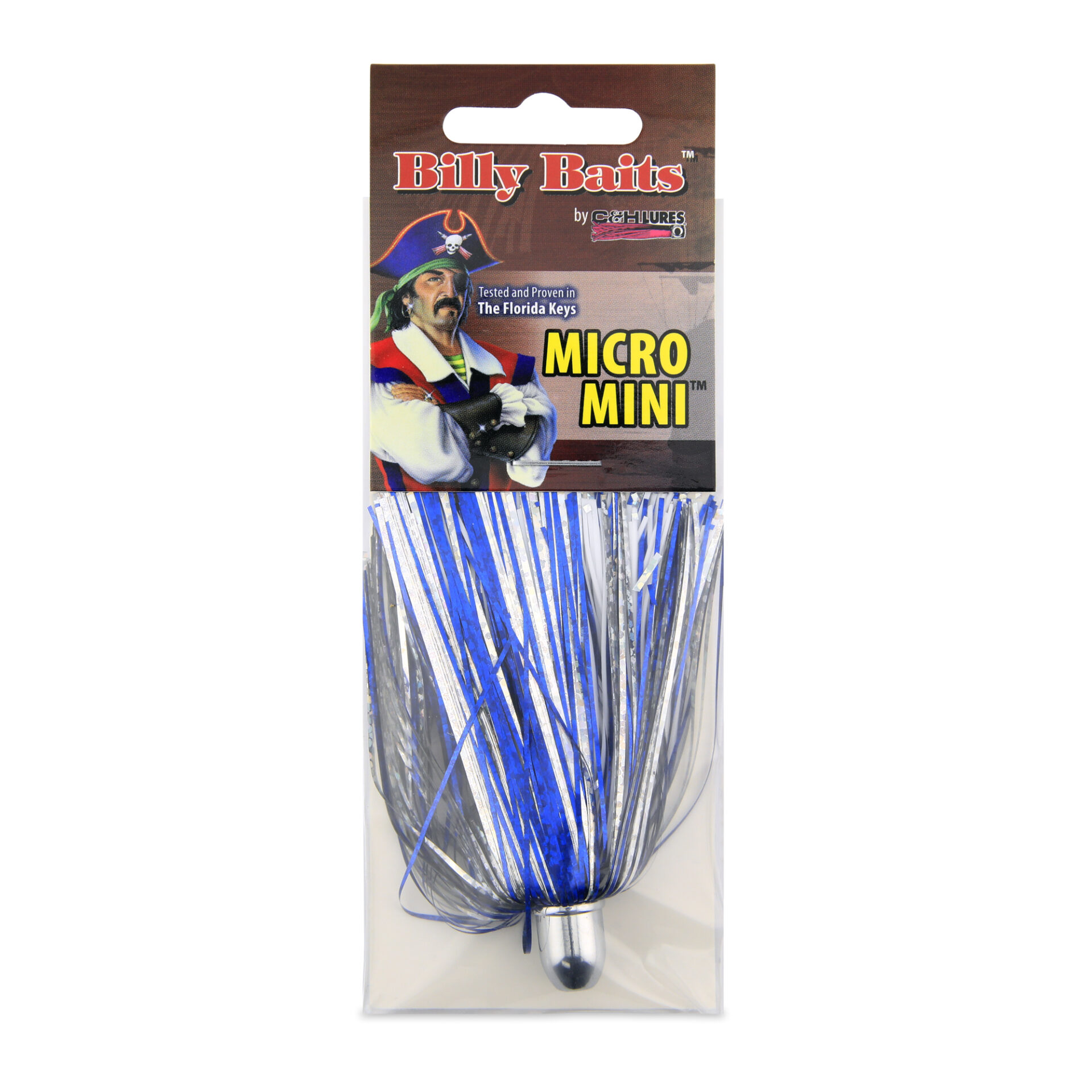 Billy Baits, Micro Mini Lure, White/Blue Skirt, Weighted Head, 2.5 in / 6.4 cm